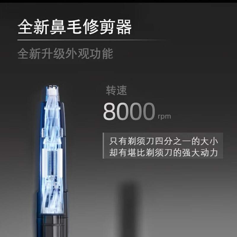 包装清单:机器、旅行盒、充电线、鼻毛修剪器
