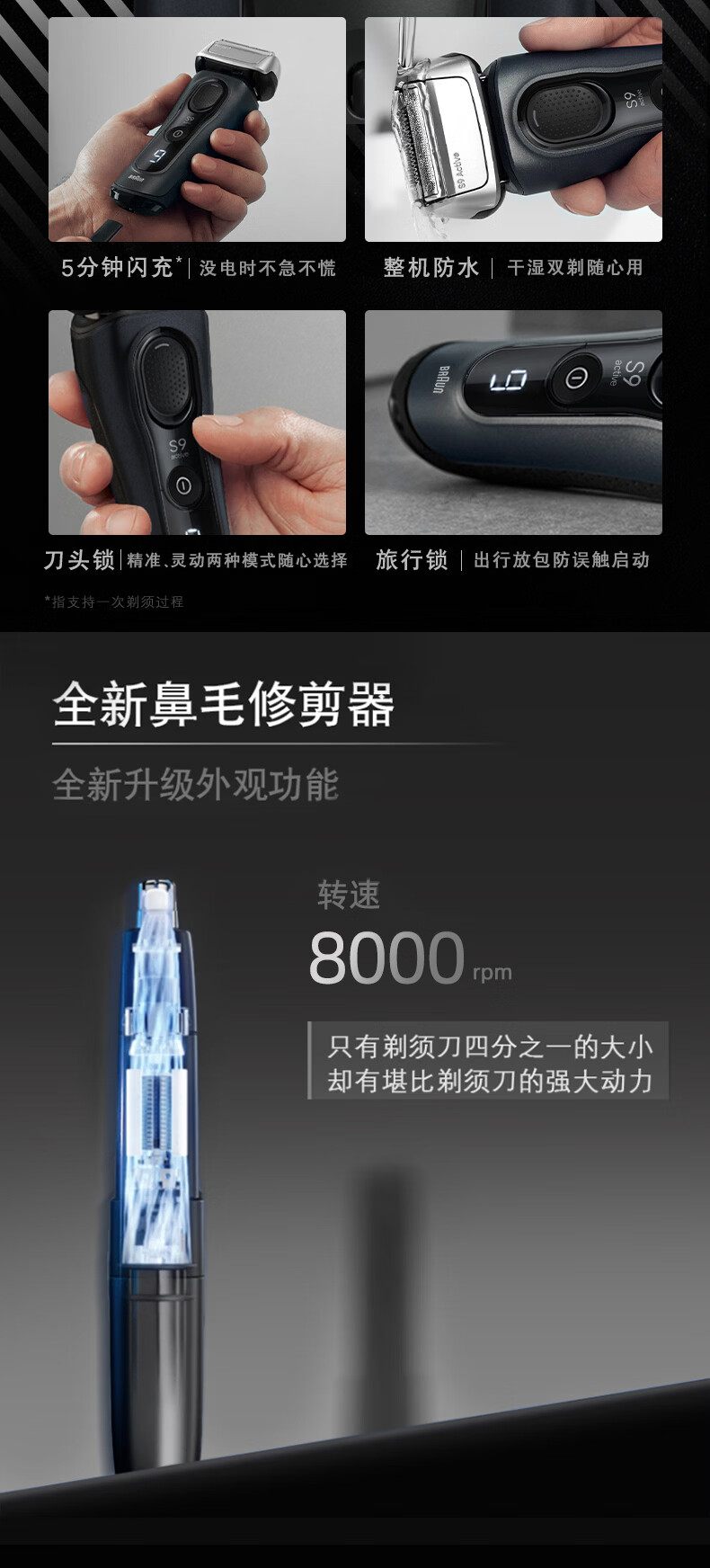博朗 电动剃须刀配耳鼻毛修剪器9018VS