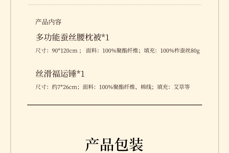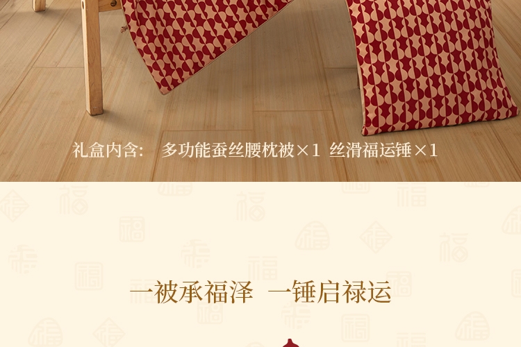 100%天然蚕丝填充柔软舒适,轻盈保暖;被子自带收纳口,一被多用小憩无忧;【丝滑福运养生锤】严选三年陈艾,淡淡艾草香;葫芦造型,锤头饱满,刺绣福禄,自带福运
