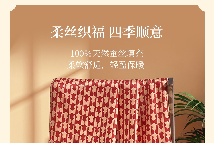 参数:填充100%蚕丝,面料100%聚酯纤维