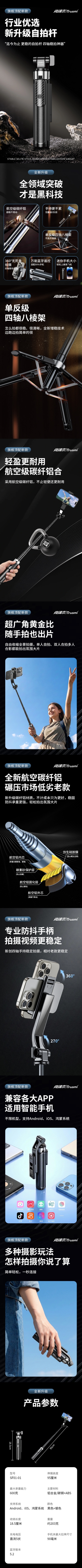 稳固防抖;蓝牙遥控;360°自由旋转
