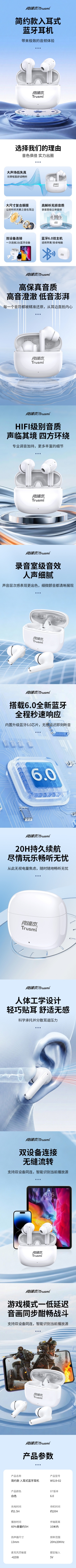 配置清单:简约款 入耳式蓝牙耳机 白色*1