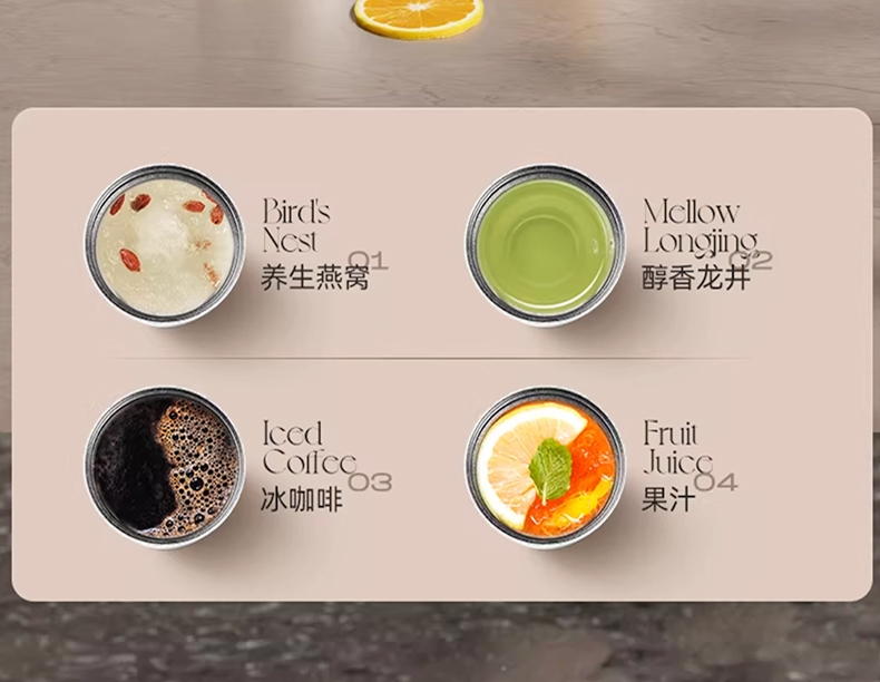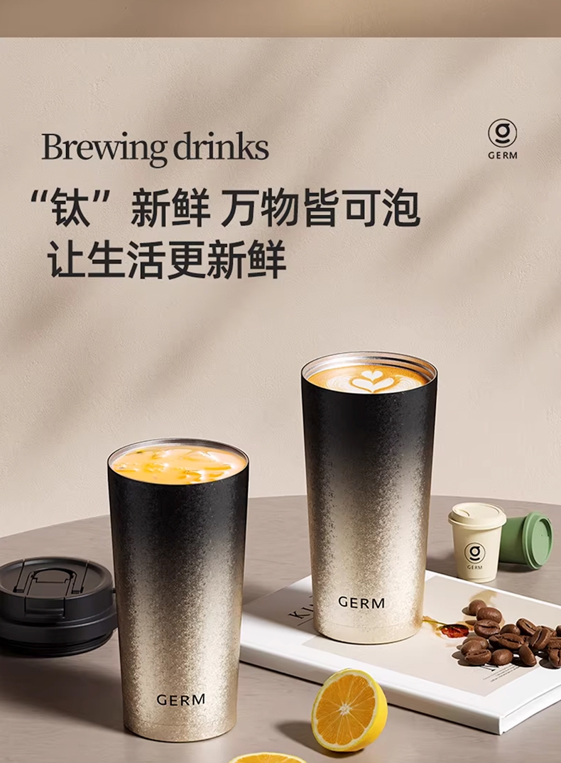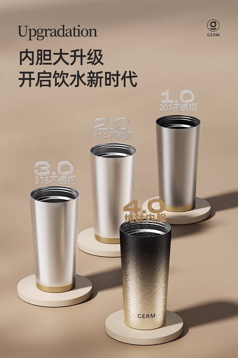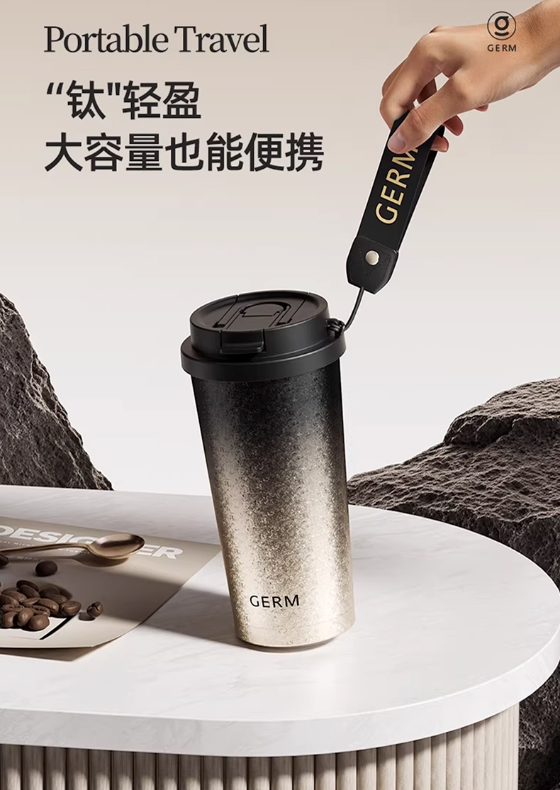 广口设计 易清洗;钛杯健康材质;保温保冷 便携拎手