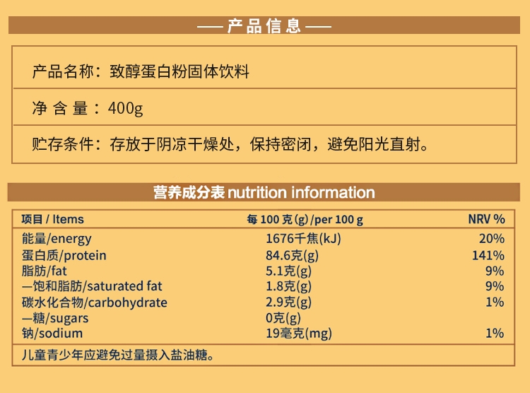 蛋白含量高营养丰富;健身增肌人群首选;温水冲泡即饮方便