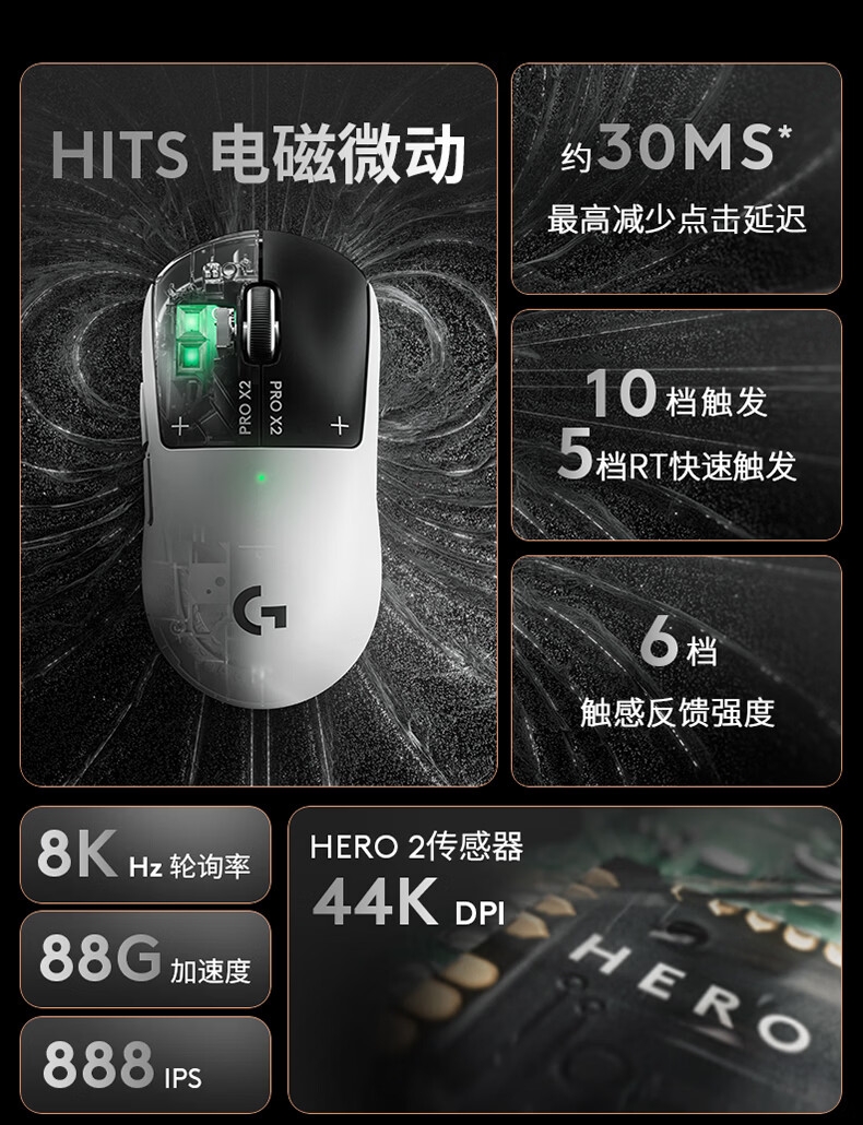 HITS电磁微动系统取代传统机械微动;可调触发和RT快速触发 定制专属操作;可调触感反馈 告别手感盲盒