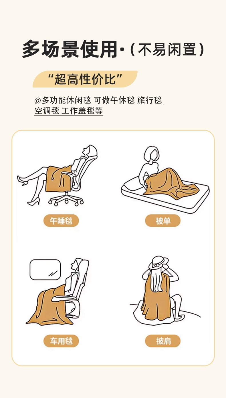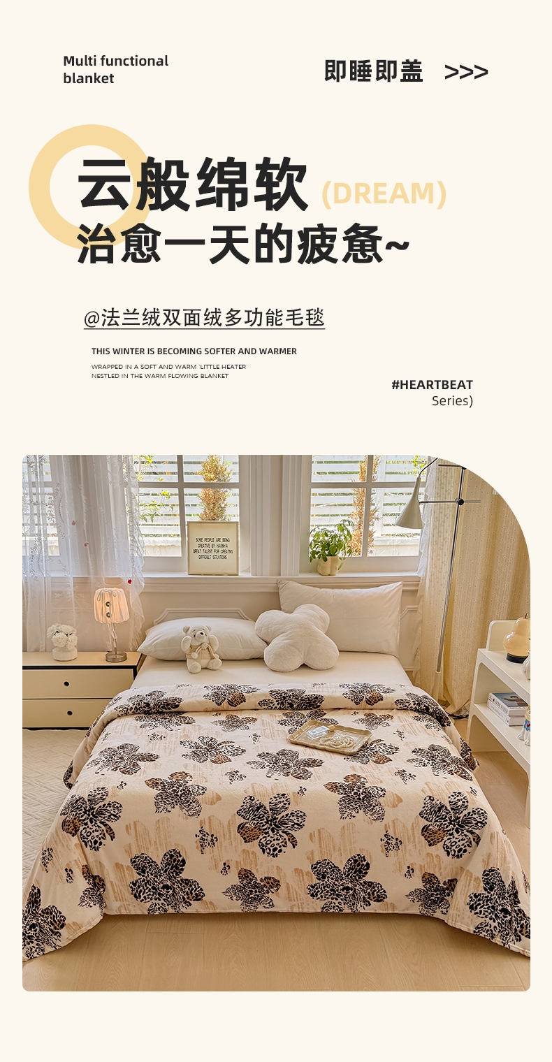 云般绵软oREAM治愈一天的疲惫~ 双面绒;多功能休闲毯可做午休毯旅行毯空调毯工作盖毯等;一毯多用成就心尖上的美好