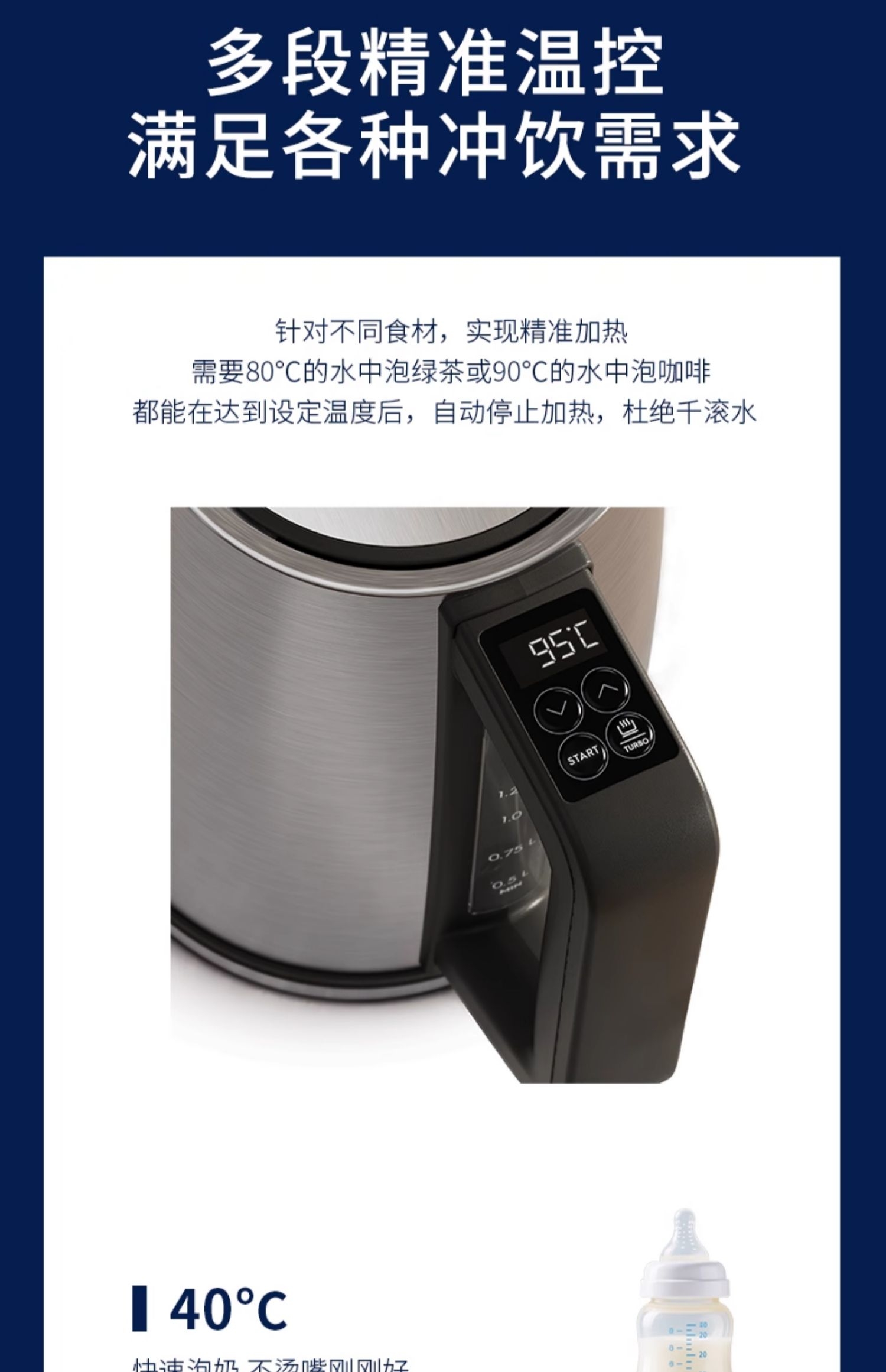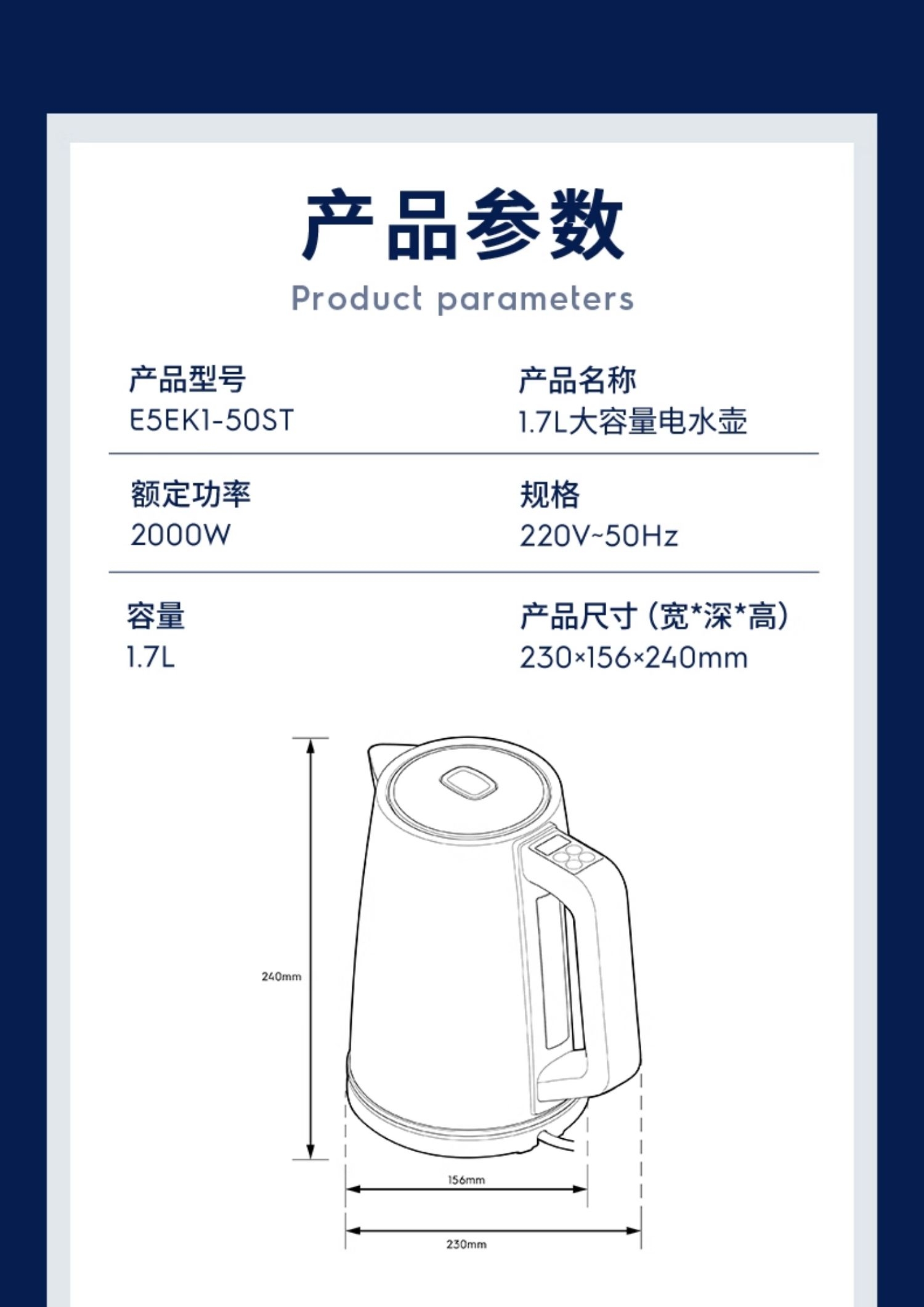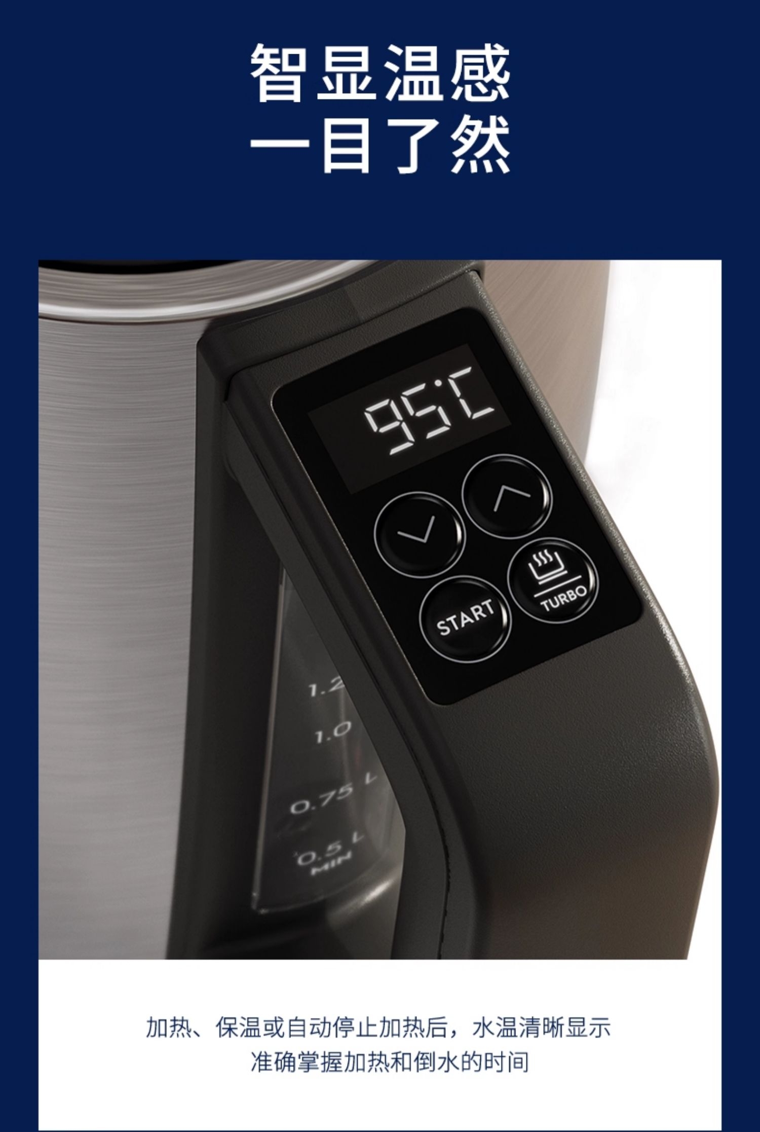 1.7L大容量;实时温度显示;隐藏式埋线设计