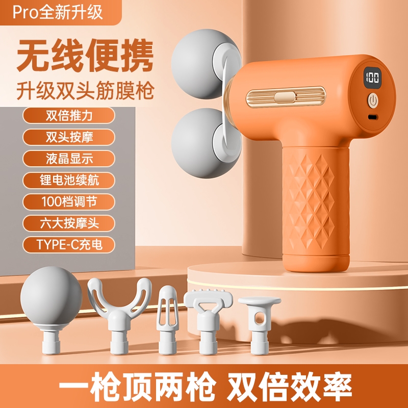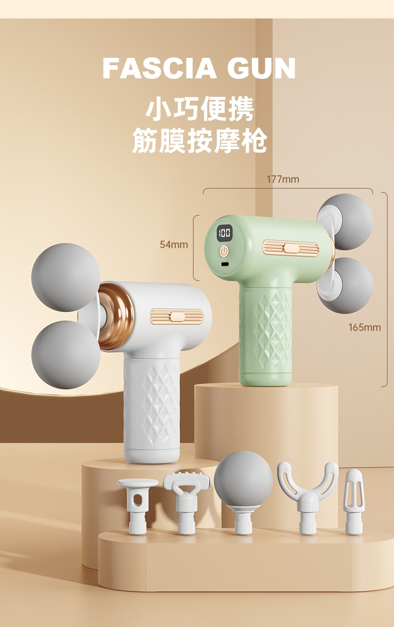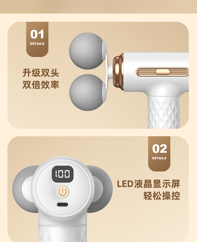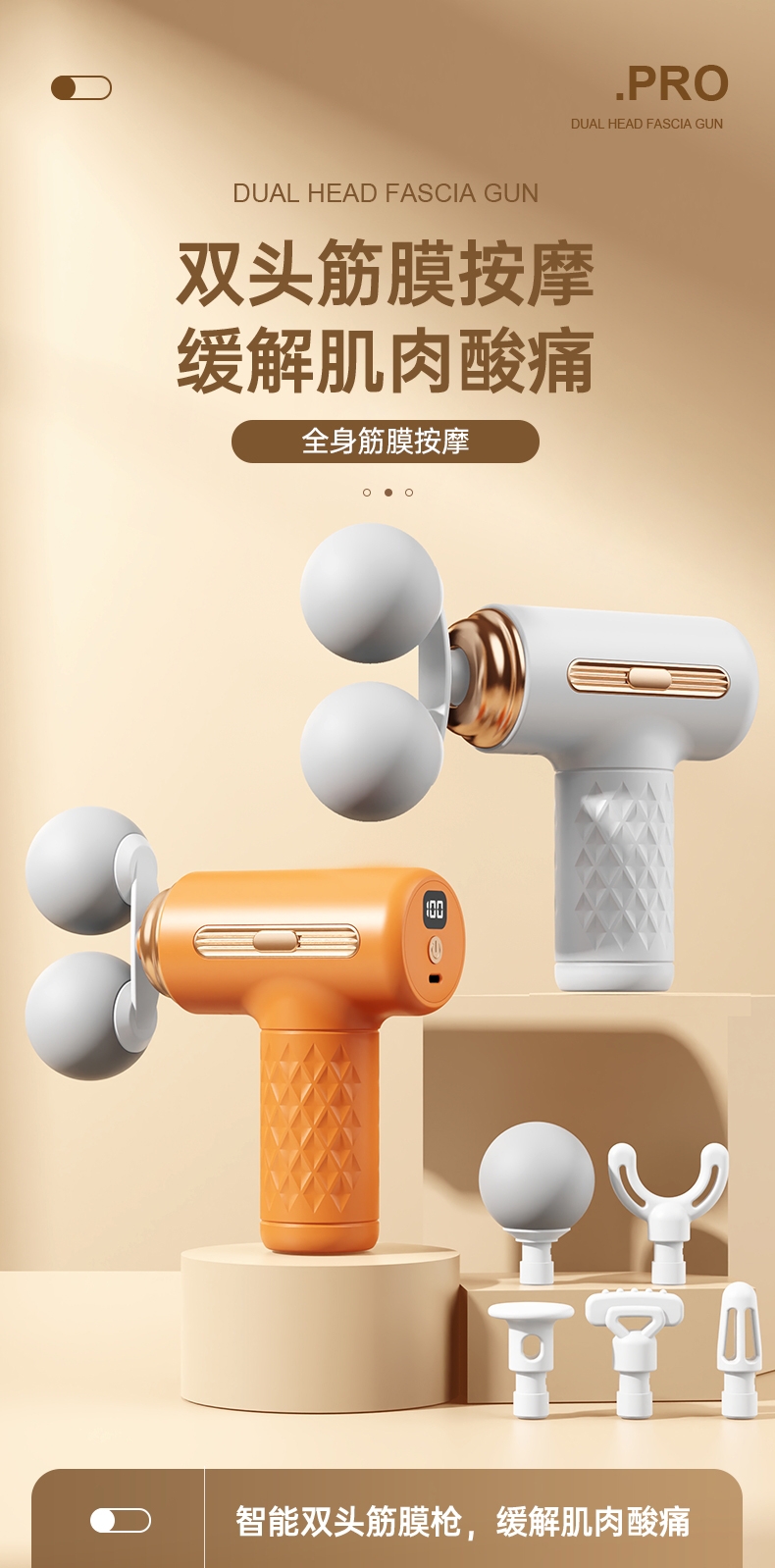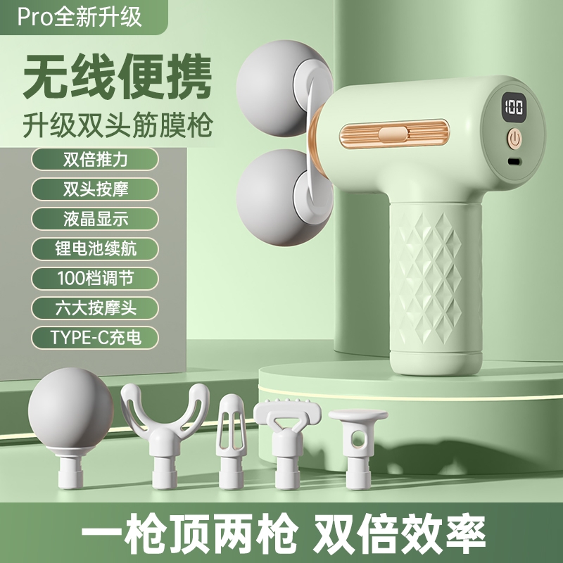 双头筋膜按摩;锂电续航,升级大容量锂电池续航;TYPE-C充电, 便携充电