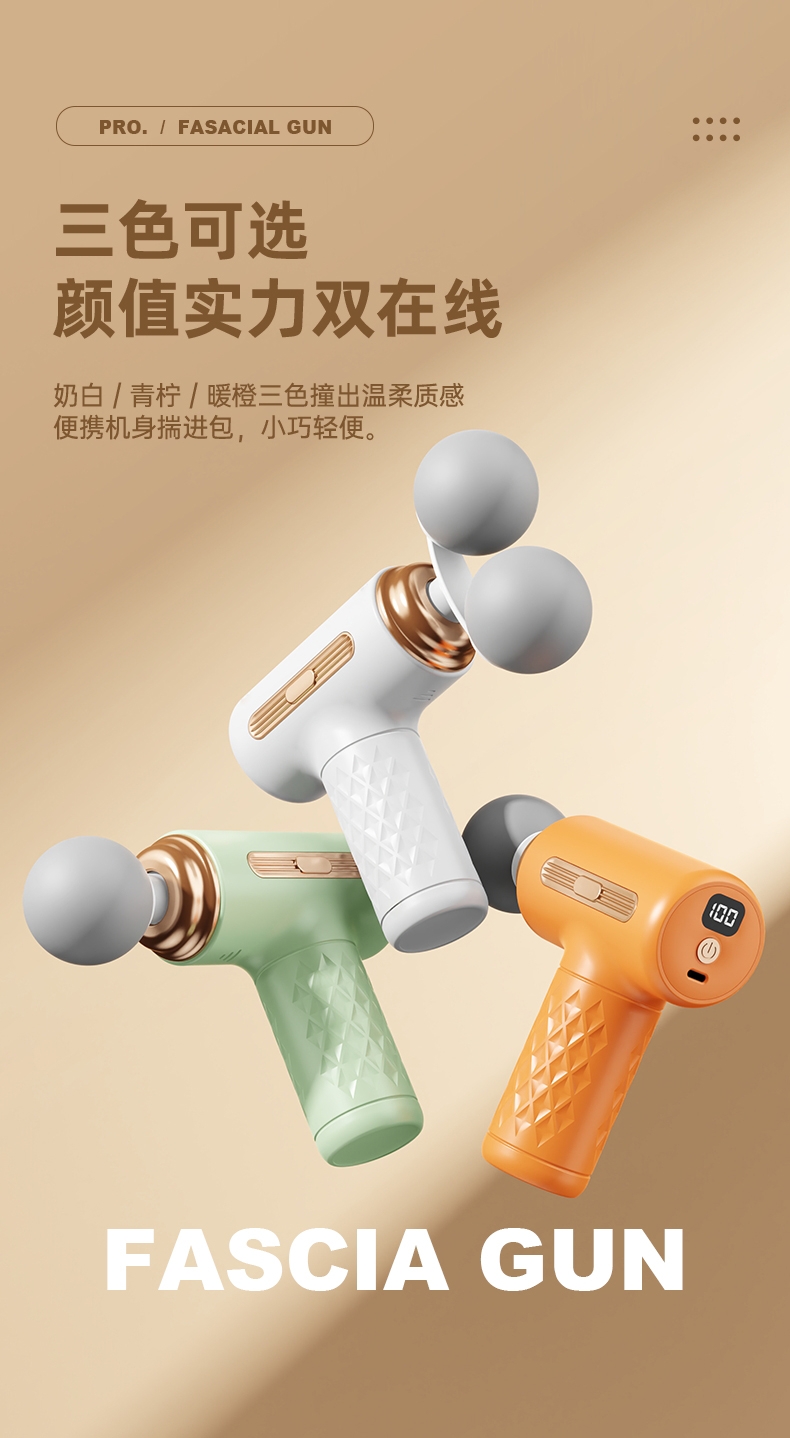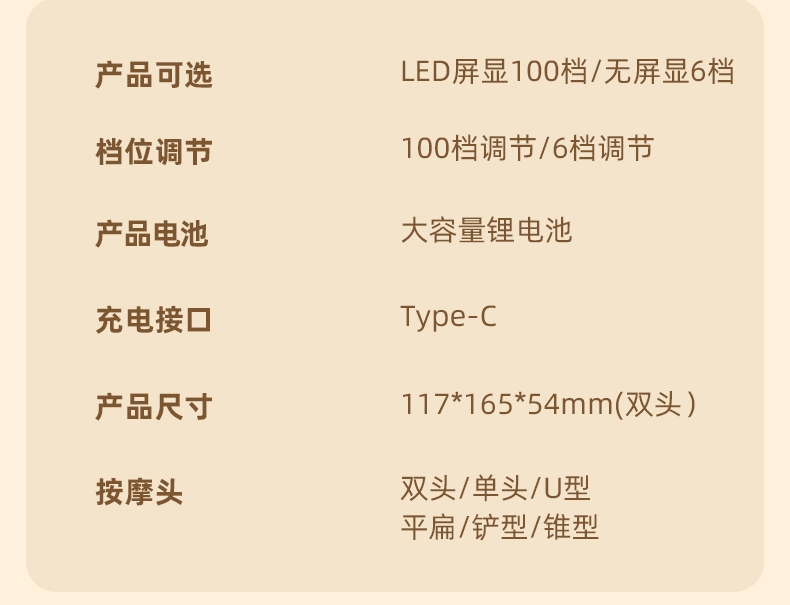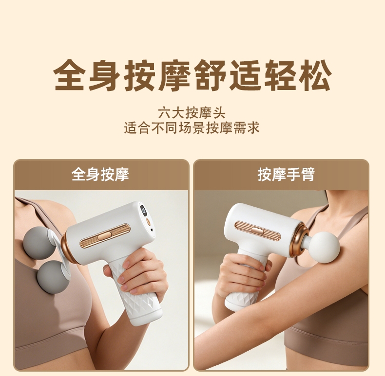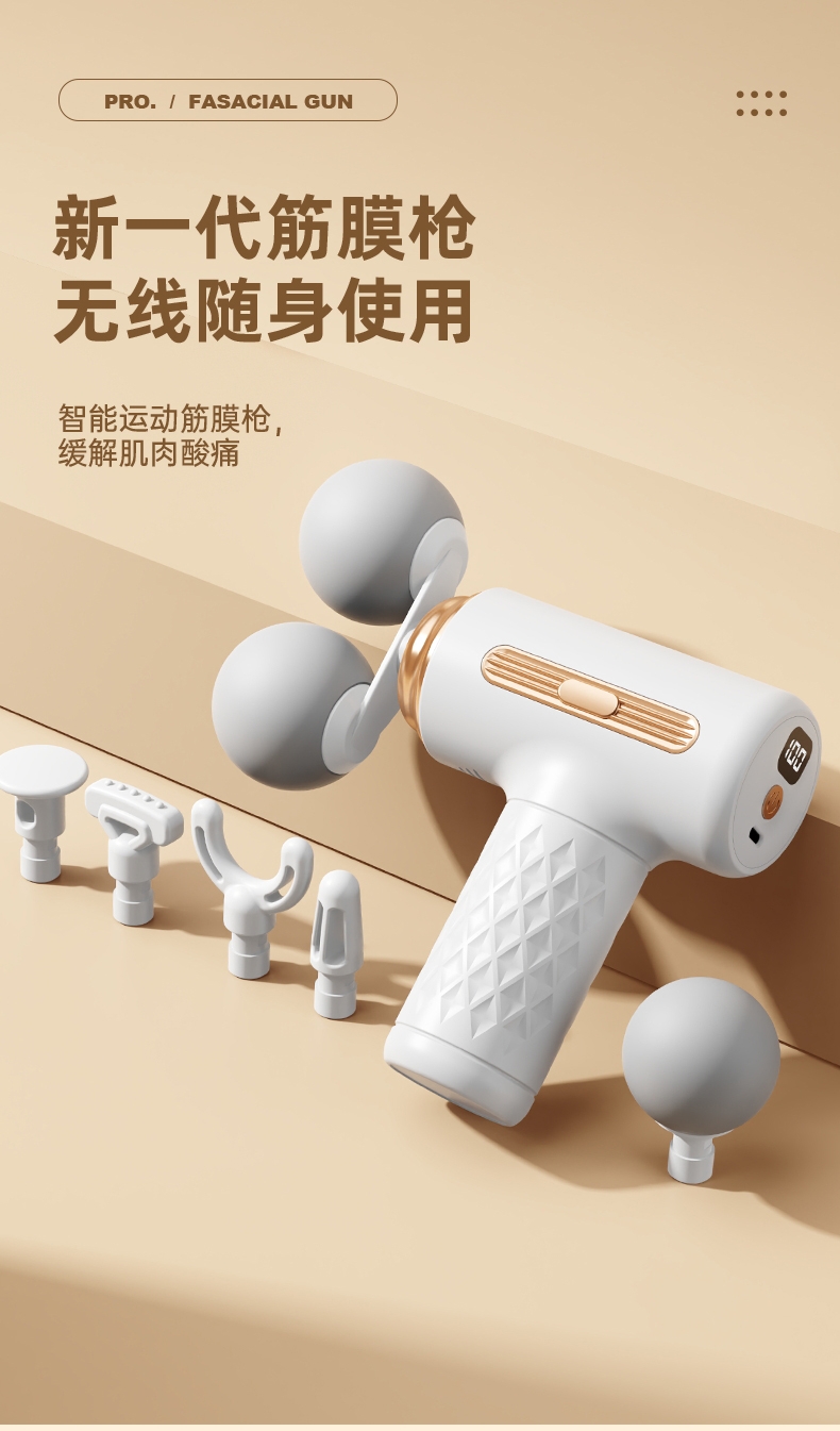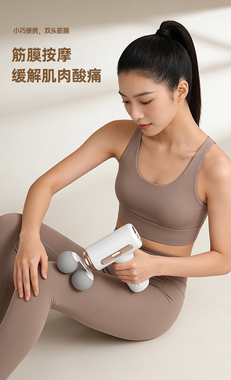 双头筋膜按摩;锂电续航,升级大容量锂电池续航;TYPE-C充电, 便携充电