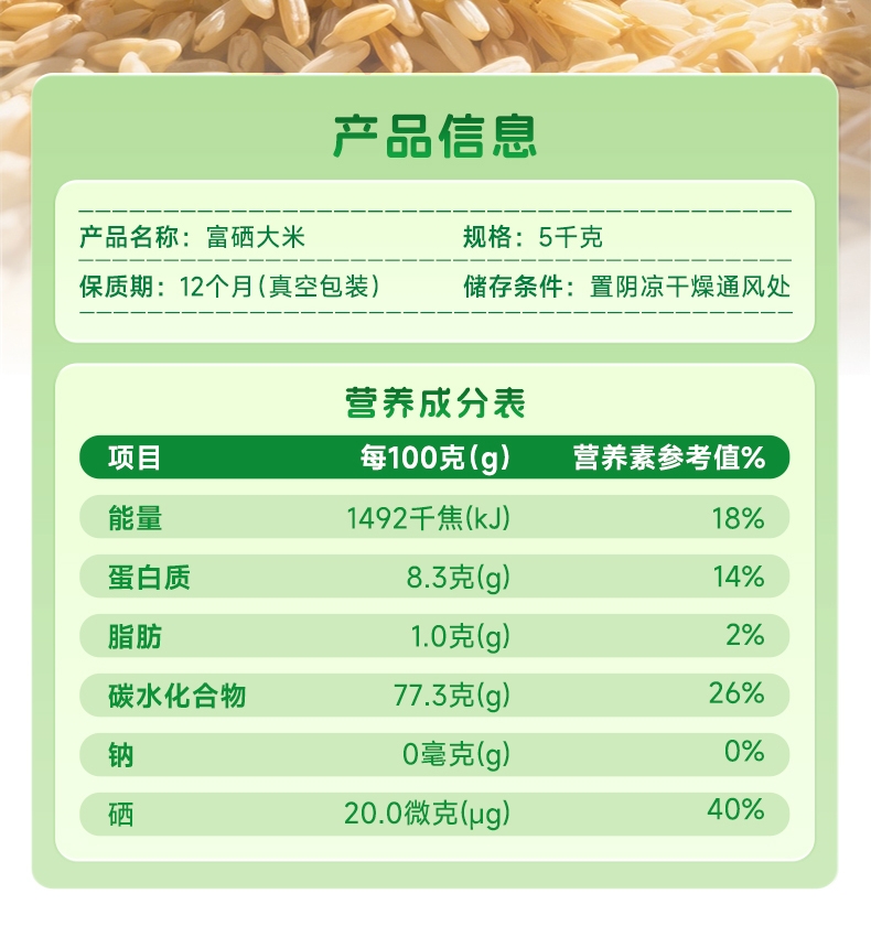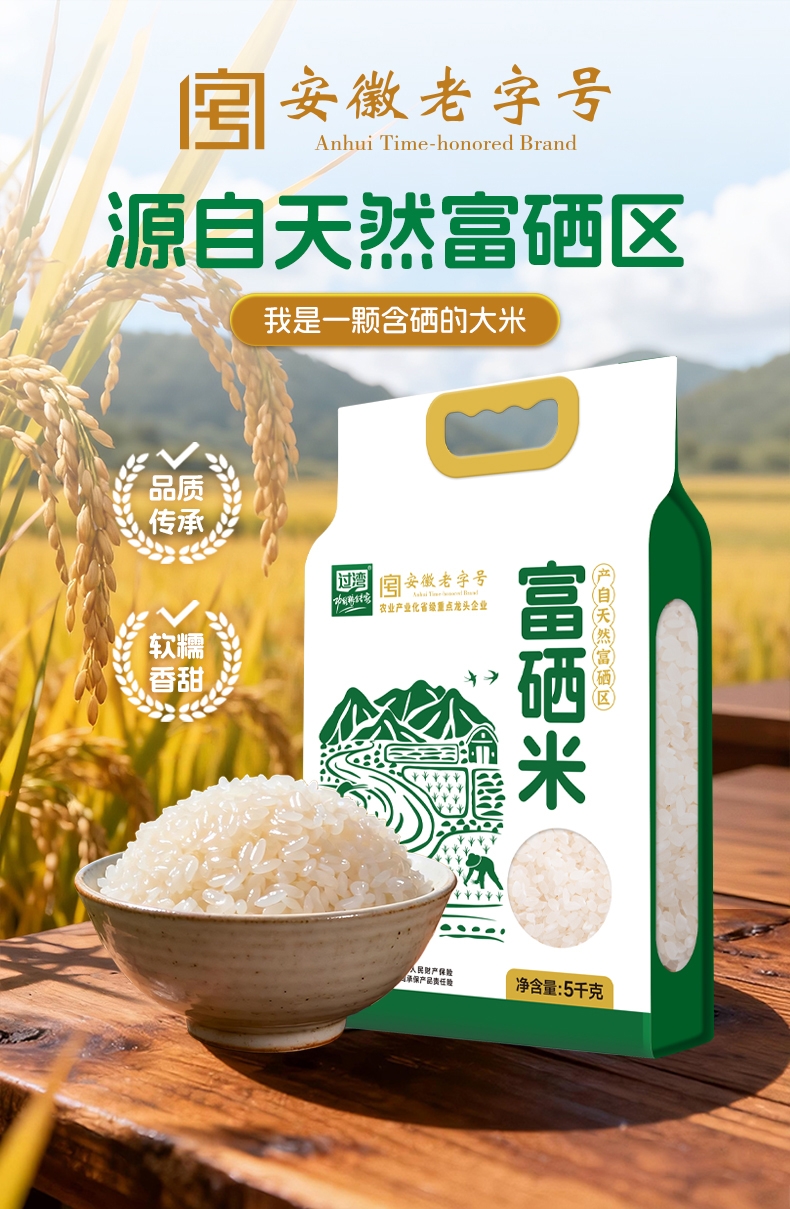 天然富硒产区,生态种植,营养更安心;软糯清香,皖美品质,5kg 家庭装更实惠;科学补硒优选,源头好米,守护全家健康