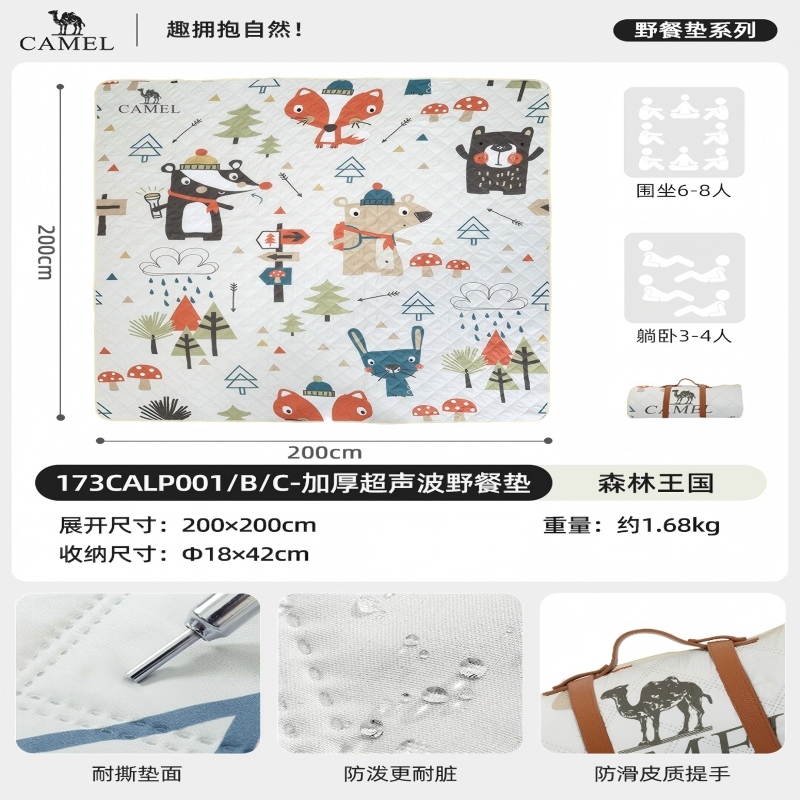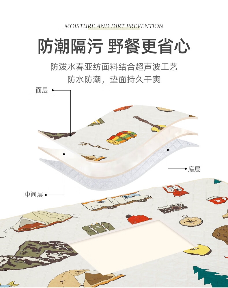 加厚超声波野餐垫,软硬适中,防潮隔污;防潮隔脏,轻松易打理;大空间垫面,坐卧不拥挤