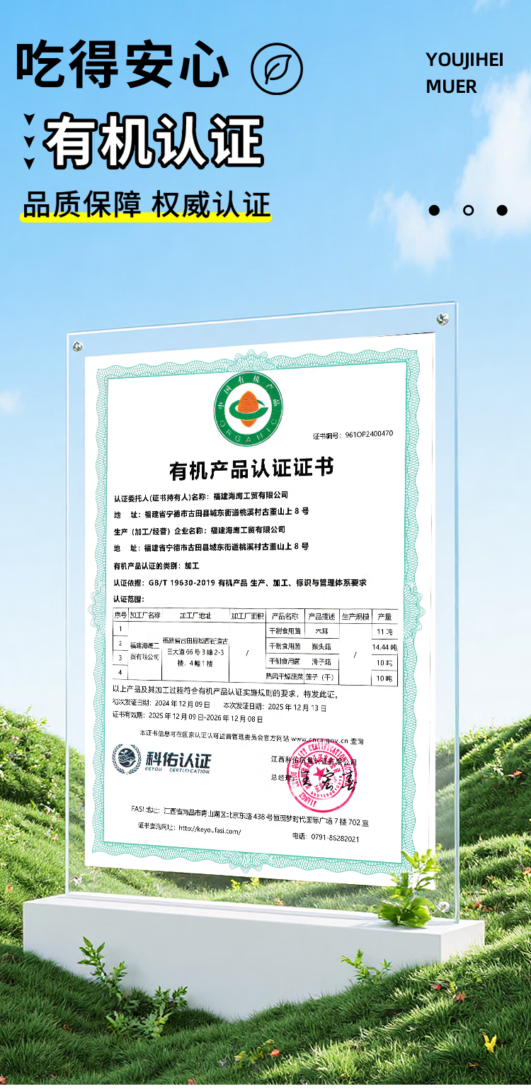 有机认证 全程有机可溯源;吃的安心有保障;满足全家老少营养需求