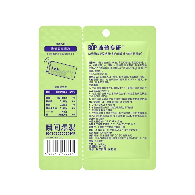 一咬即爆,立感清新;无需咀嚼,告别咬肌;0蔗糖,好吃不长胖