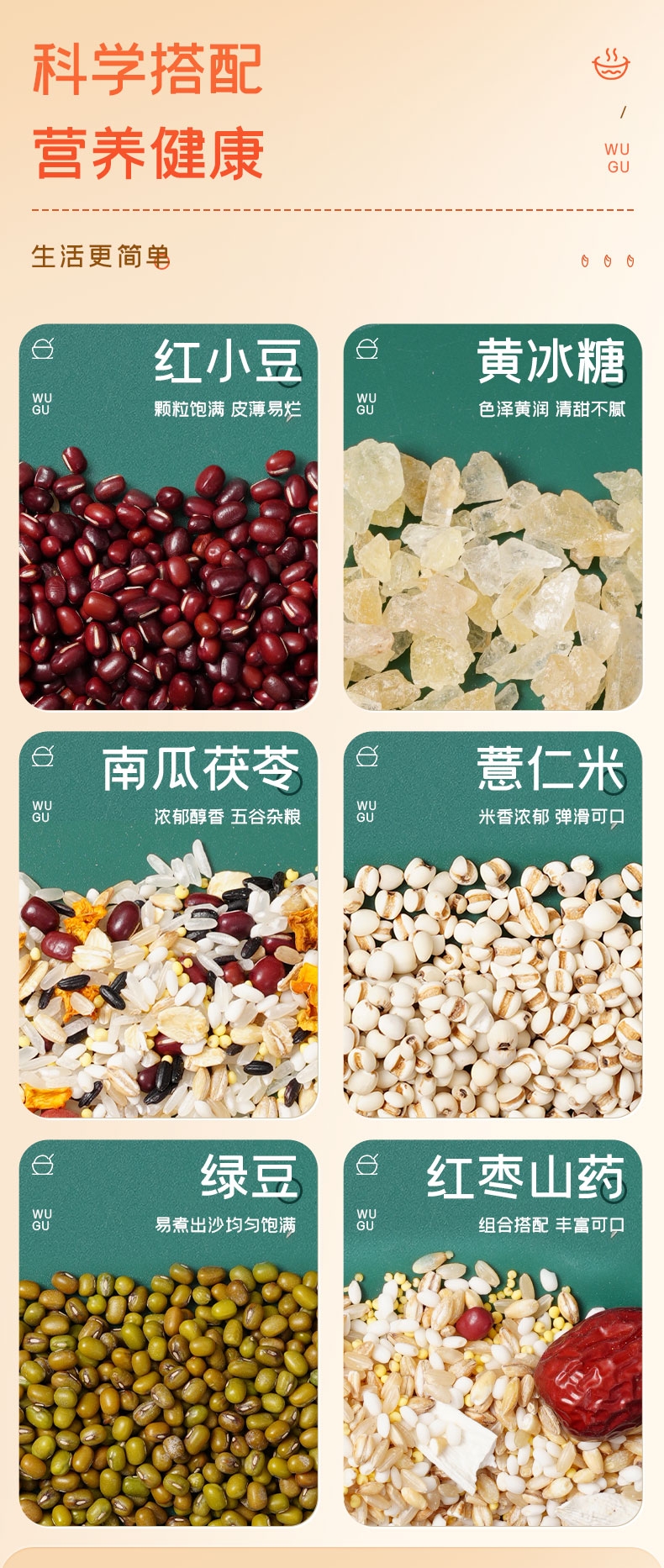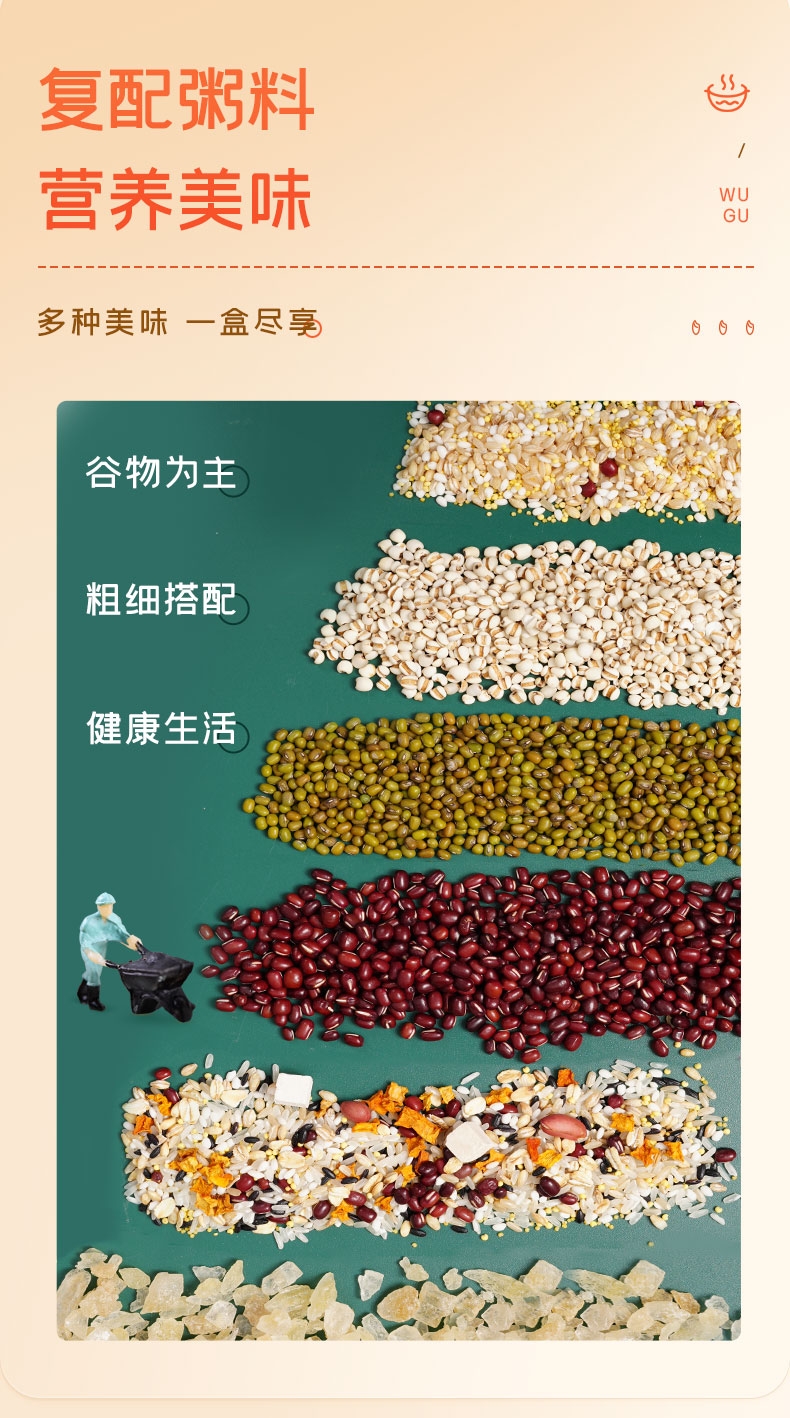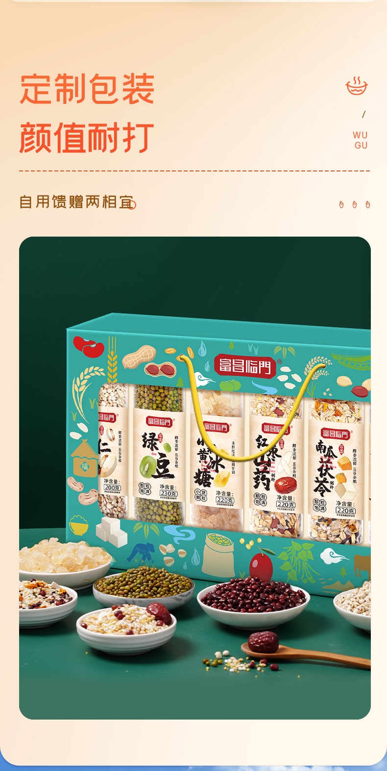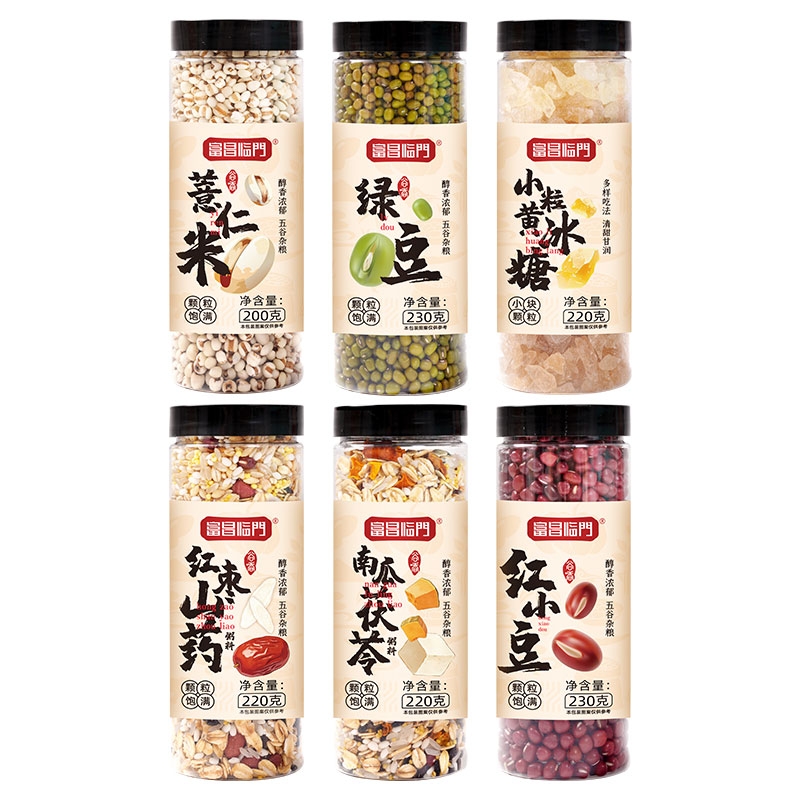 配置清单:富昌临门红小豆230g 富昌临门绿豆230g 富昌临门薏仁米200g 富昌临门红枣山药麦粥料220g 富昌临门南瓜茯苓粥料220g 富昌临门小粒黄冰糖200g