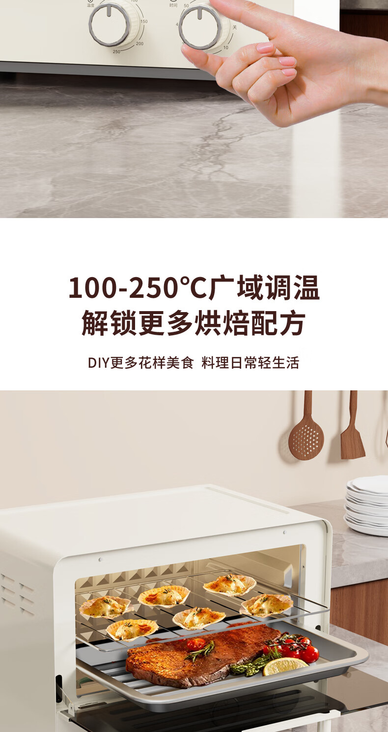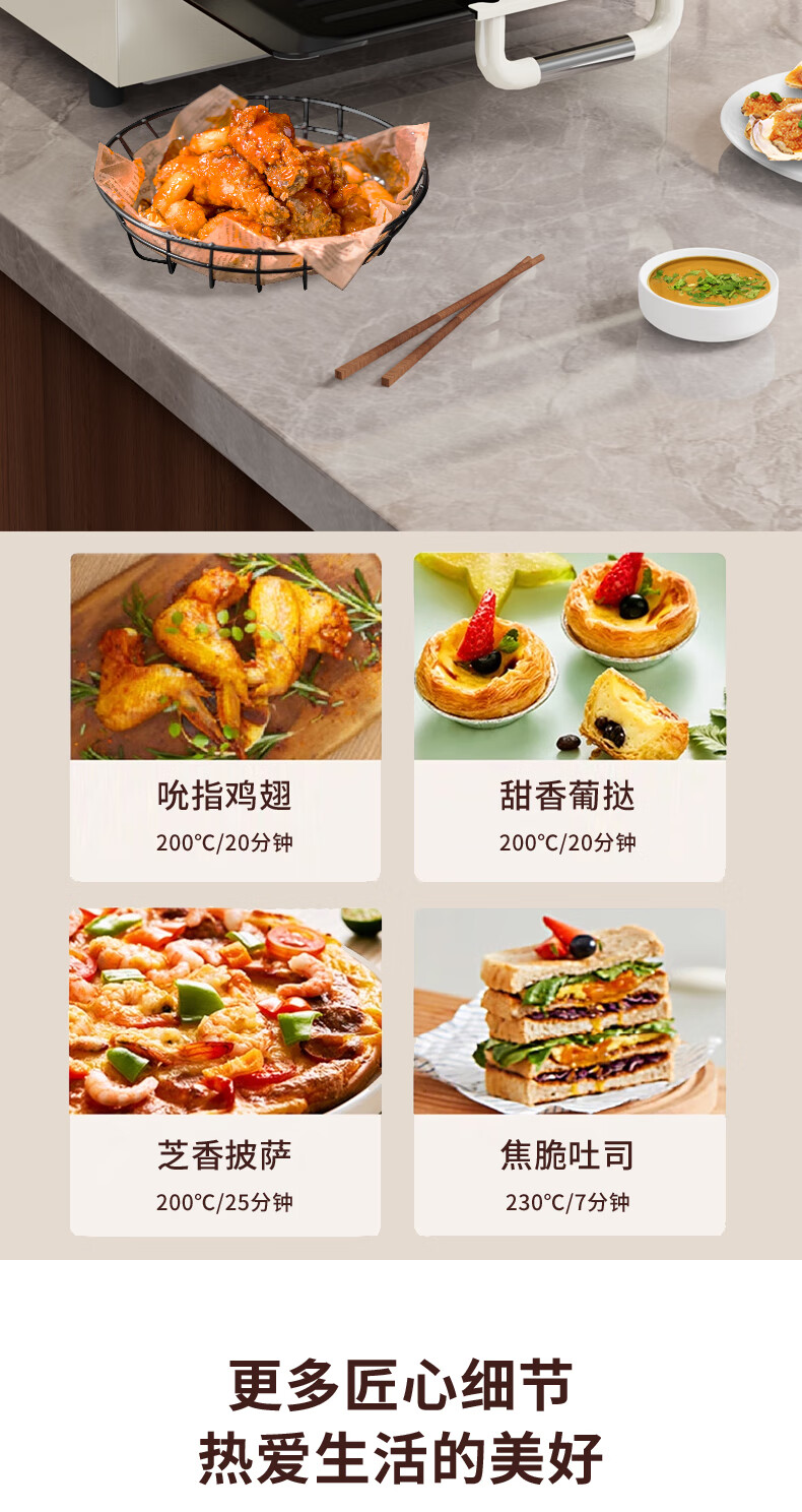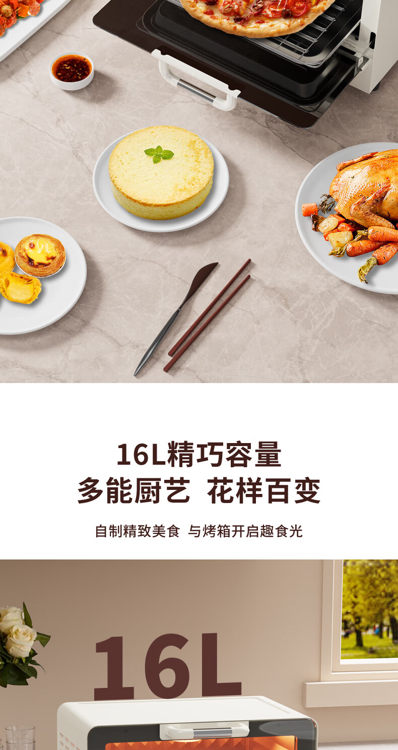 16L 大容量,1400W大功率;可视窗设计,随时关注美食 ;双旋钮控时控温,解锁花样美食