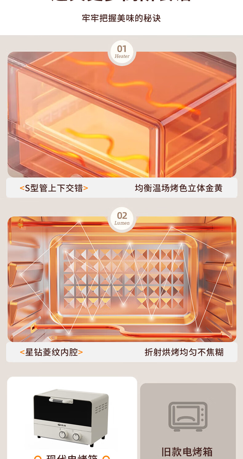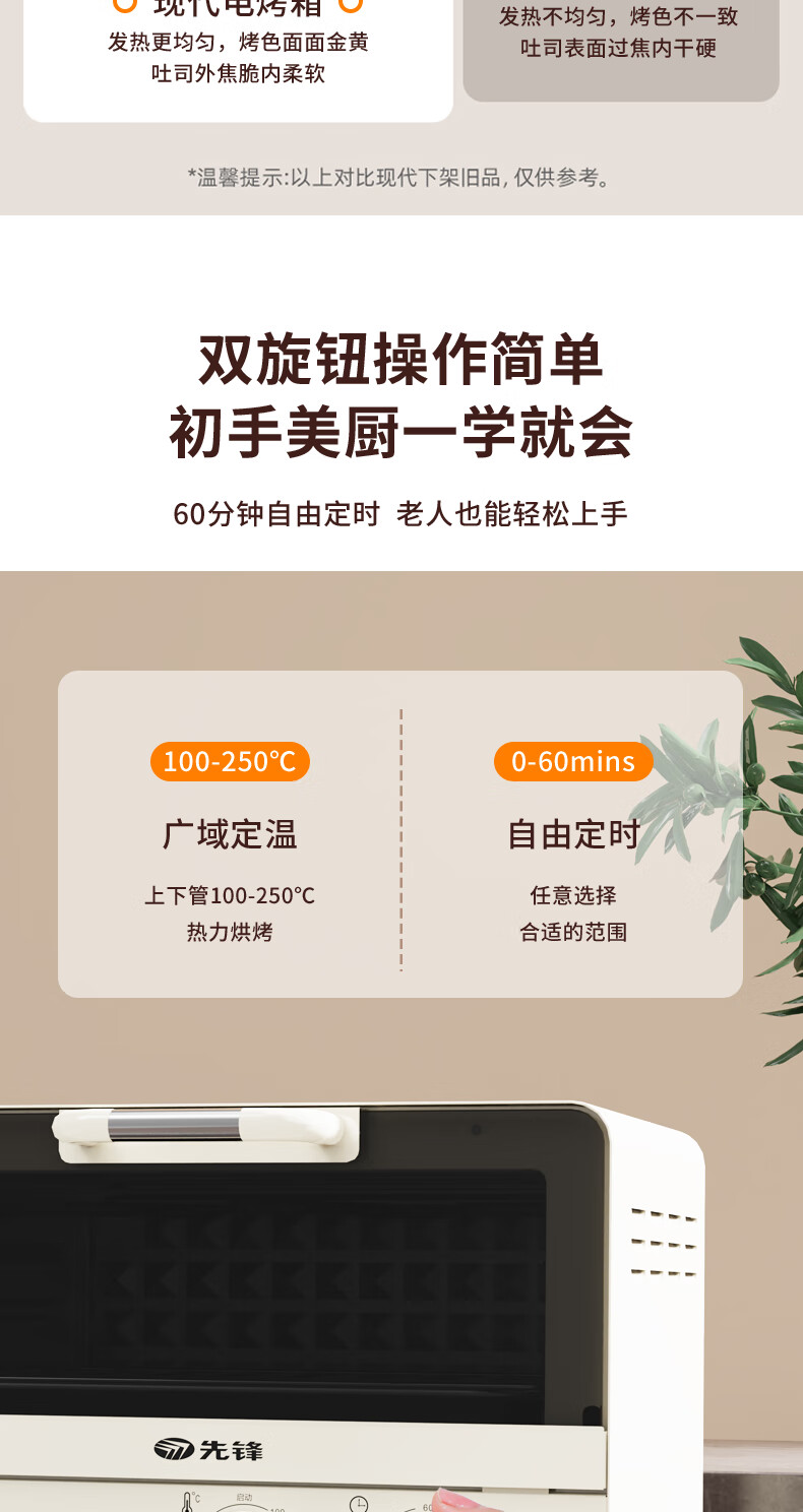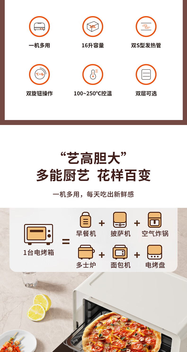 16L 大容量,1400W大功率;可视窗设计,随时关注美食 ;双旋钮控时控温,解锁花样美食