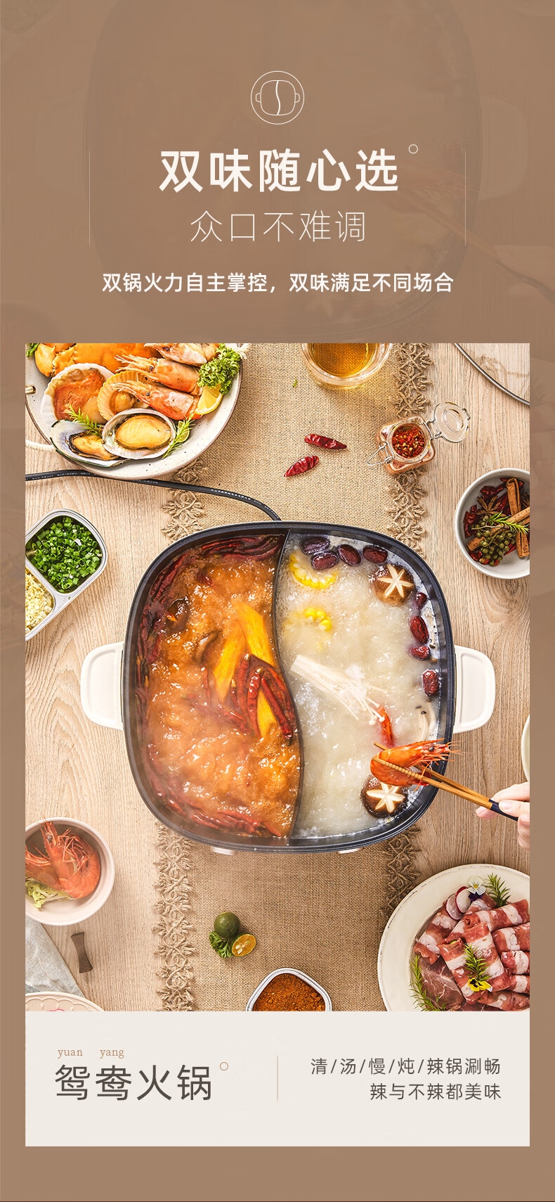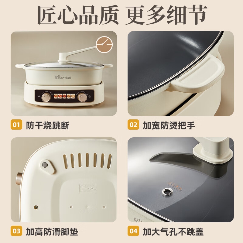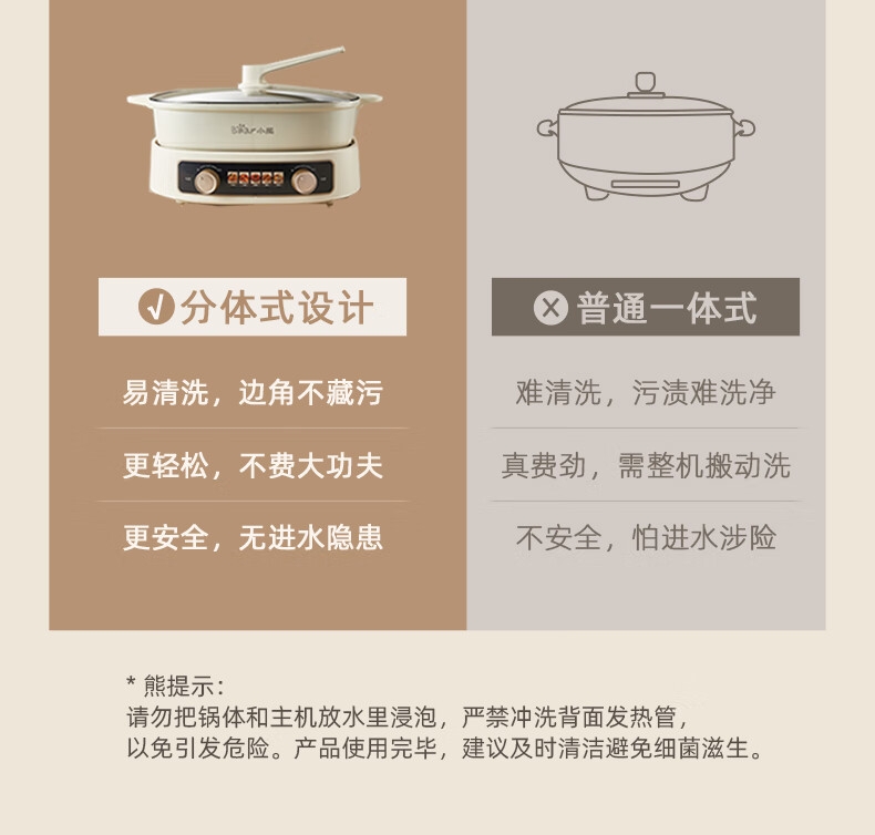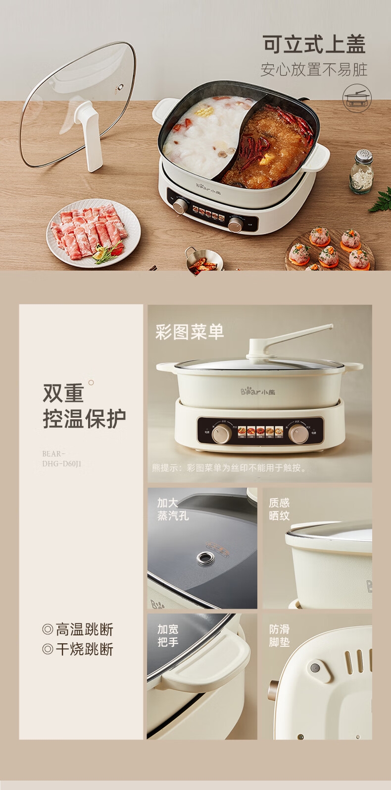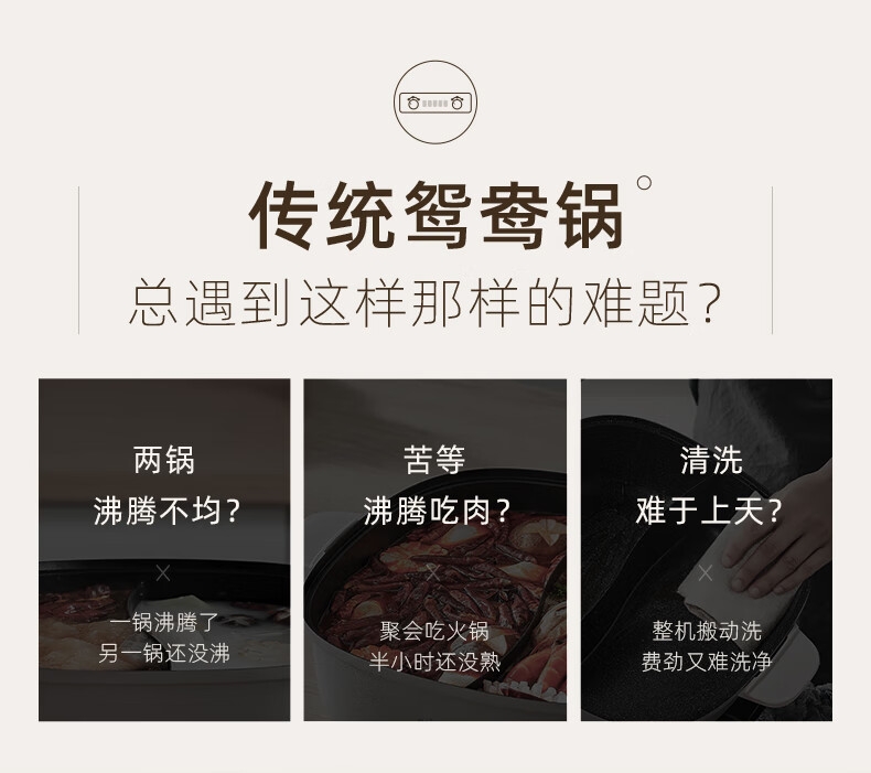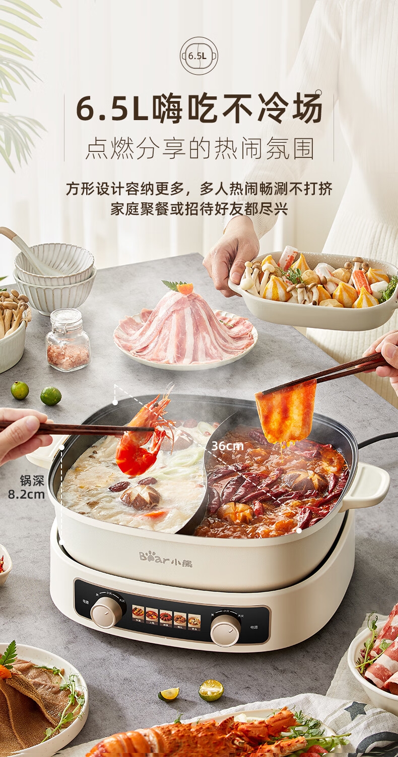 2100W速热;左右独立操控分区控温;可立式锅盖