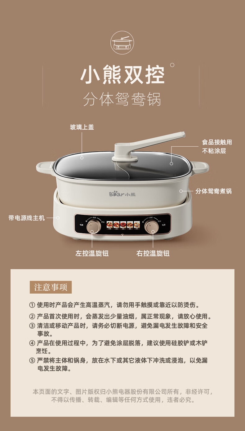 小熊 鸳鸯电火锅专用锅电煮锅家用DHG-D60J1