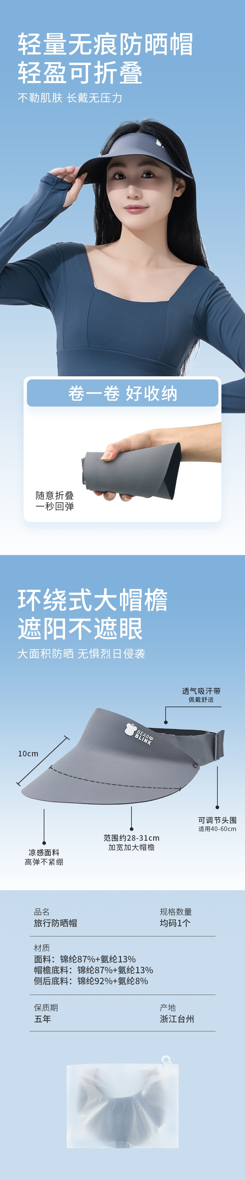 轻量无痕防晒帽;不勒肌肤 长戴无压力;卷一卷 好收纳