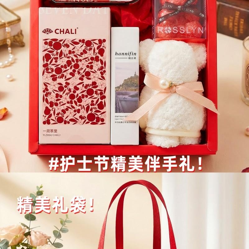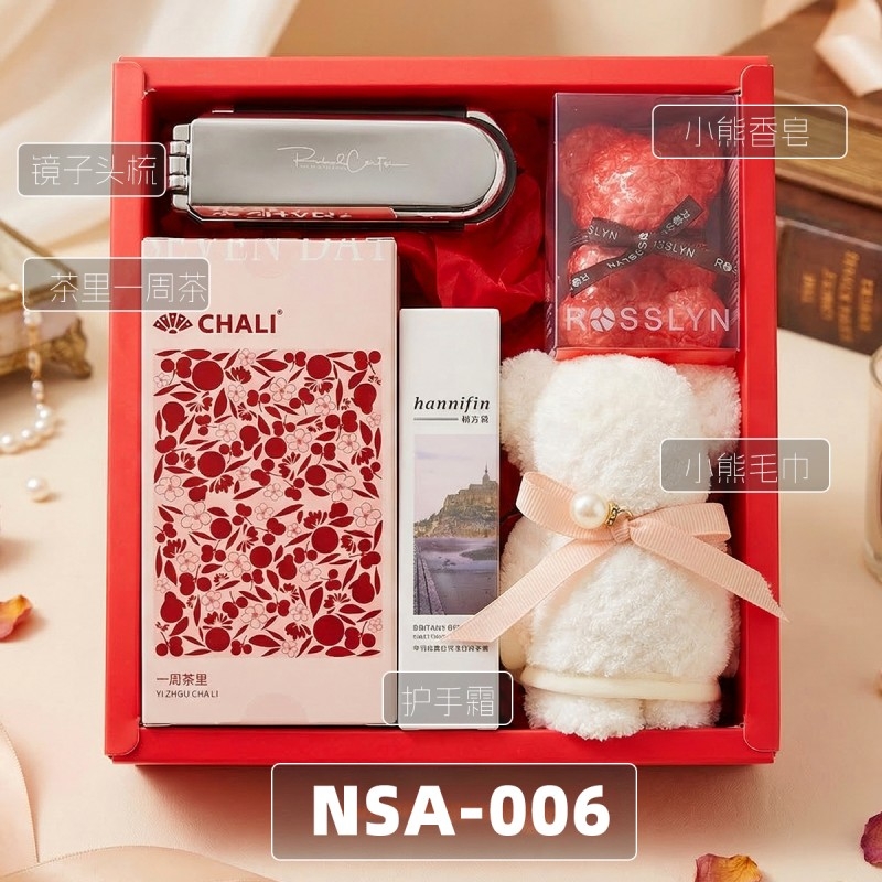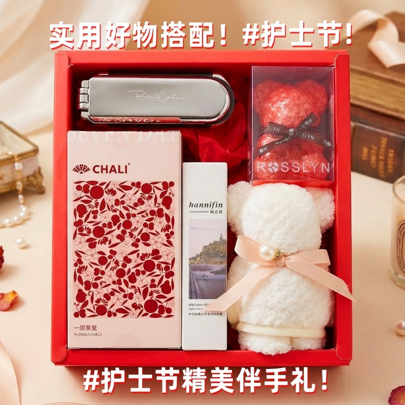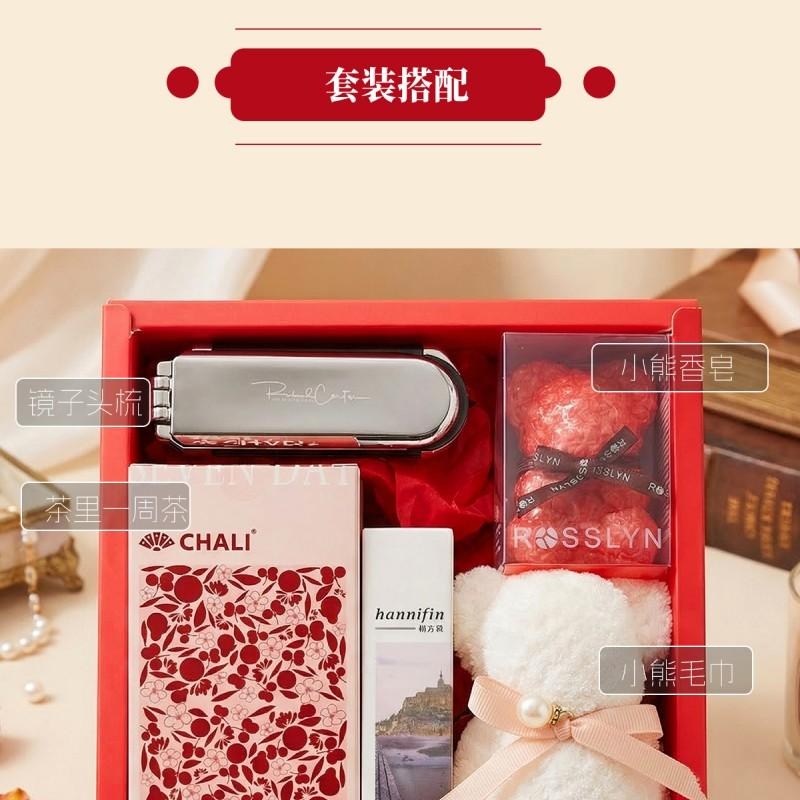 组合: 镜子气囊头梳*1、小毛巾熊30*30cm*1、茶里国风周茶2g*7袋、韩方莉香氛护手霜50g*1、罗斯琳玫瑰小熊香氛皂100g*1