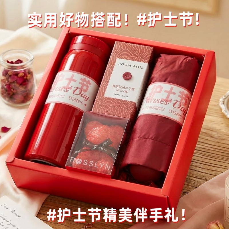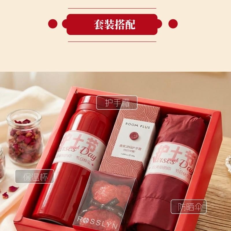 组合:保温杯300ml*1、6骨防晒胶囊伞*1、隆帕斯滋润护手霜30g*1、罗斯琳玫瑰小熊香氛皂100g*1
