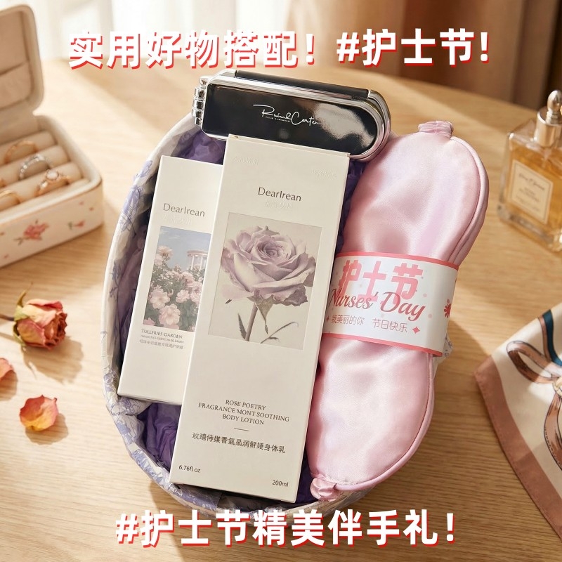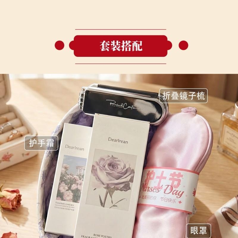 组合:眼罩*1、镜子气囊头梳*1、独特艾琳香氛护手霜35ML*1、独特艾琳香氛身体乳200ML*1