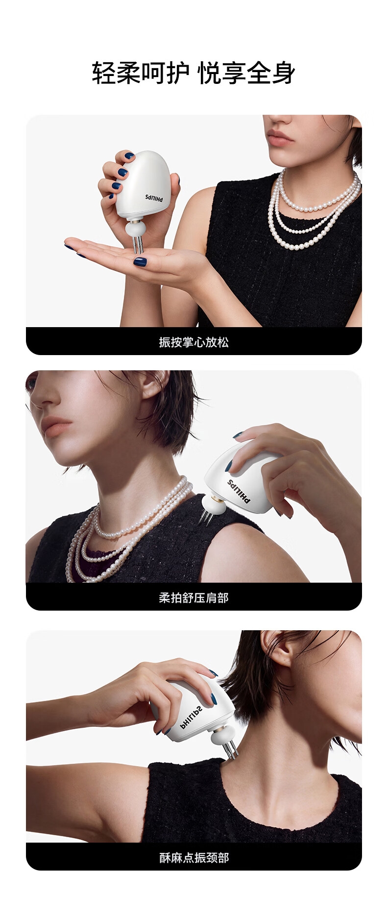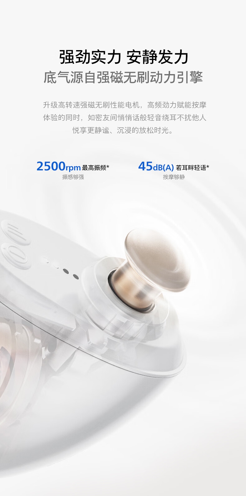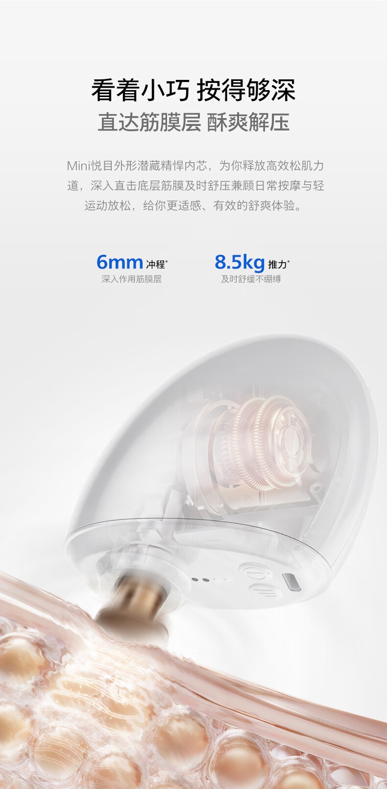 首创V型筋膜棒;强劲振感,直透筋膜更解压;创新鹅蛋造型,经典珠光外观设计