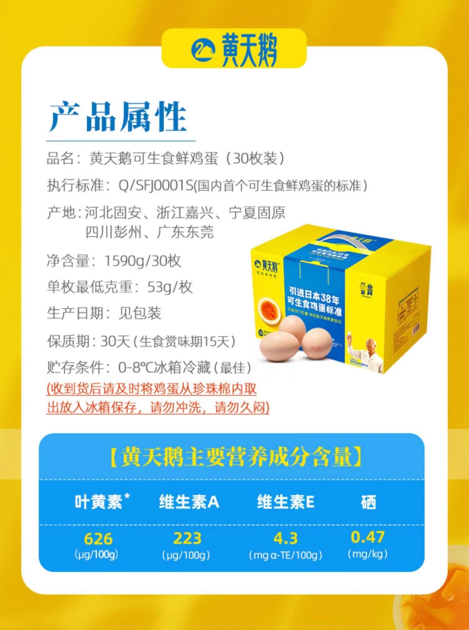 黄天鹅 可生食鸡蛋30枚珍珠棉