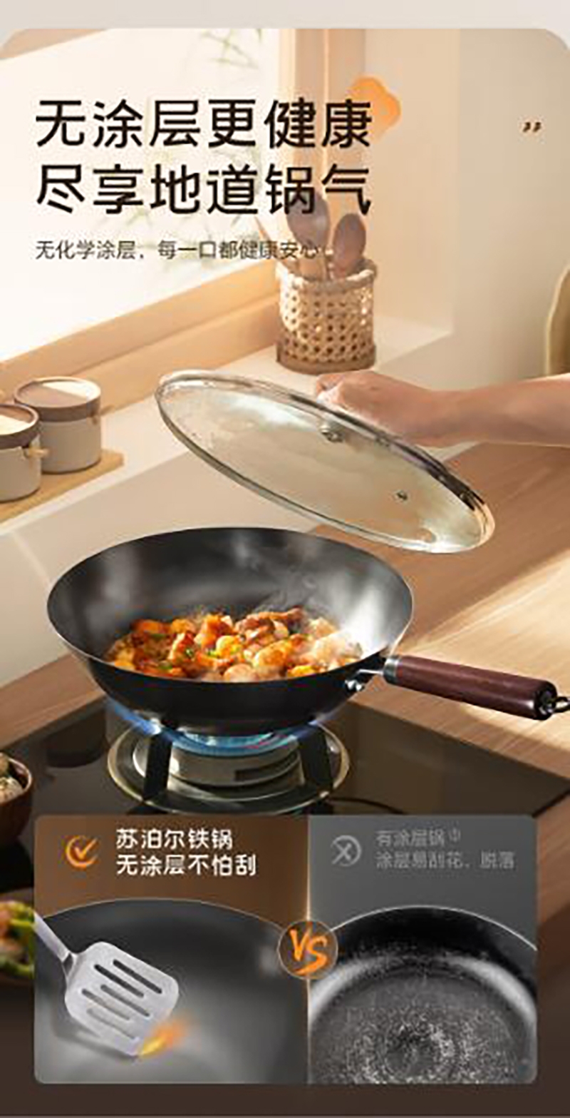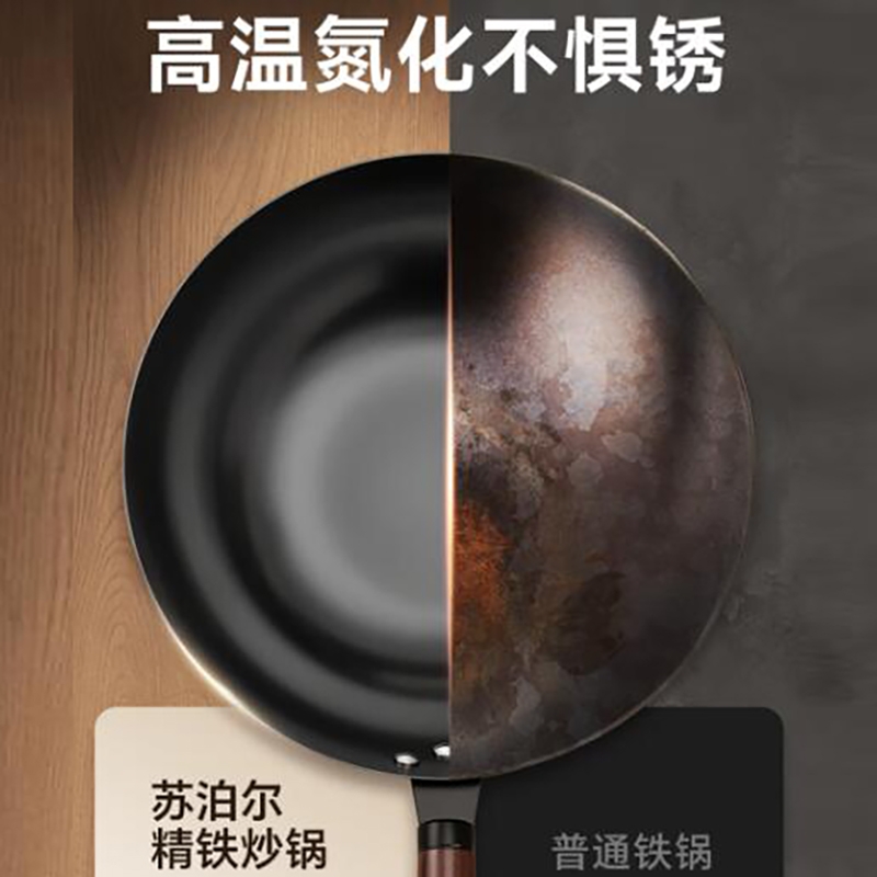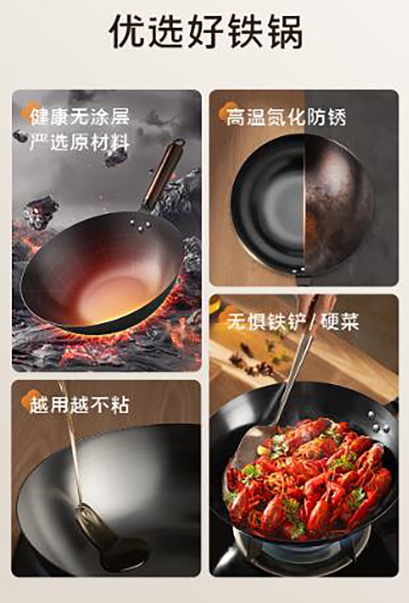 无涂层更健康尽享地道锅气无化学涂层,每一口都健康安;高温氮化不惧锈经高温氮化处理,硬度提升耐酸耐碱;以油润养顺滑锃亮越用越不粘