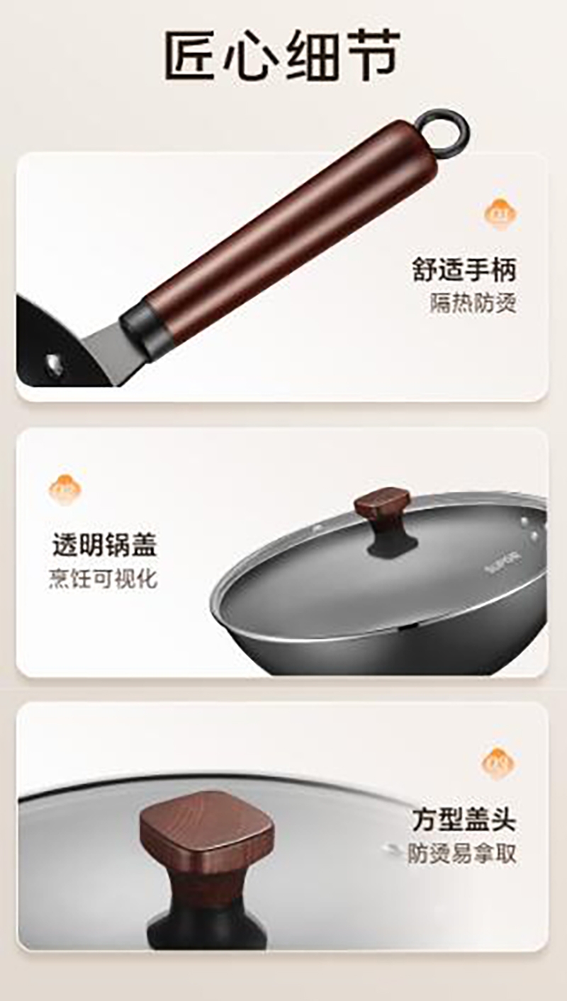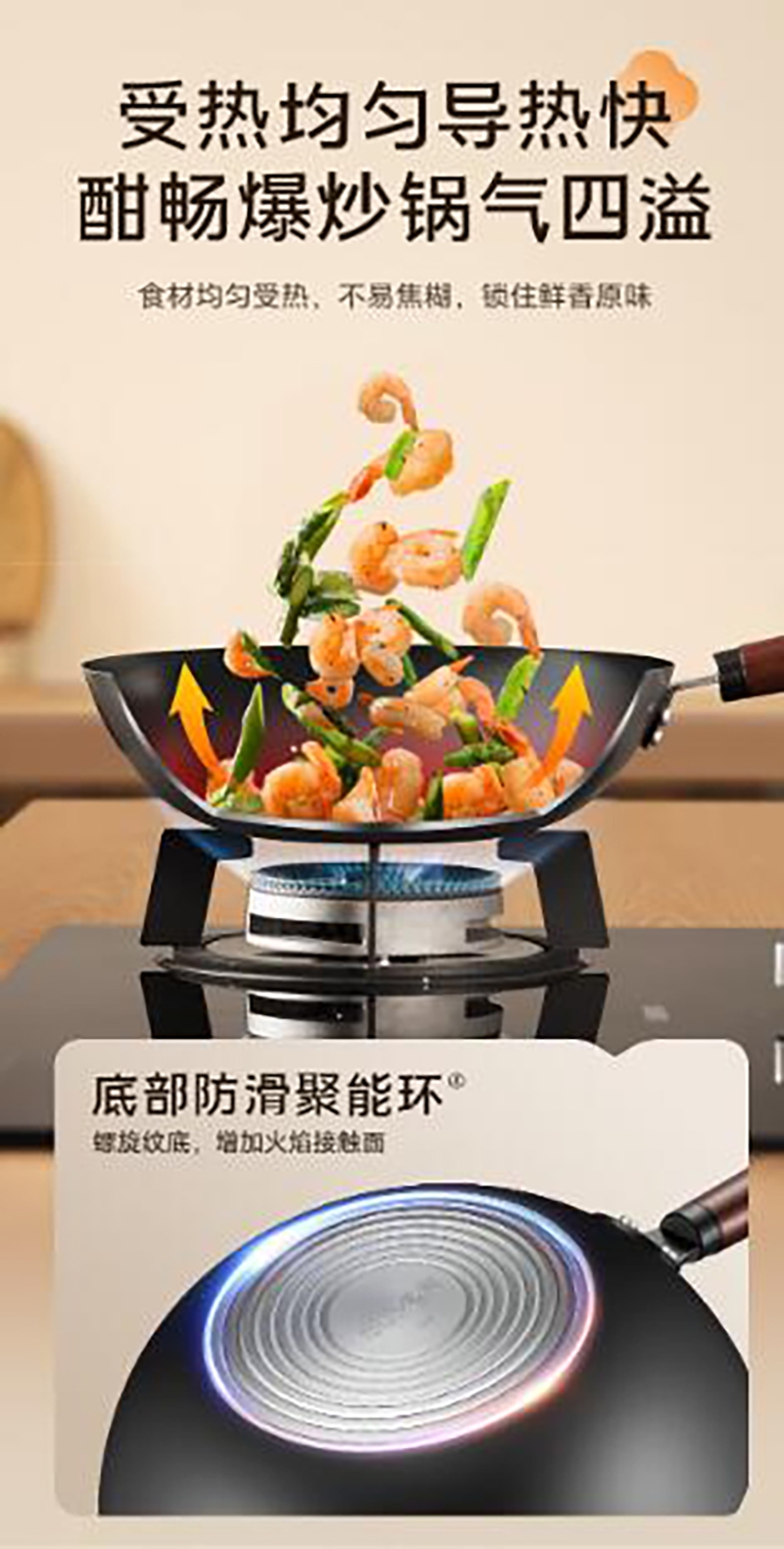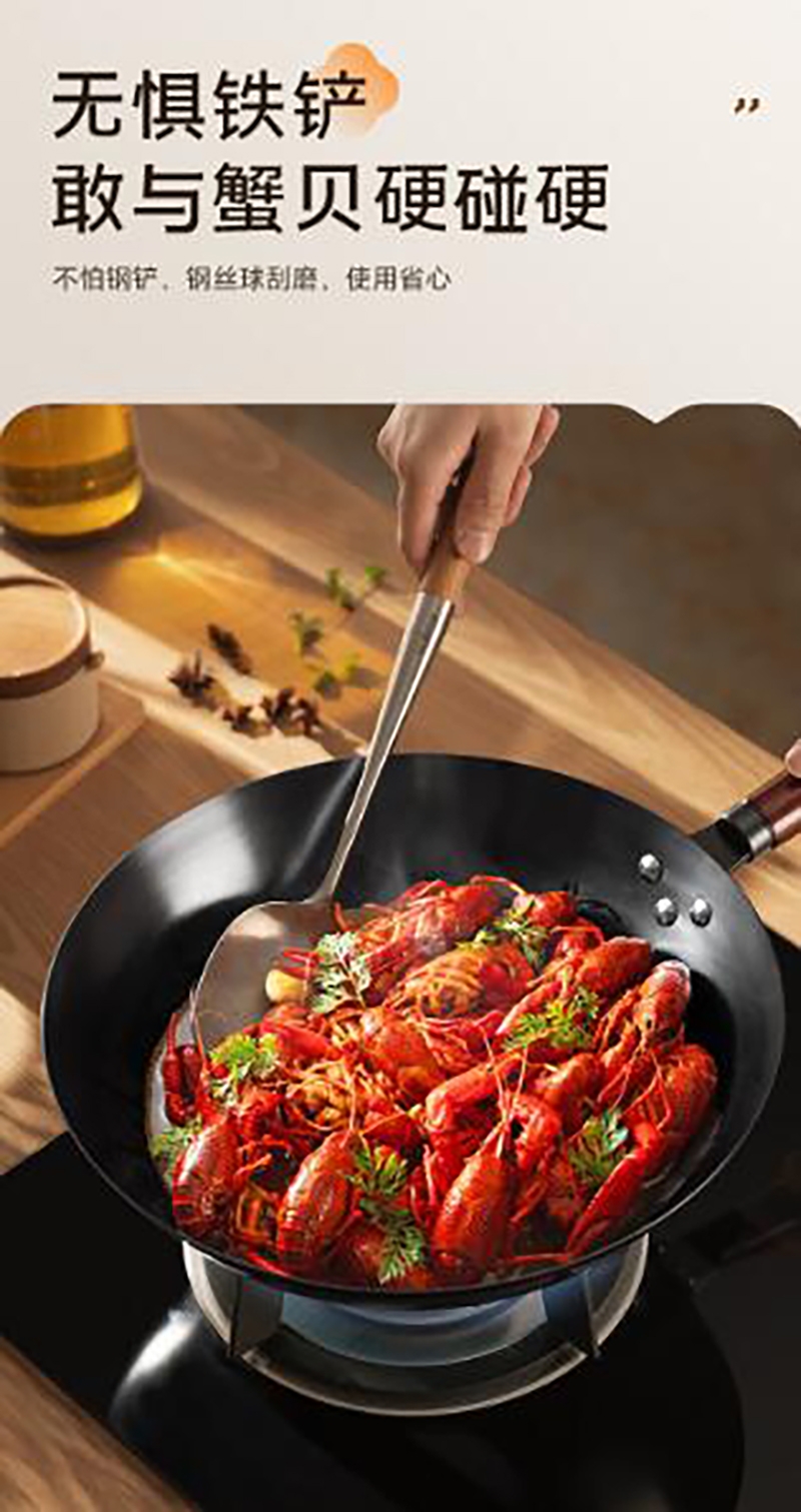 无涂层更健康尽享地道锅气无化学涂层,每一口都健康安;高温氮化不惧锈经高温氮化处理,硬度提升耐酸耐碱;以油润养顺滑锃亮越用越不粘