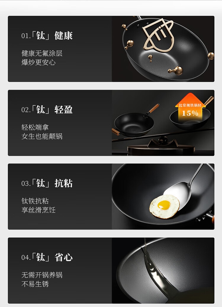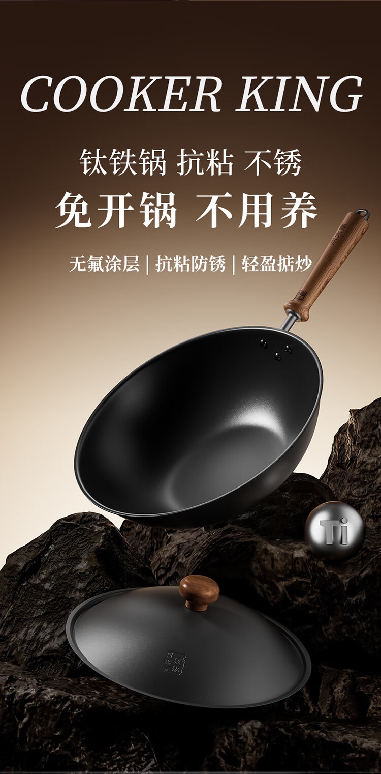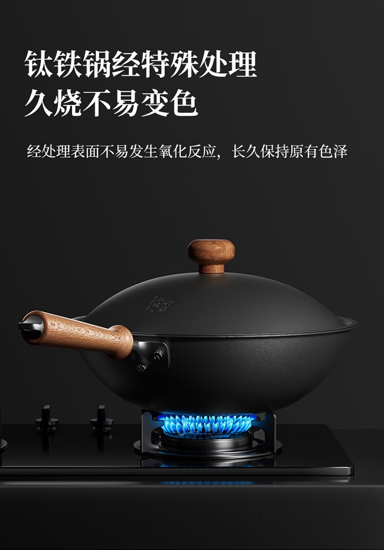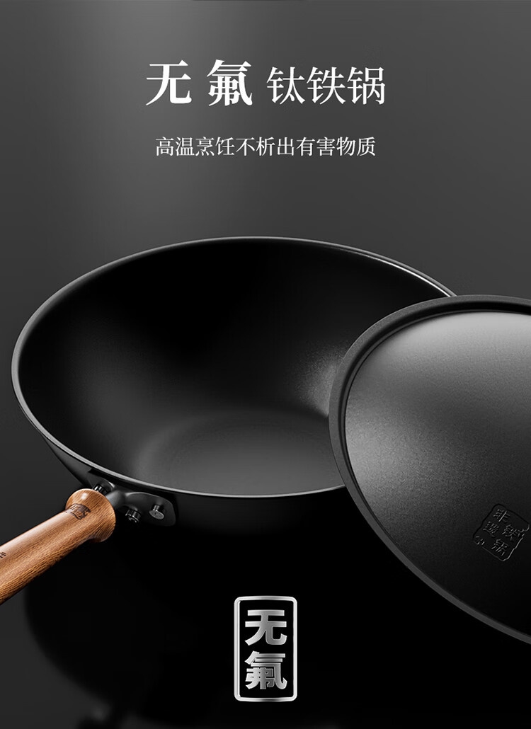无氟涂层钛铁锅;不易粘锅 内壁耐磨;免开锅 不用养
