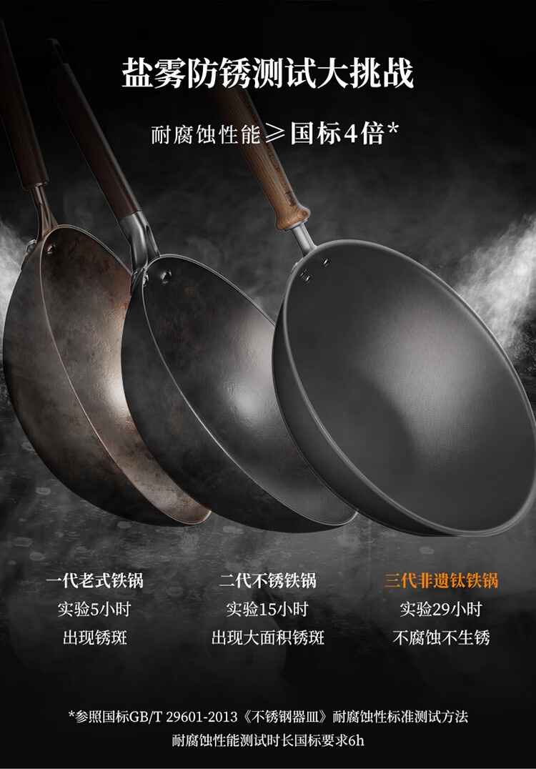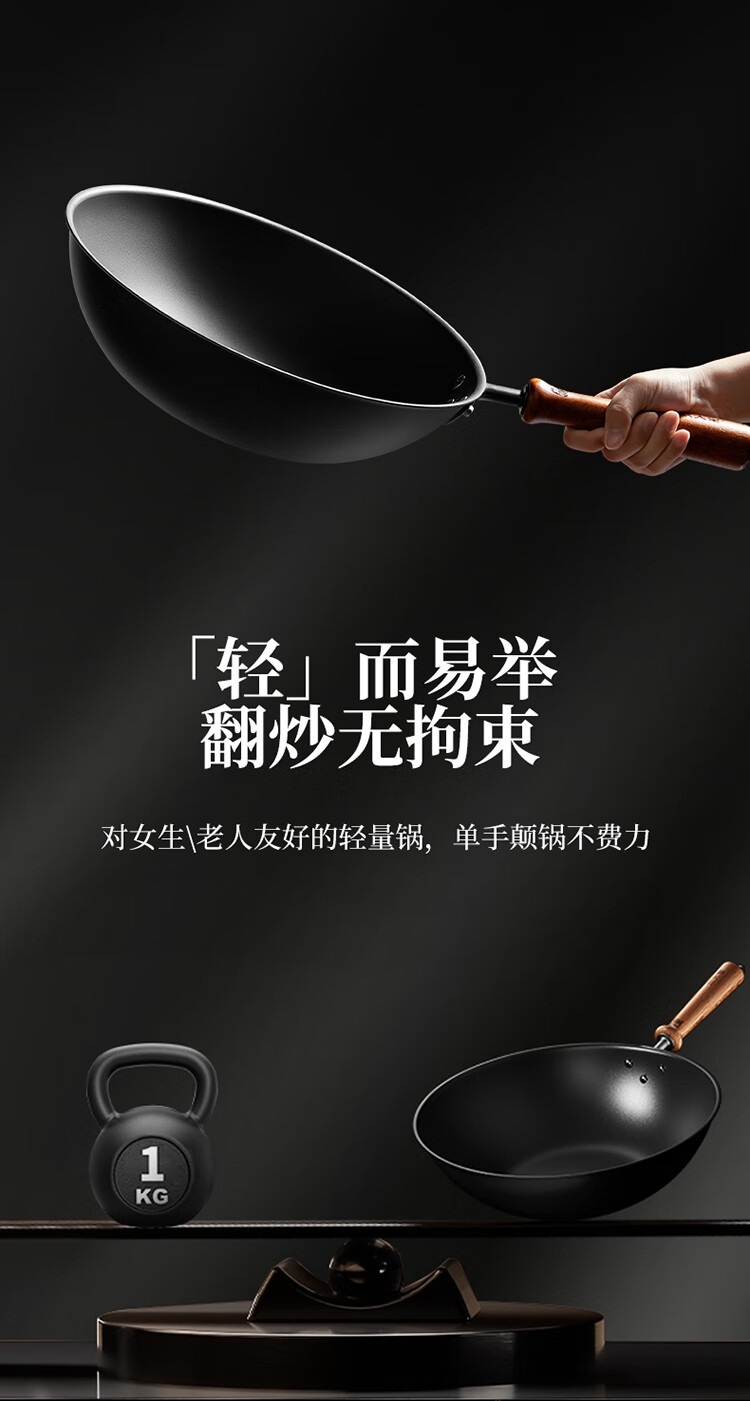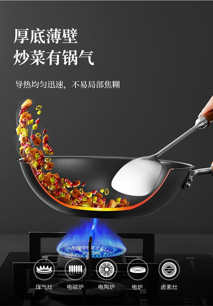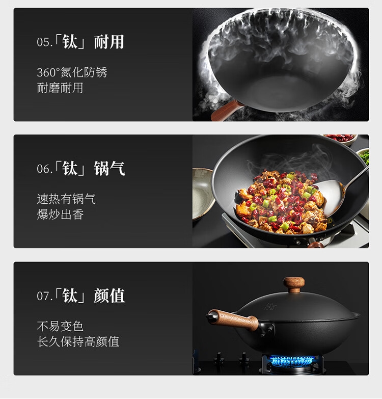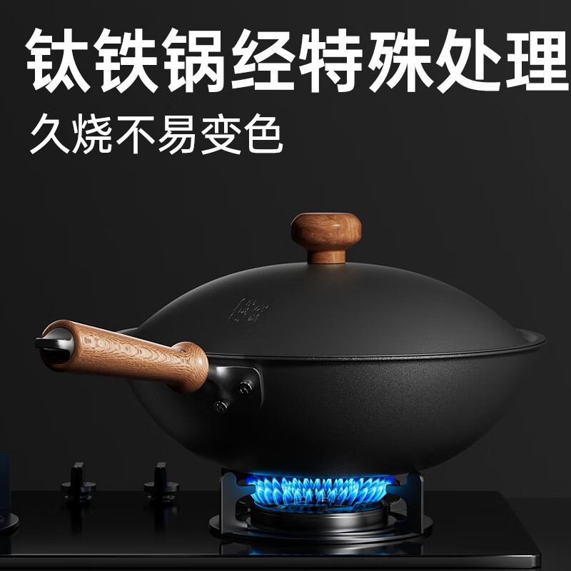 无氟涂层钛铁锅;不易粘锅 内壁耐磨;免开锅 不用养