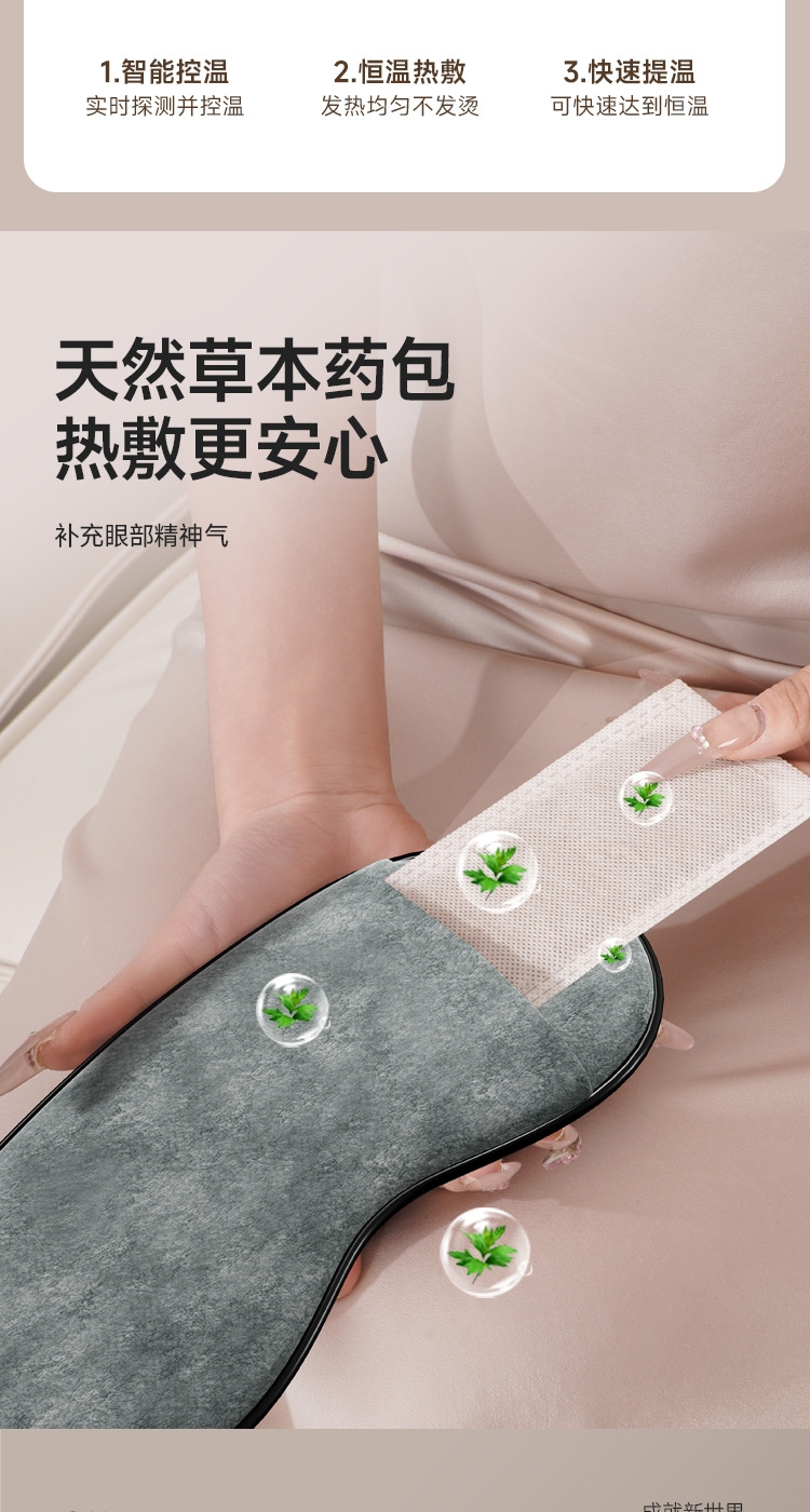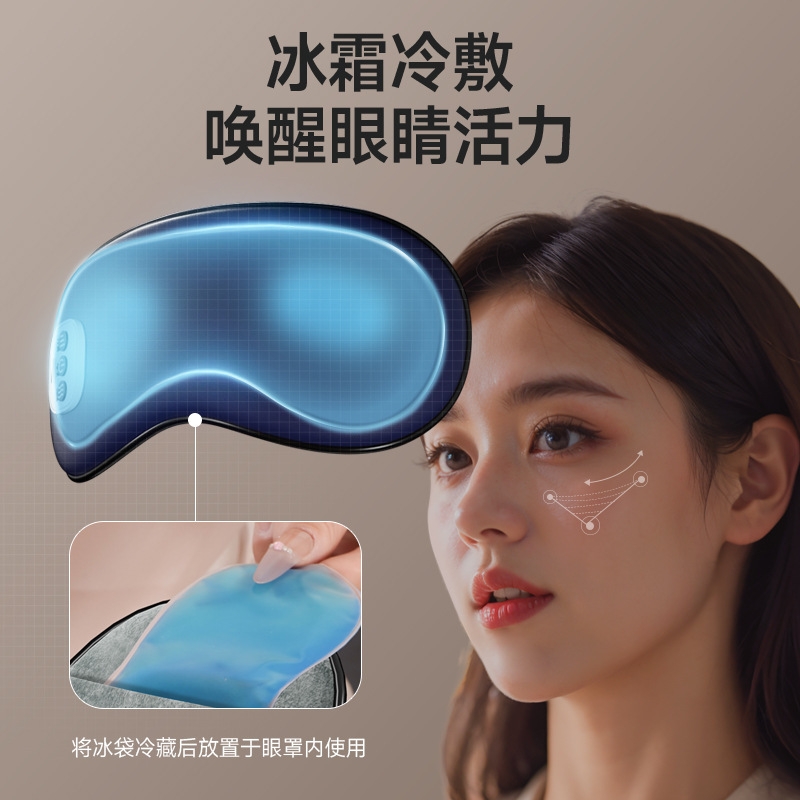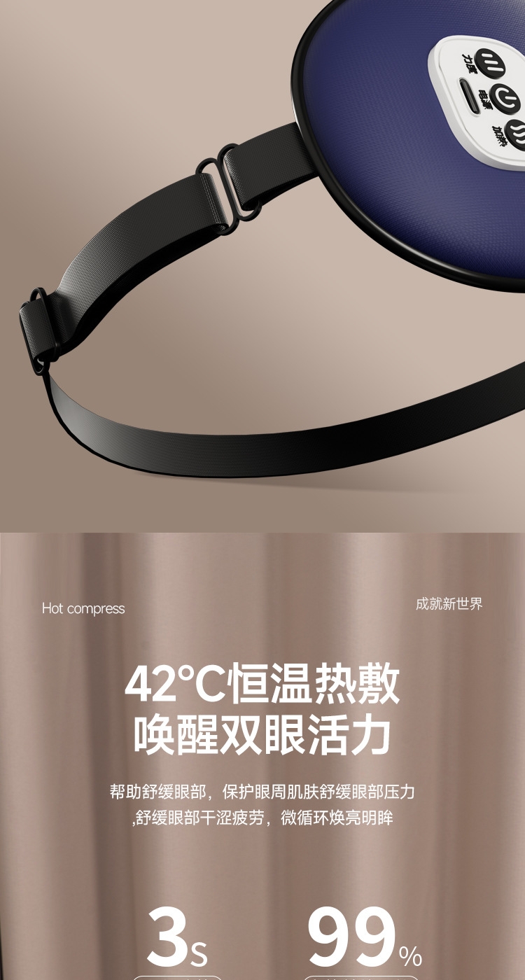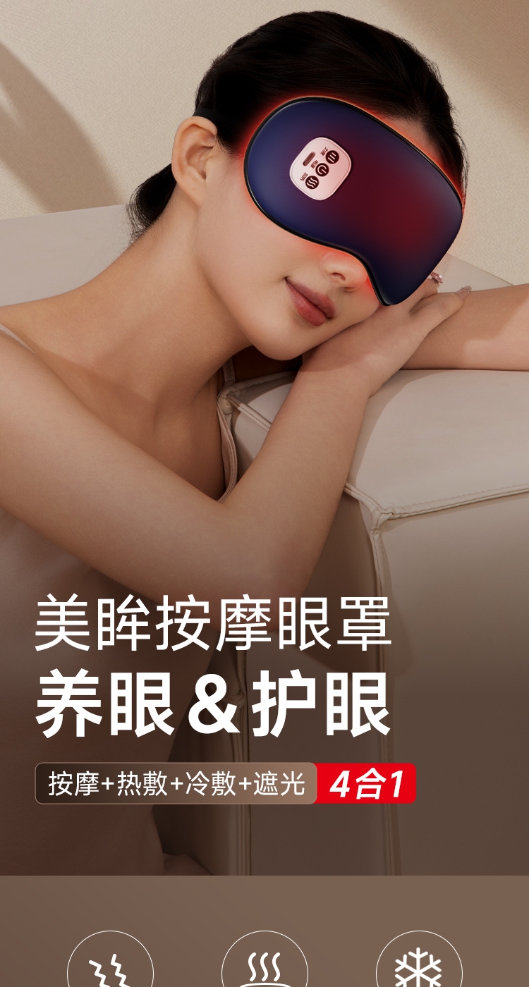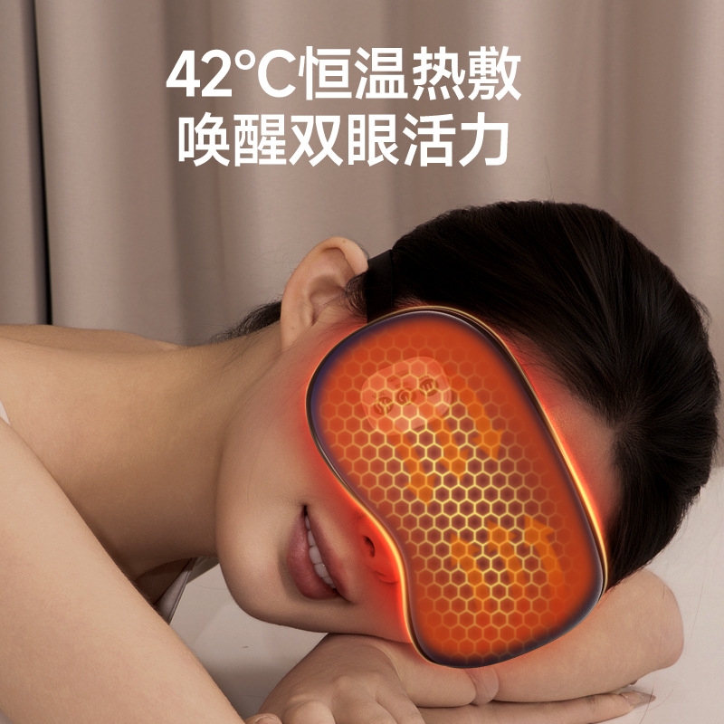 小巧精致可180°折叠,方便携带;遮光休息,振动按摩放松,;可热敷,冷敷,放松眼部