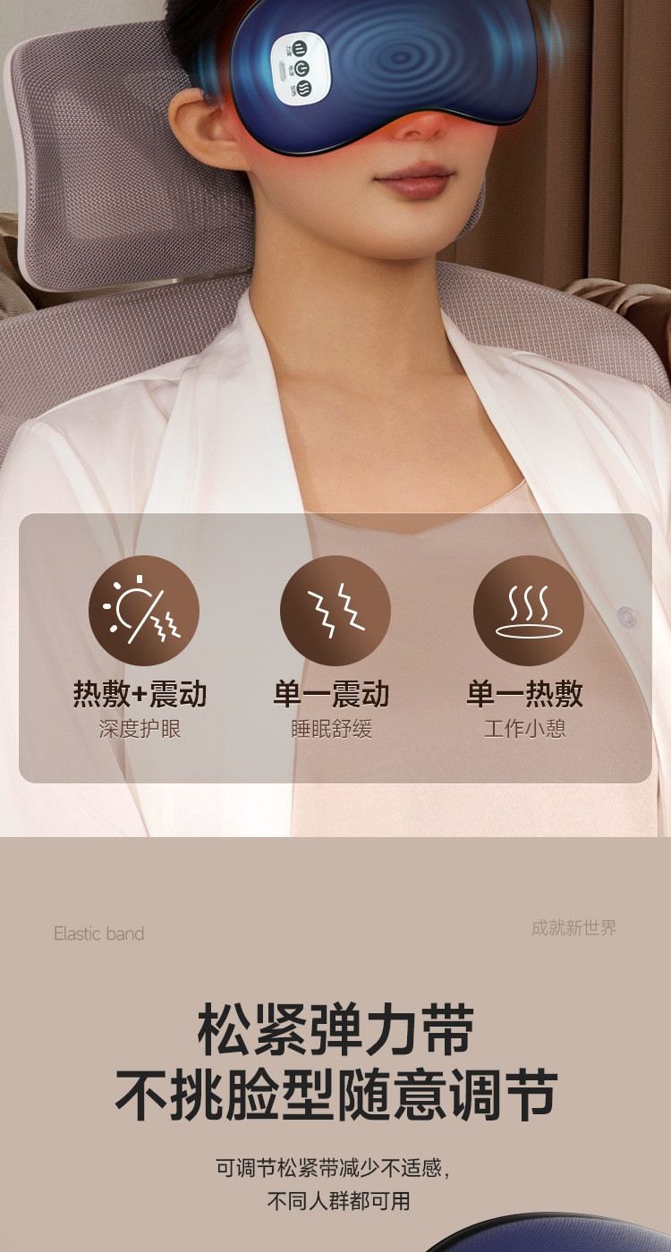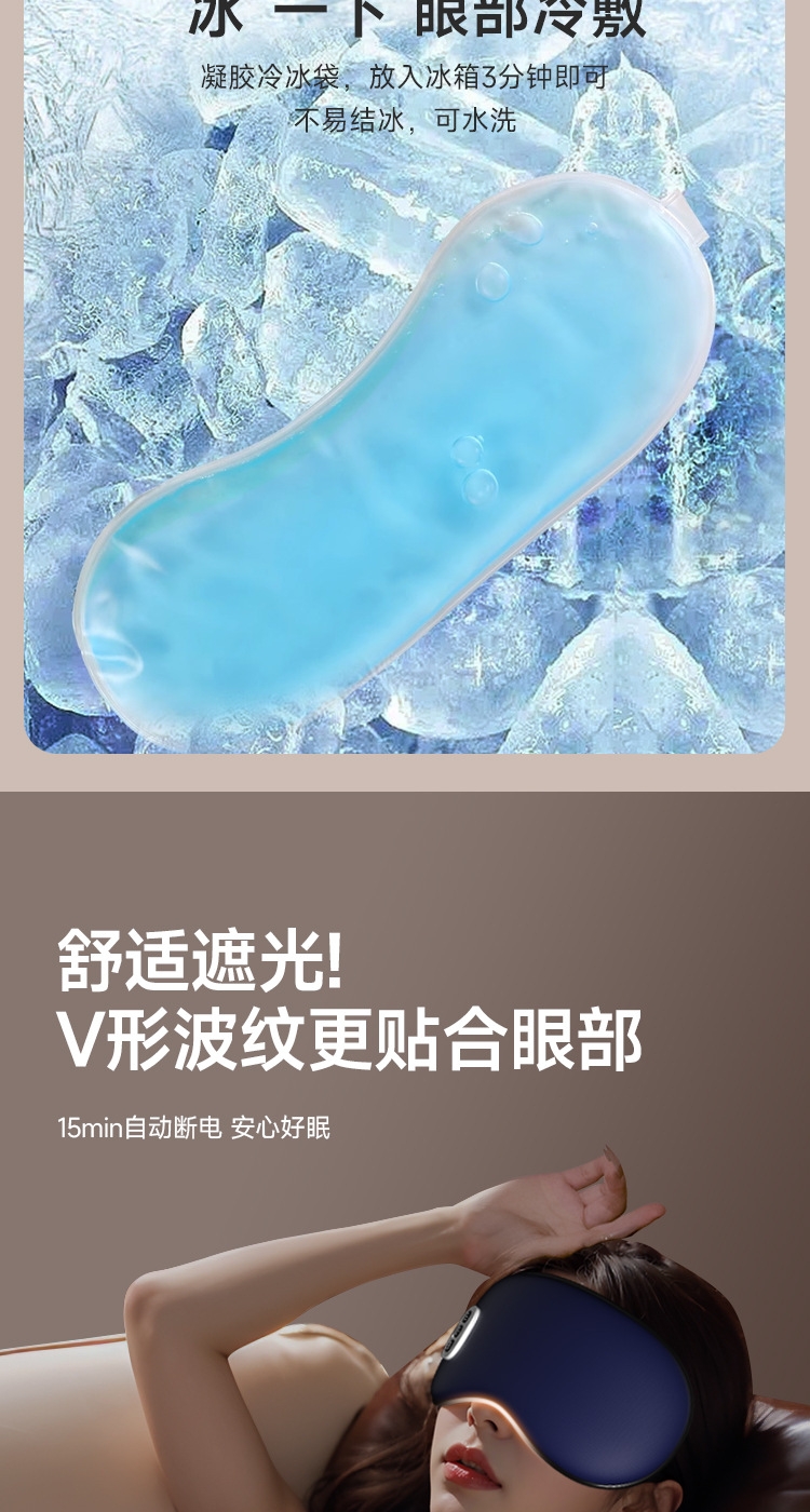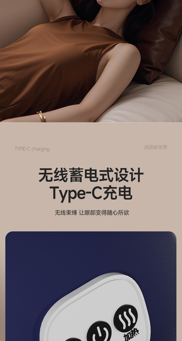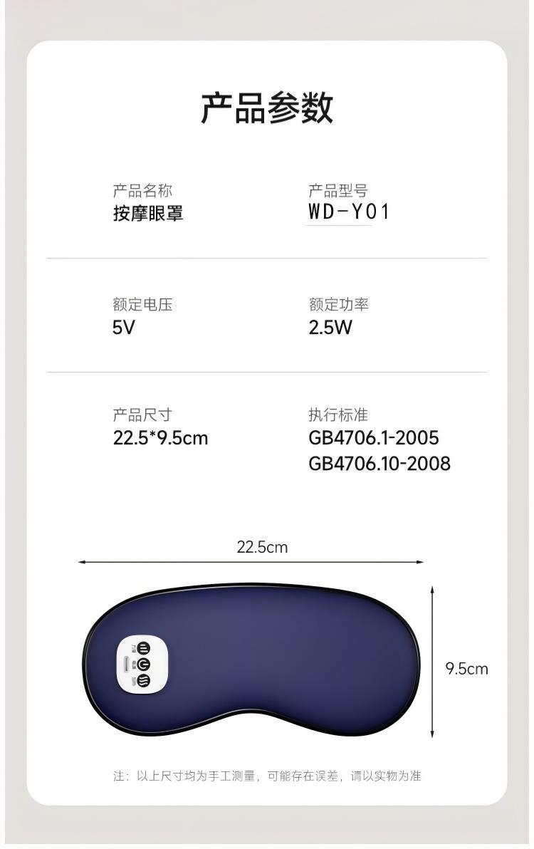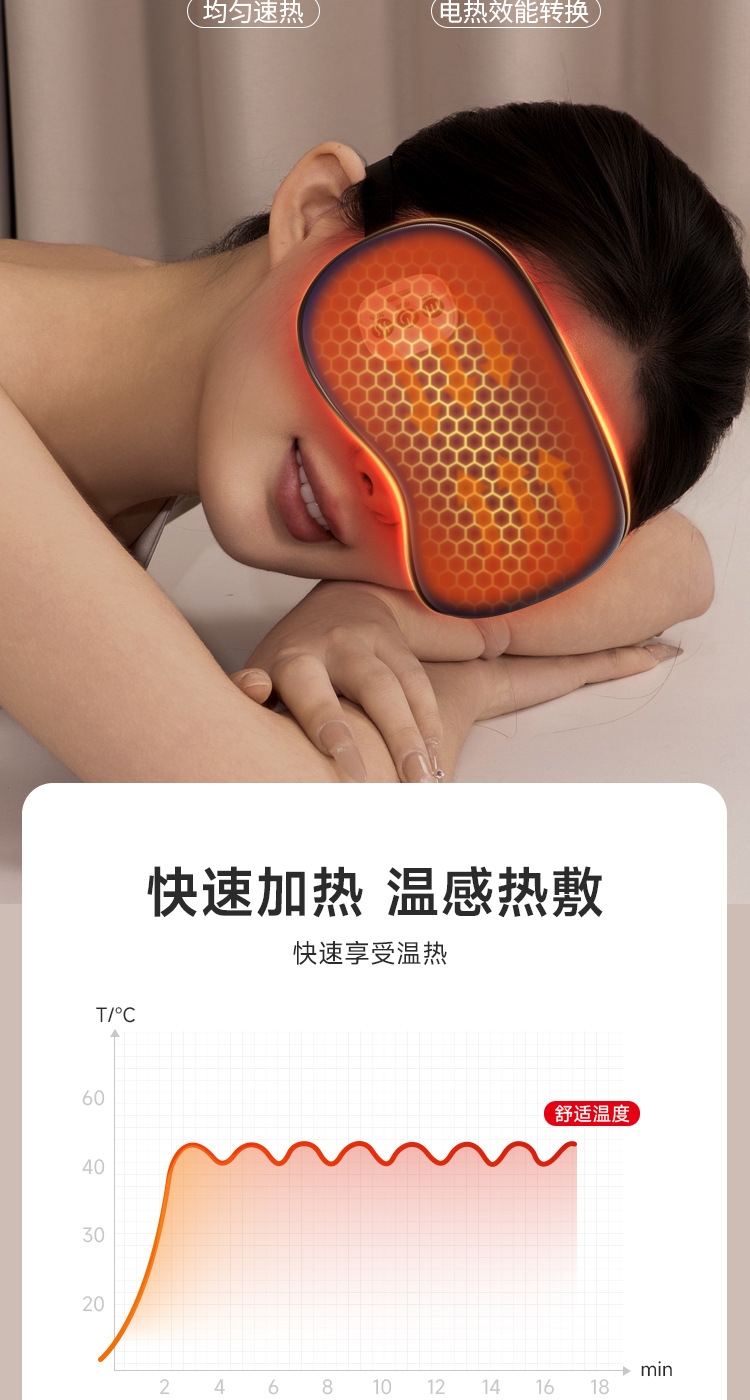 小巧精致可180°折叠,方便携带;遮光休息,振动按摩放松,;可热敷,冷敷,放松眼部
