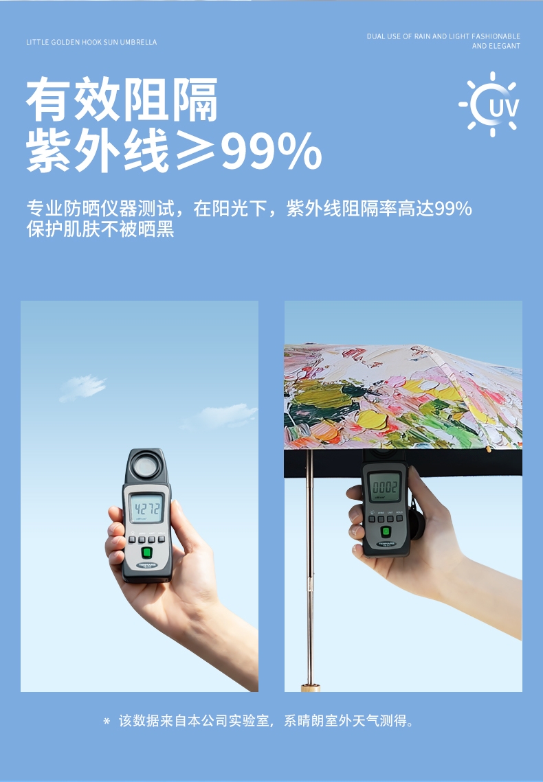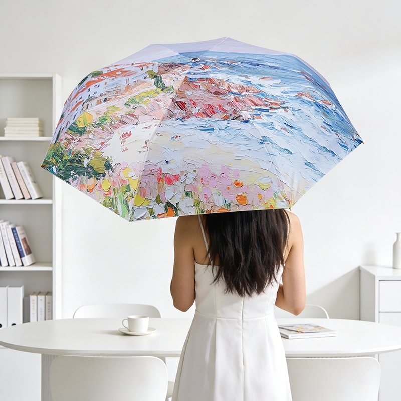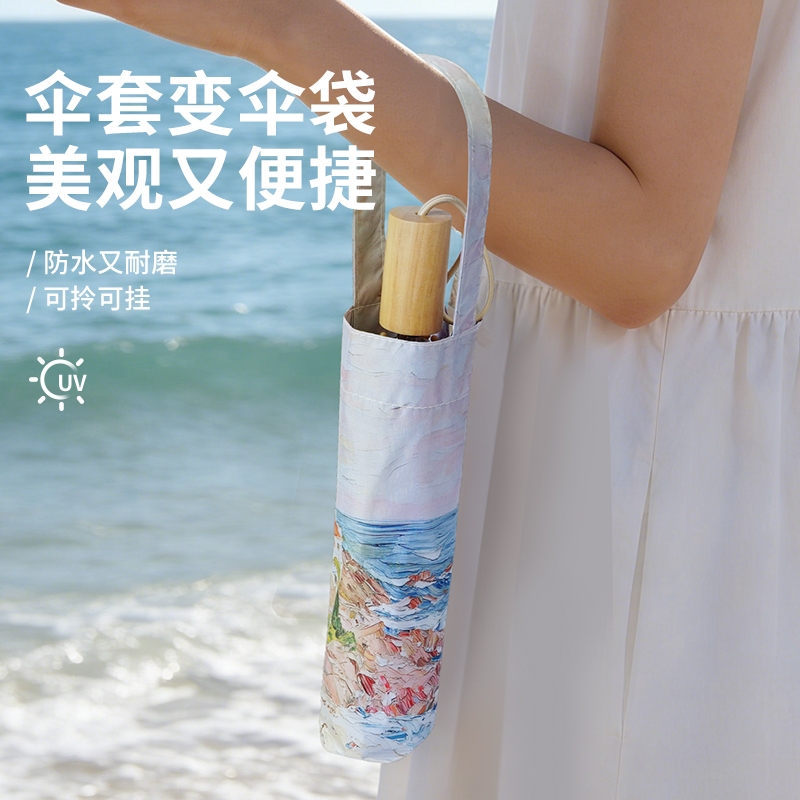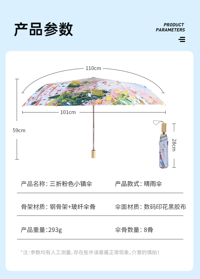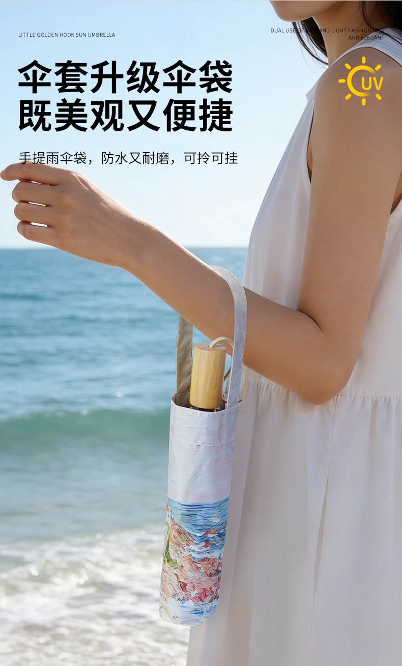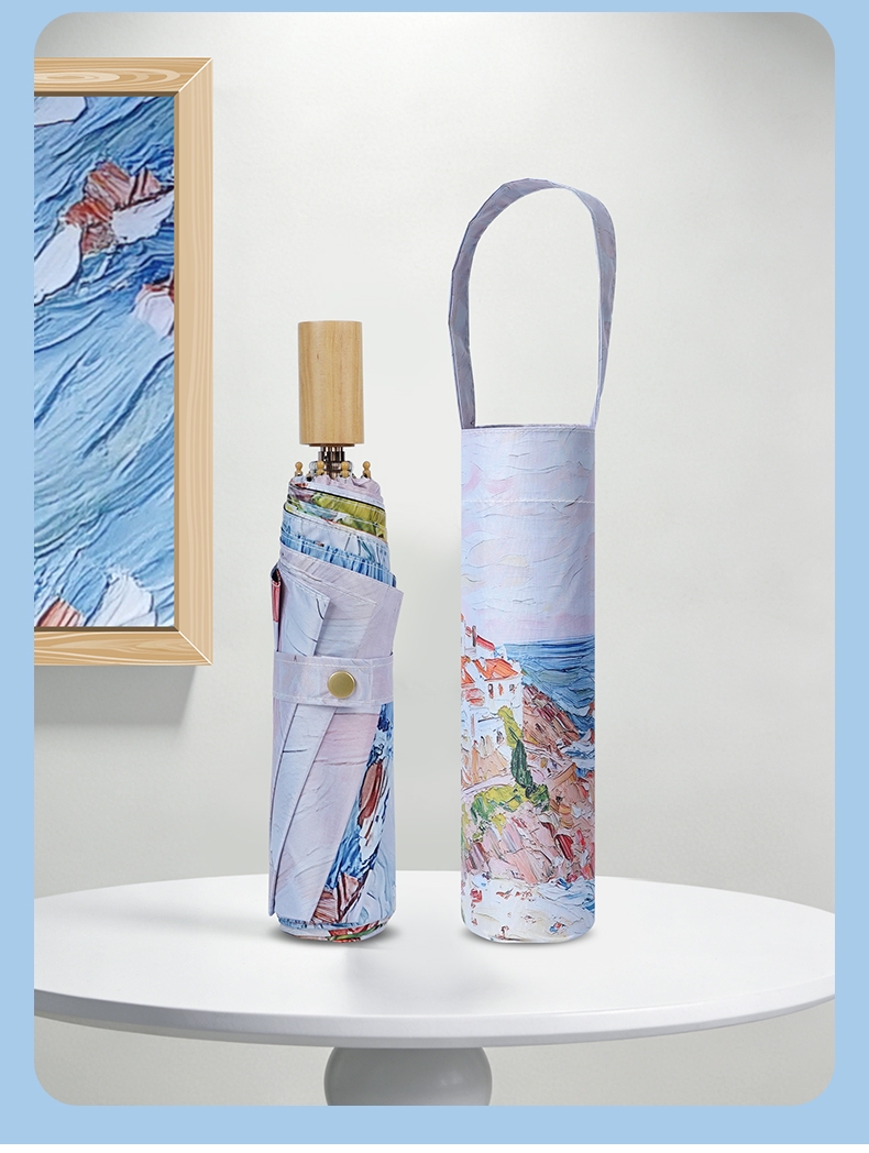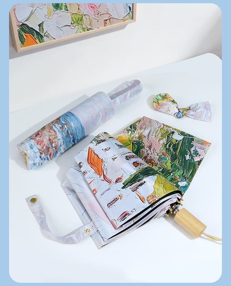 三折8骨香槟金伞架;210T高密度科技防晒黑胶涂层,高效隔热防晒防紫外;浪漫INS油画伞