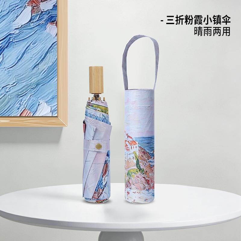 红叶 三折粉霞小镇伞DF2905
