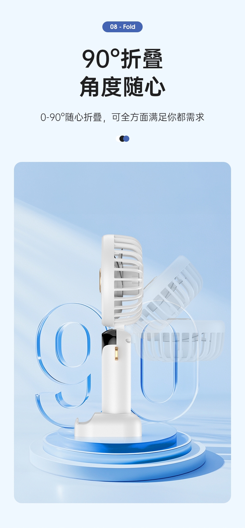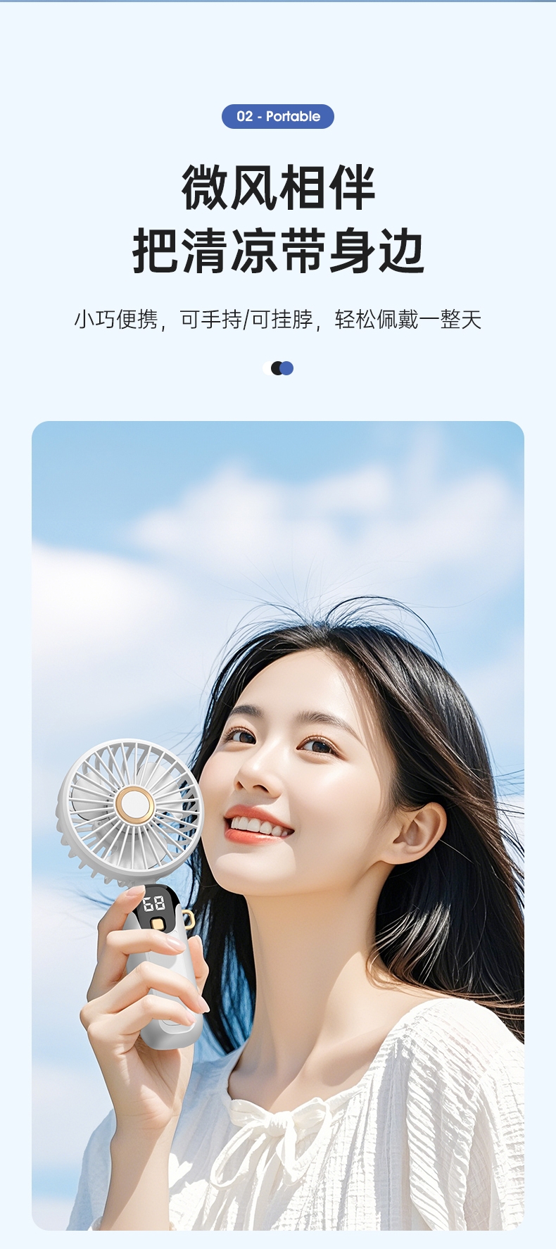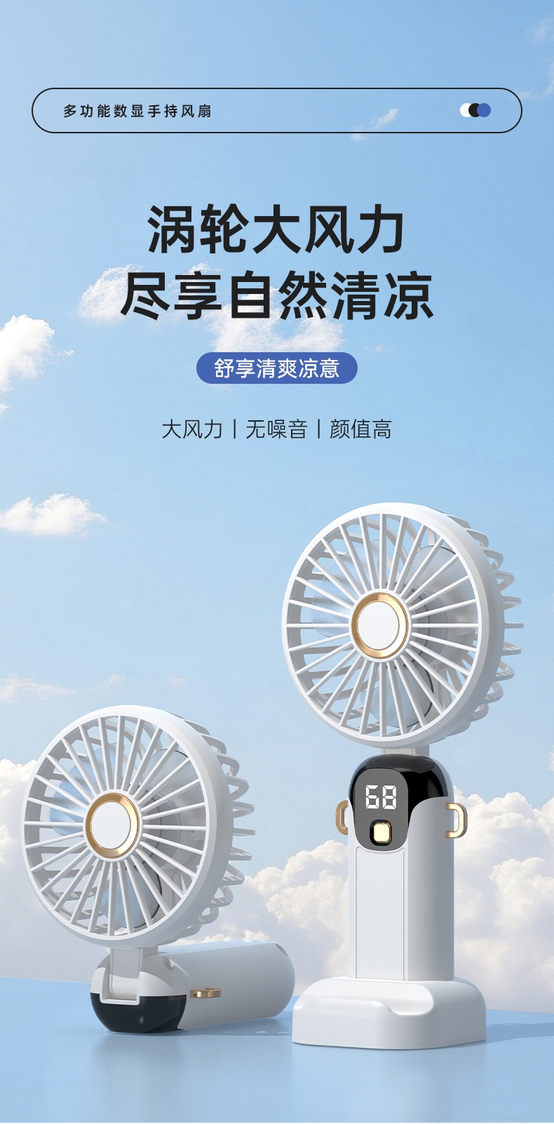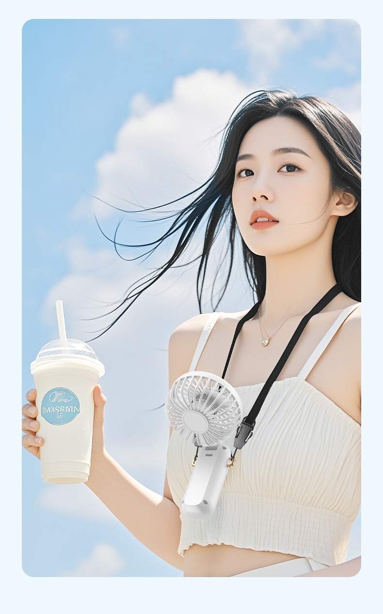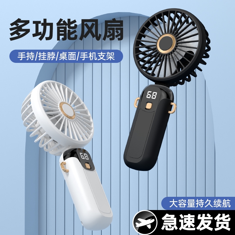 可桌面手持挂脖多功能;数显五档大风力;小巧便携轻音降噪