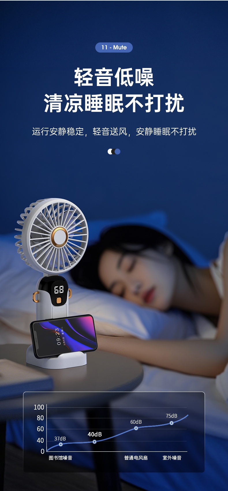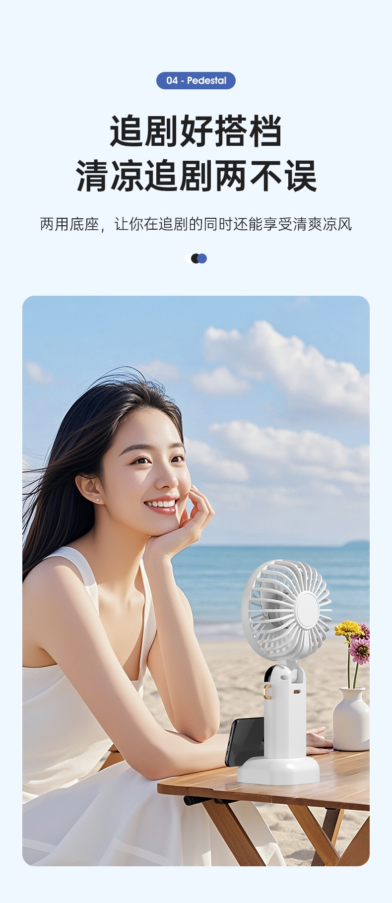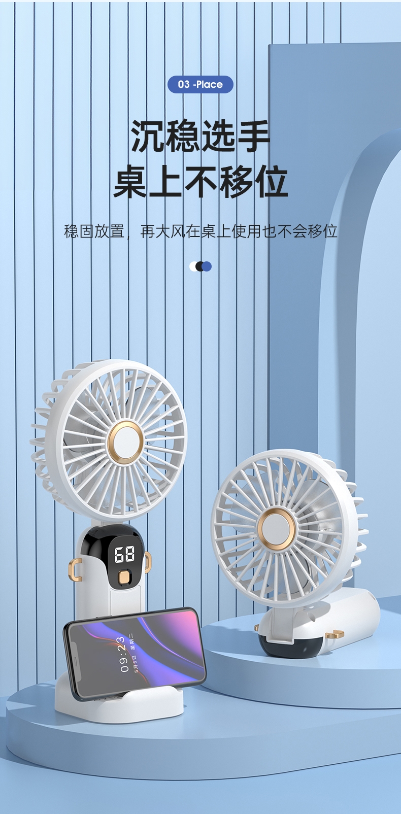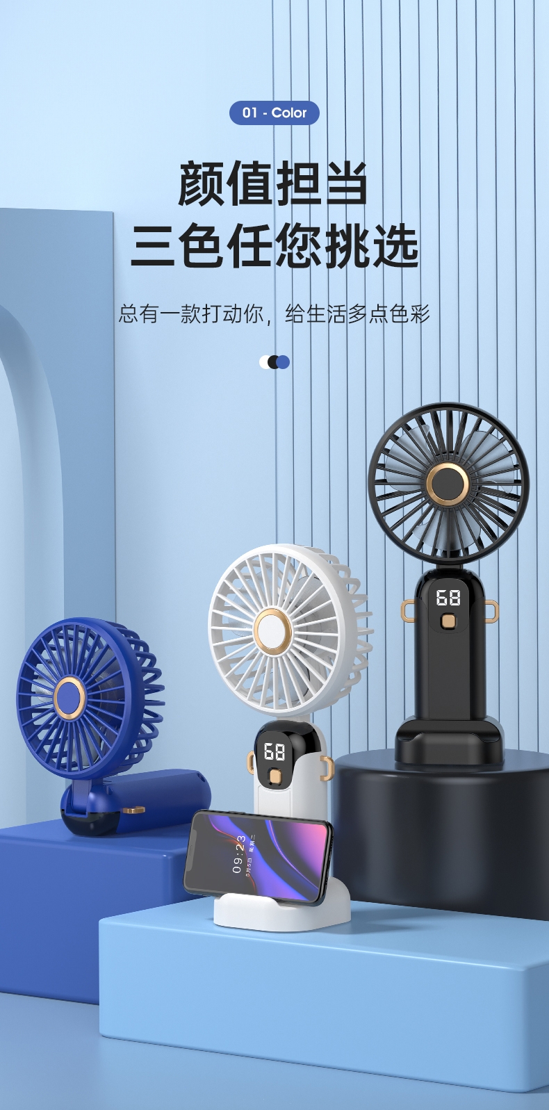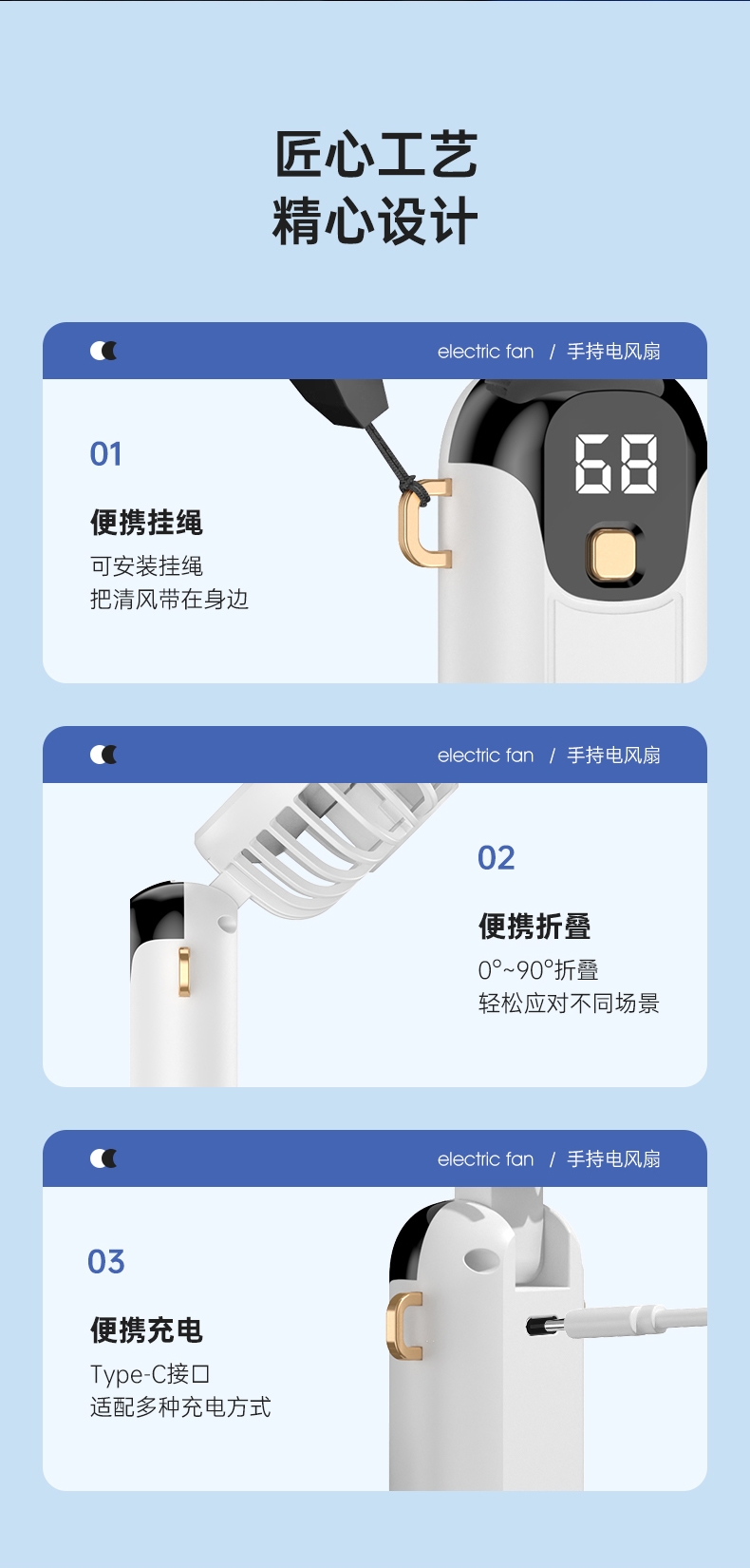 可桌面手持挂脖多功能;数显五档大风力;小巧便携轻音降噪
