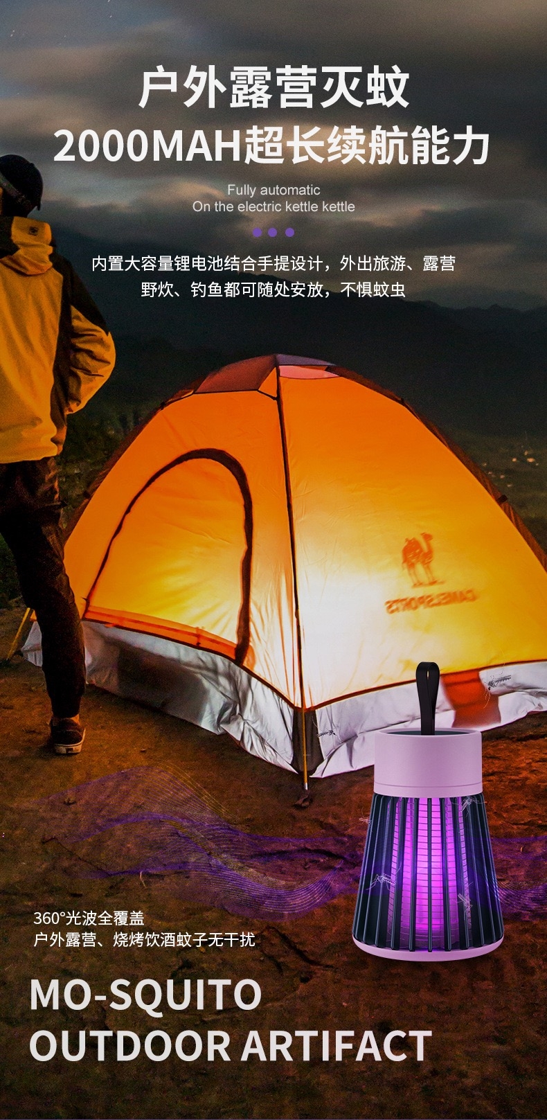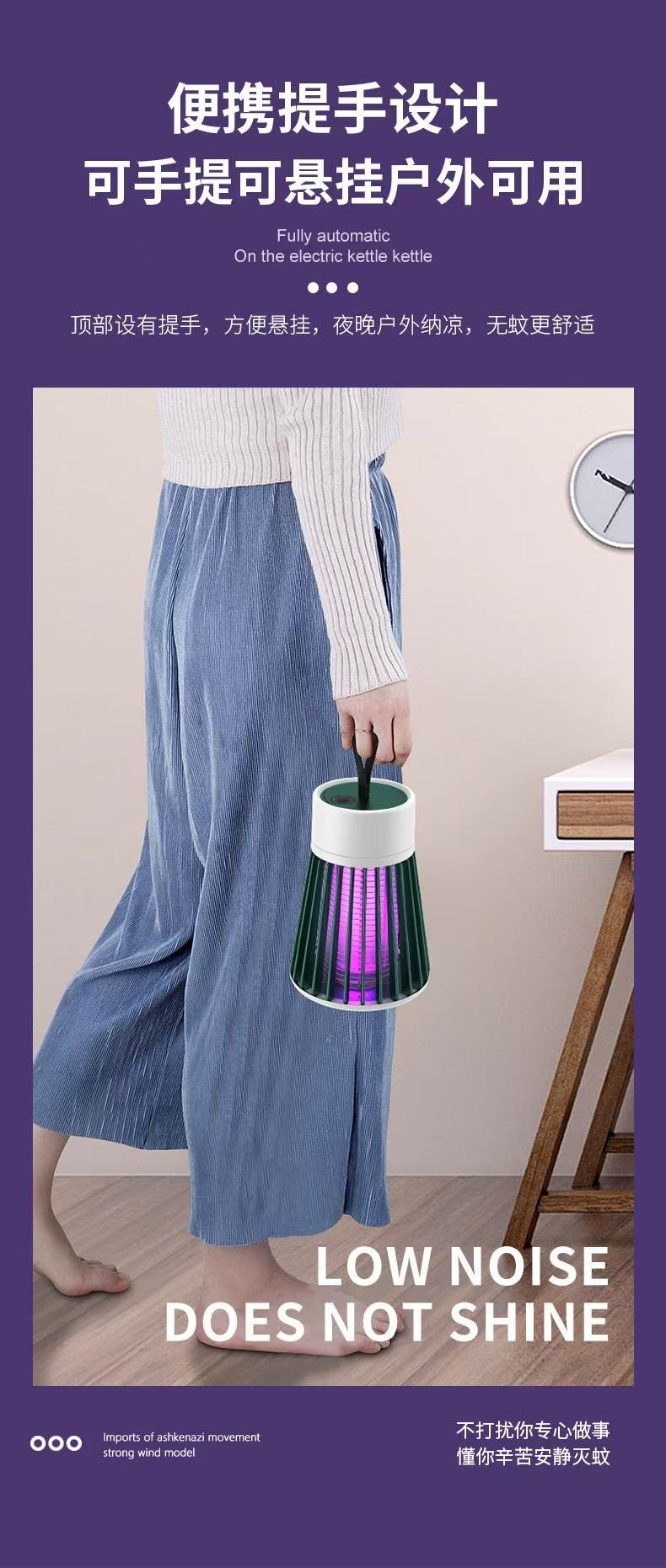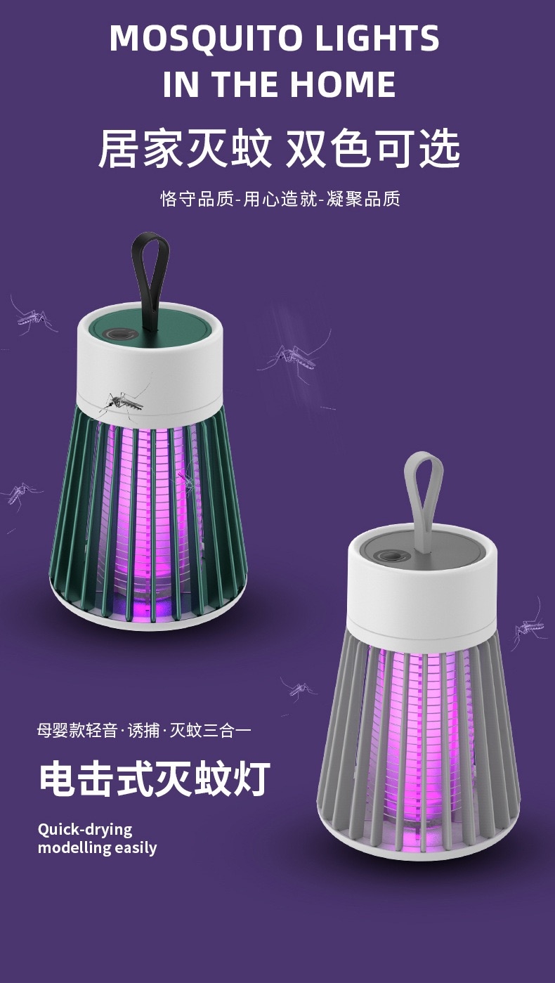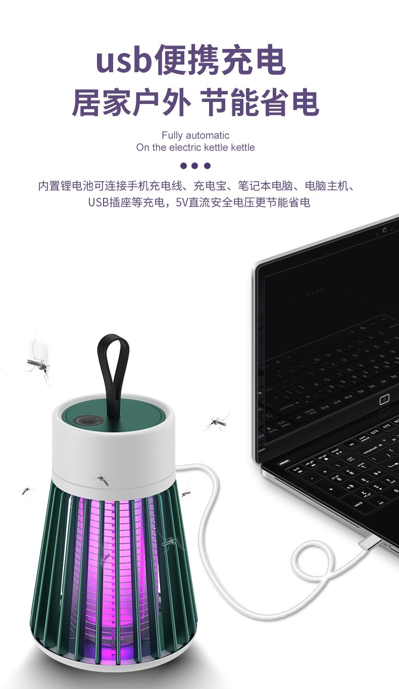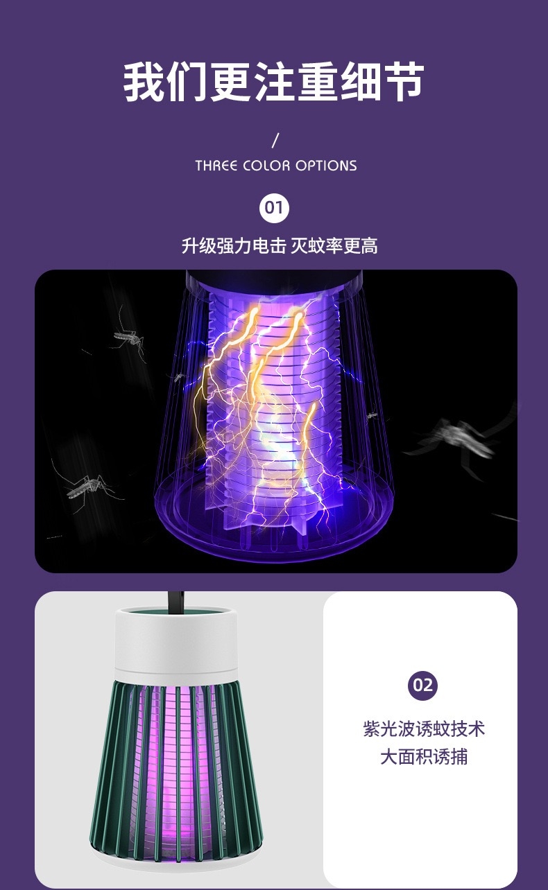 紫光波高效诱蚊电击灭蚊蝇;USB充电低耗节能低噪灭蚊;充电款带小夜灯功能