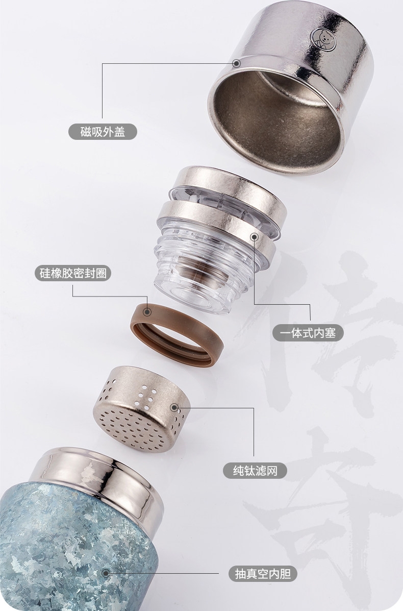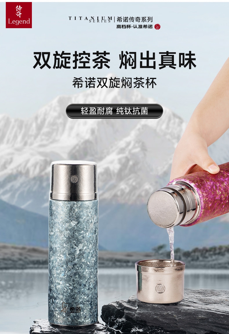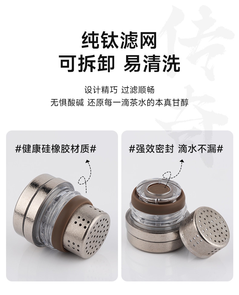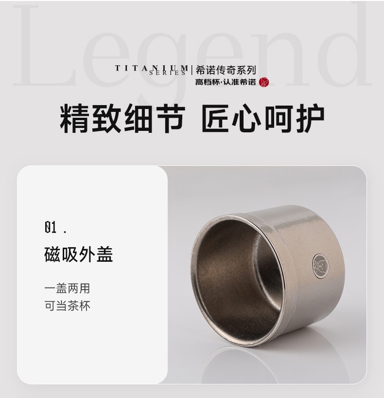希诺纯钛双旋焖茶杯 磁吸外盖 纯钛材质 分体式滤网;双旋控茶 焖出真味;轻盈耐腐 纯钛抗菌