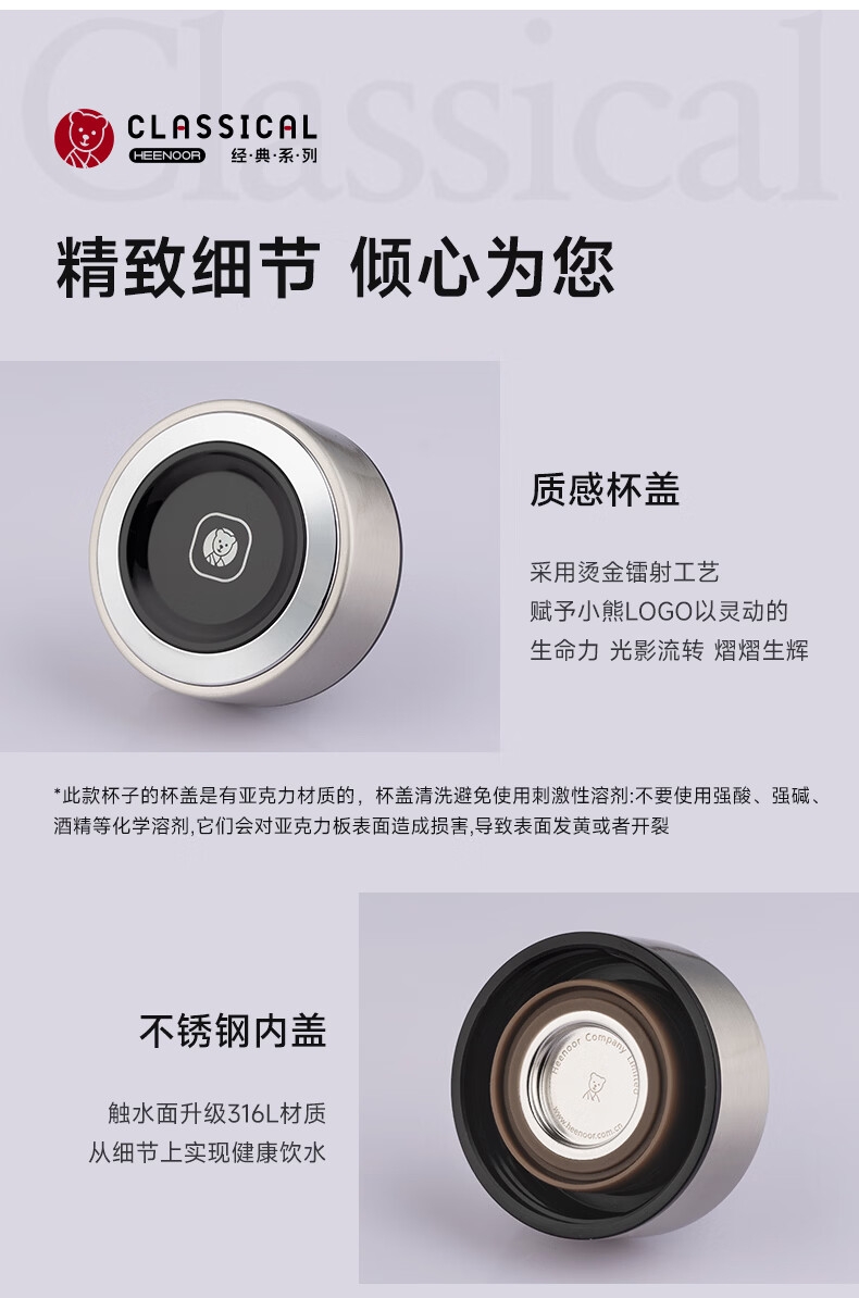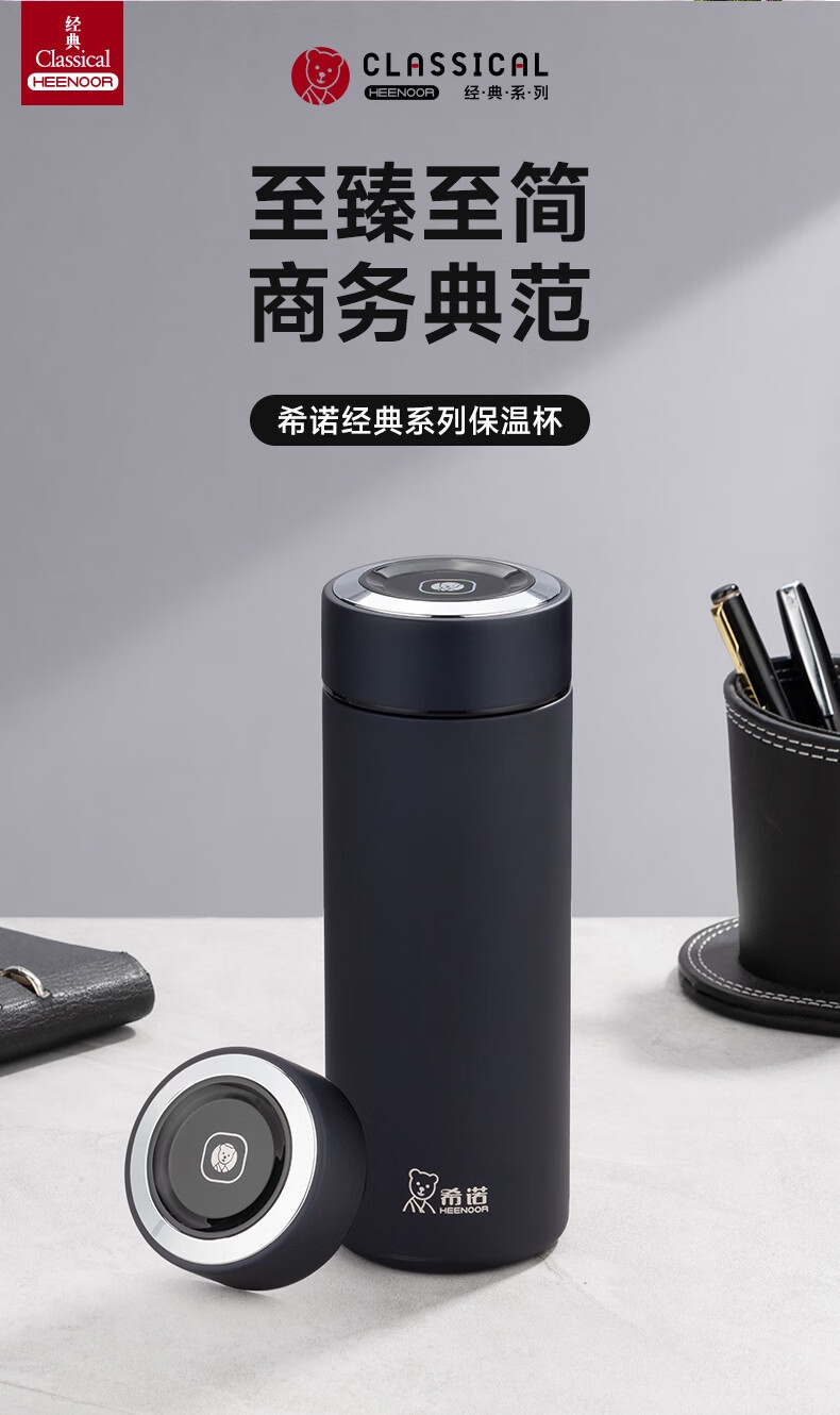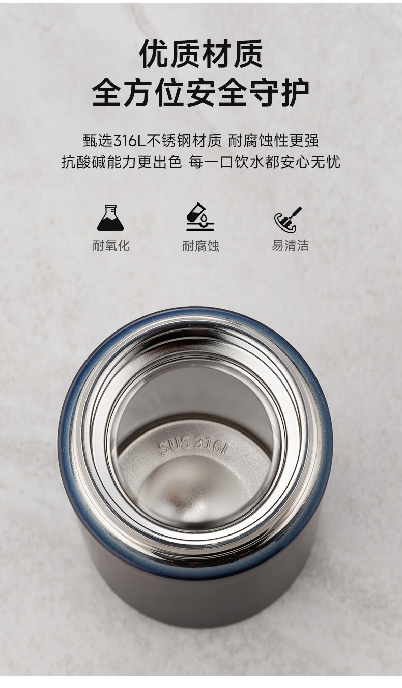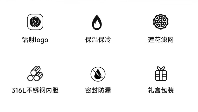 至臻至简 商务典范;316L不锈钢内胆 镭射LOGO 密封防漏;两种漆面 适配不同偏好