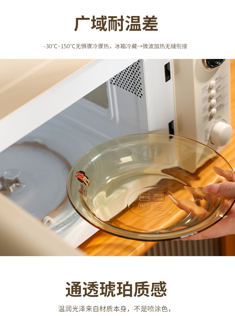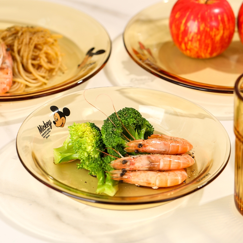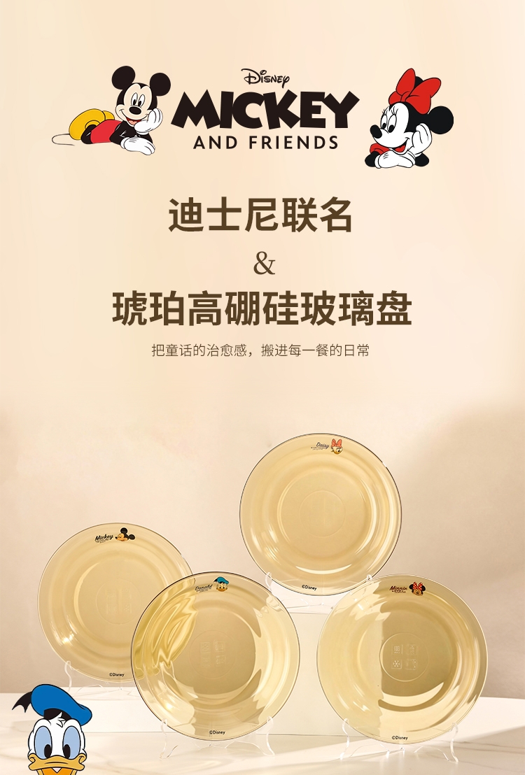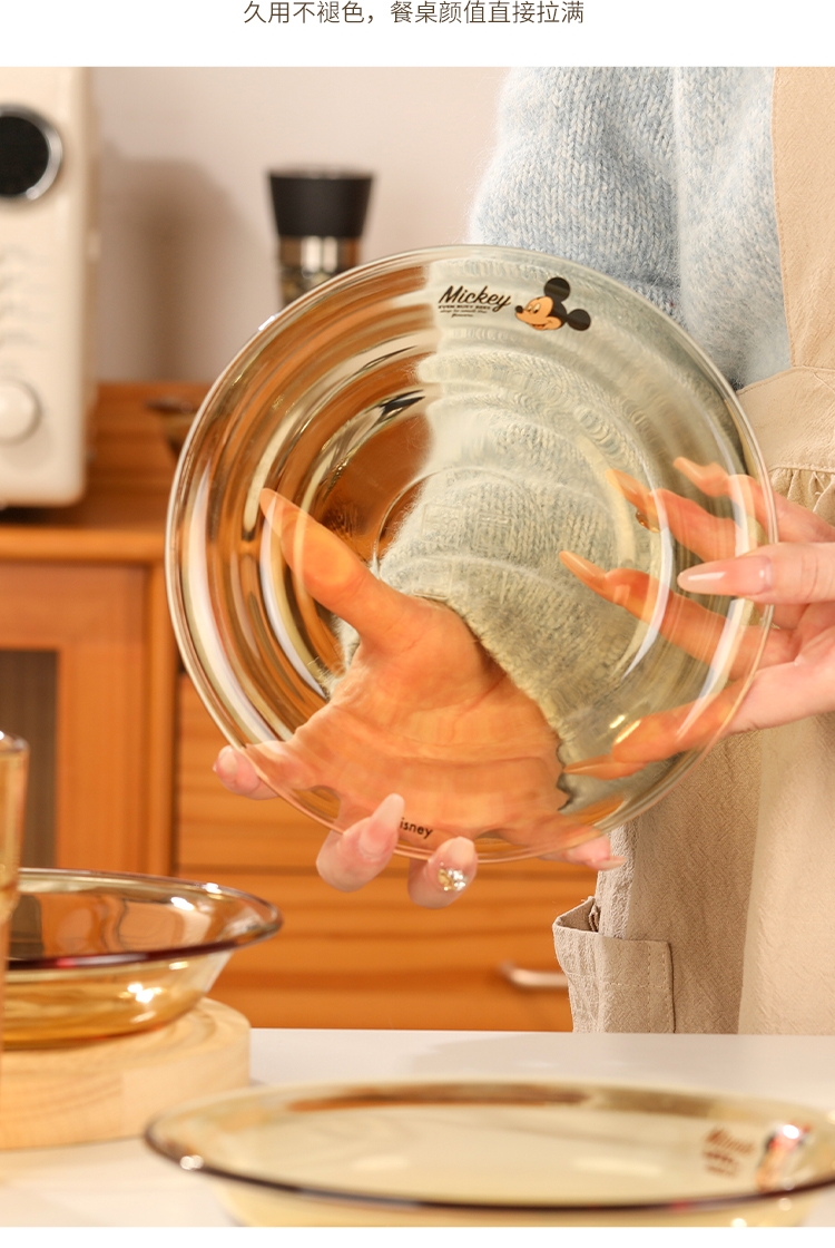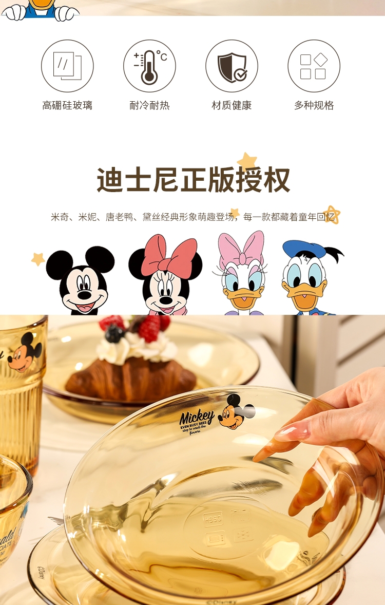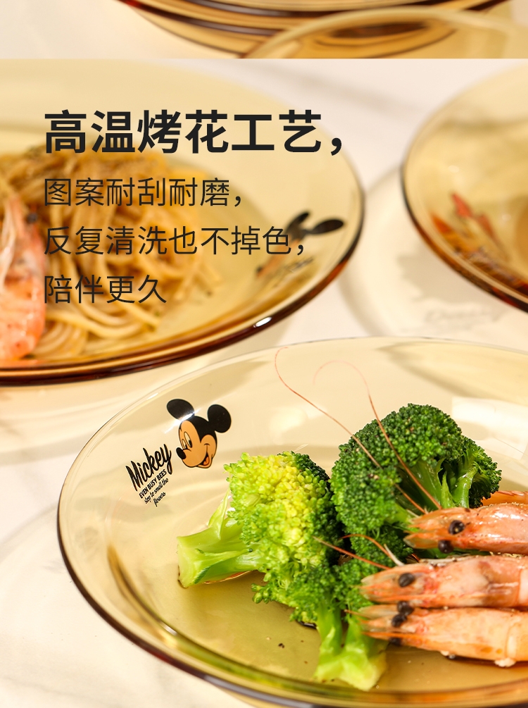 迪士尼正品高硼硅玻璃餐盘;康宁品质工艺;琥珀本色餐具久用不掉色