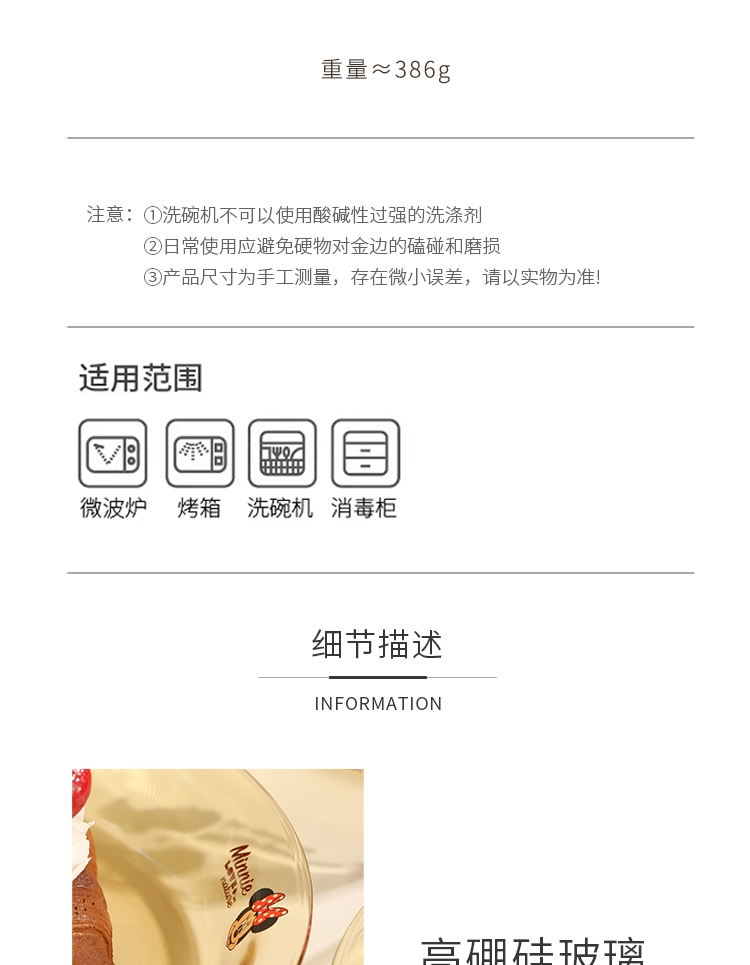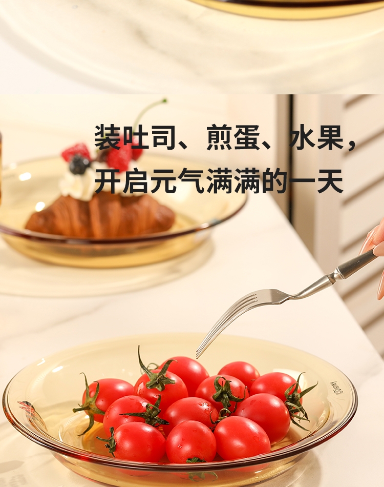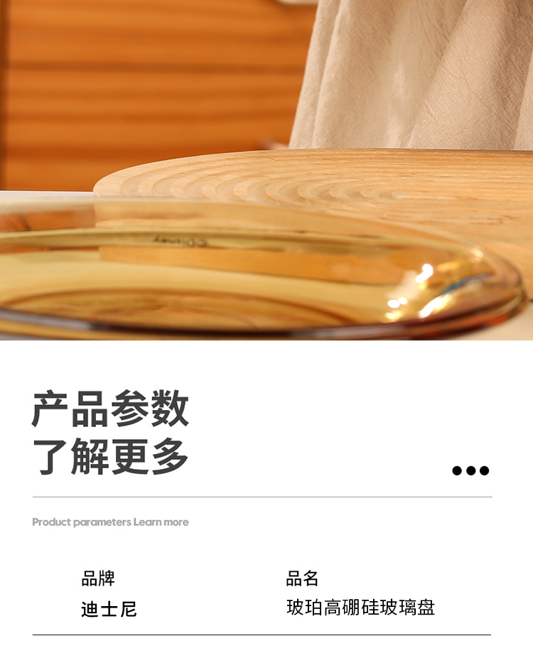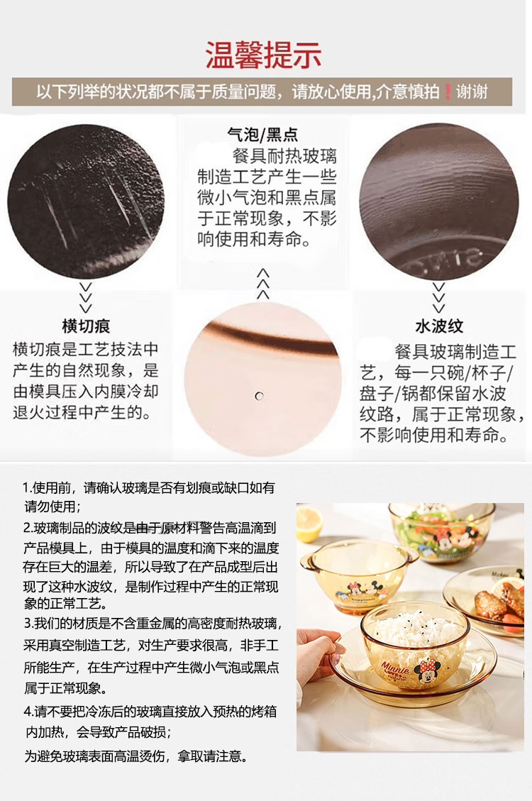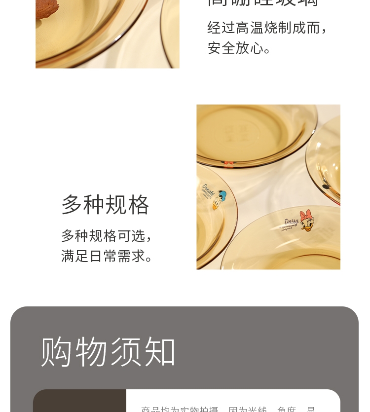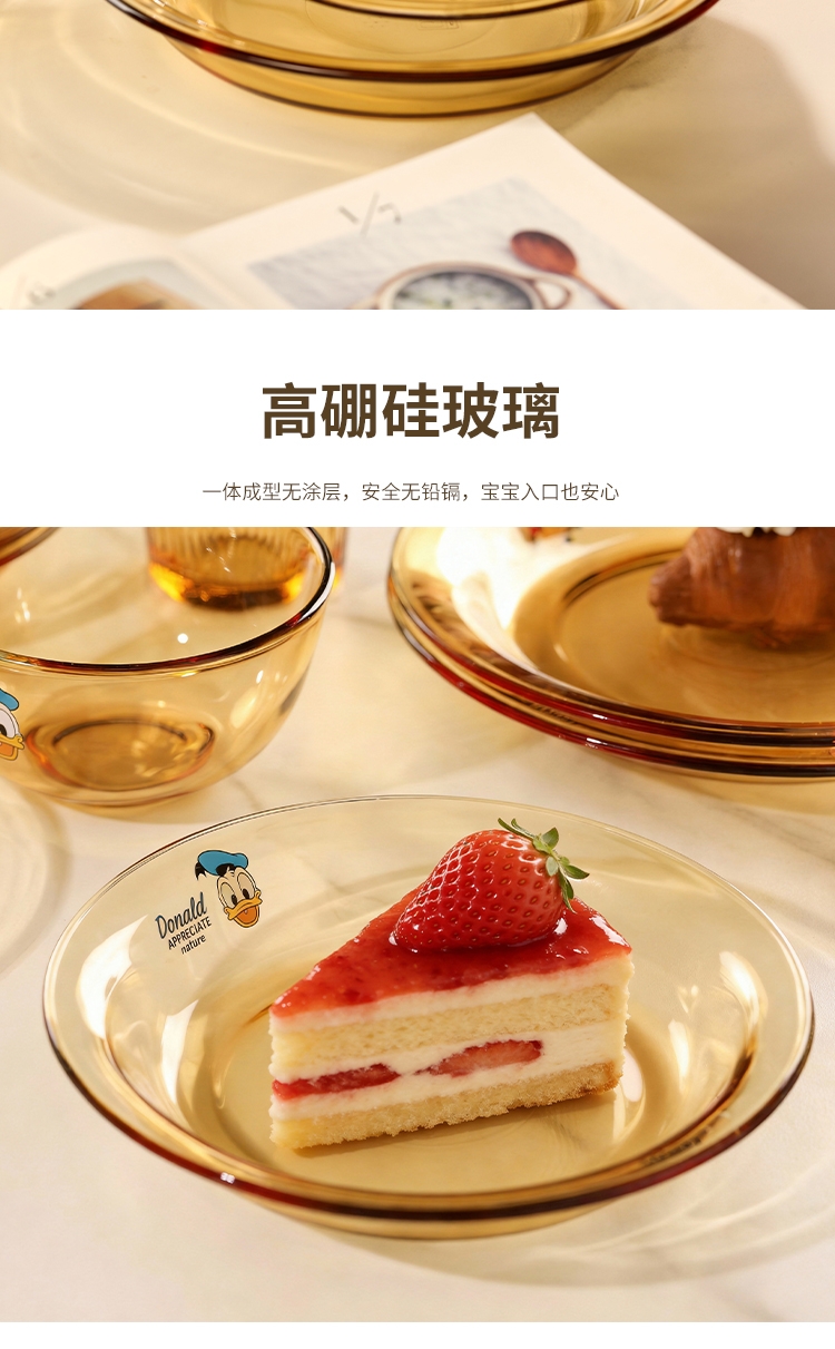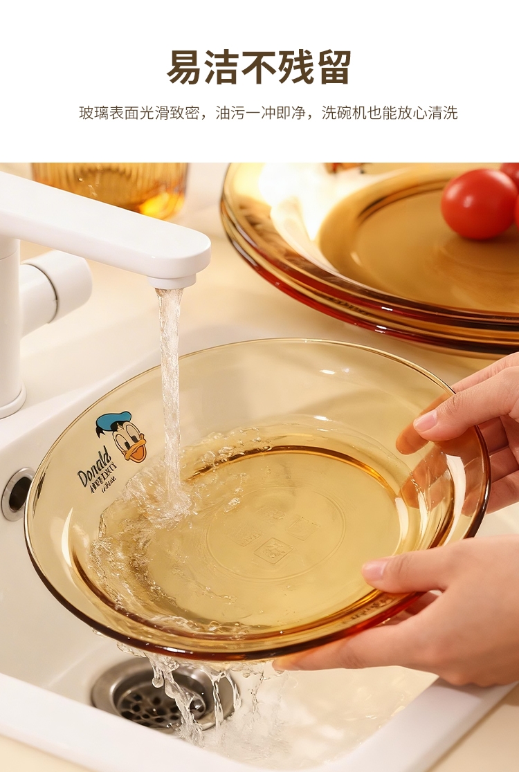 迪士尼正品高硼硅玻璃餐盘;康宁品质工艺;琥珀本色餐具久用不掉色