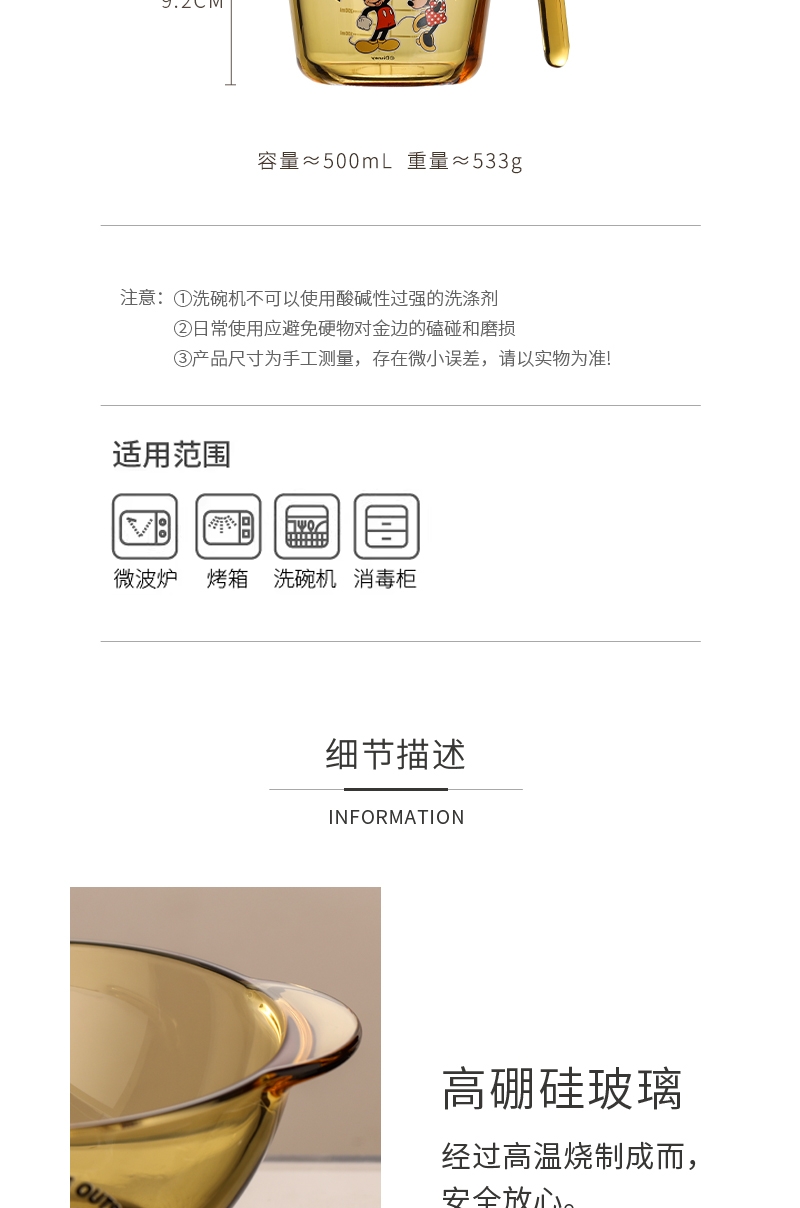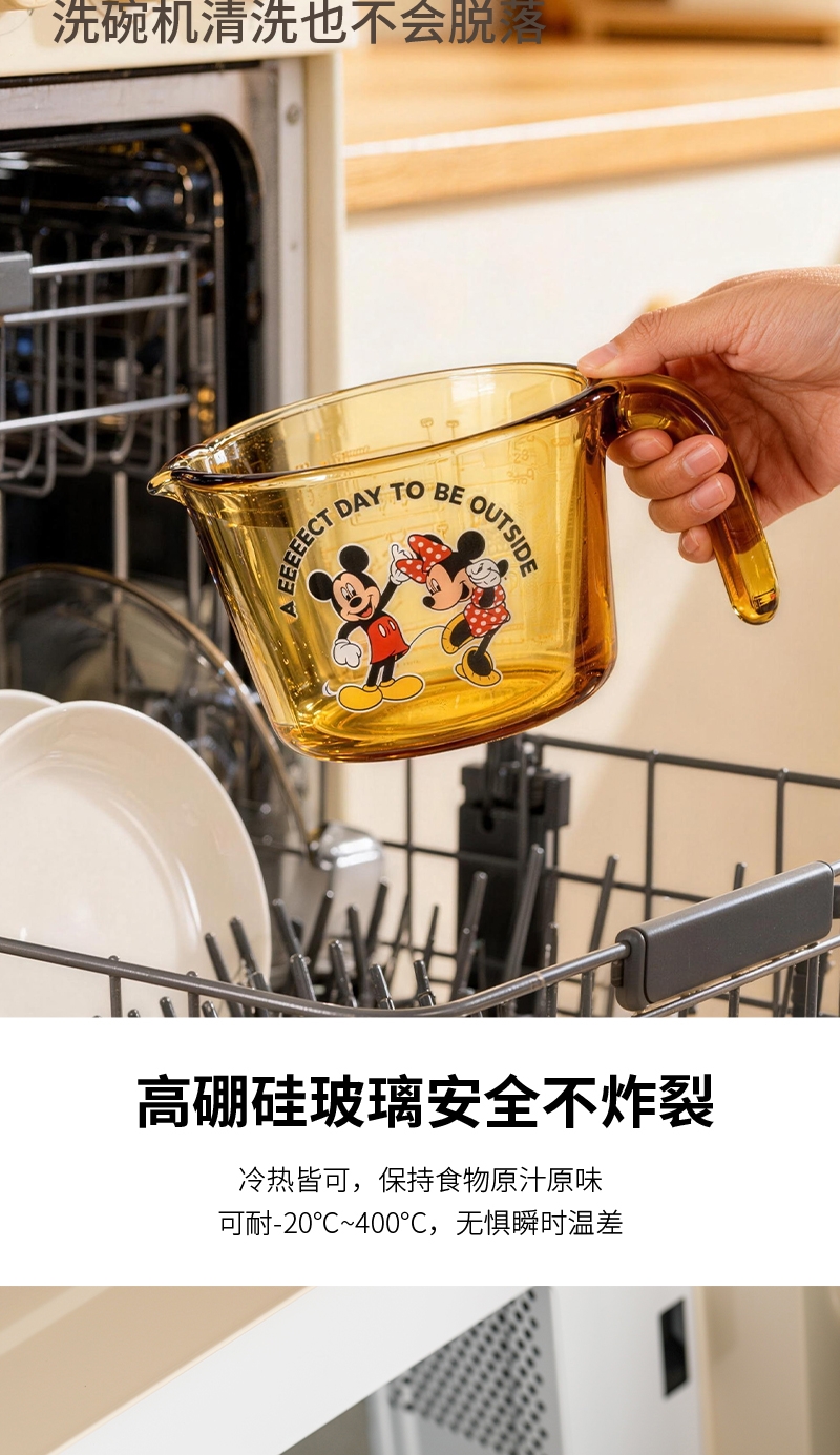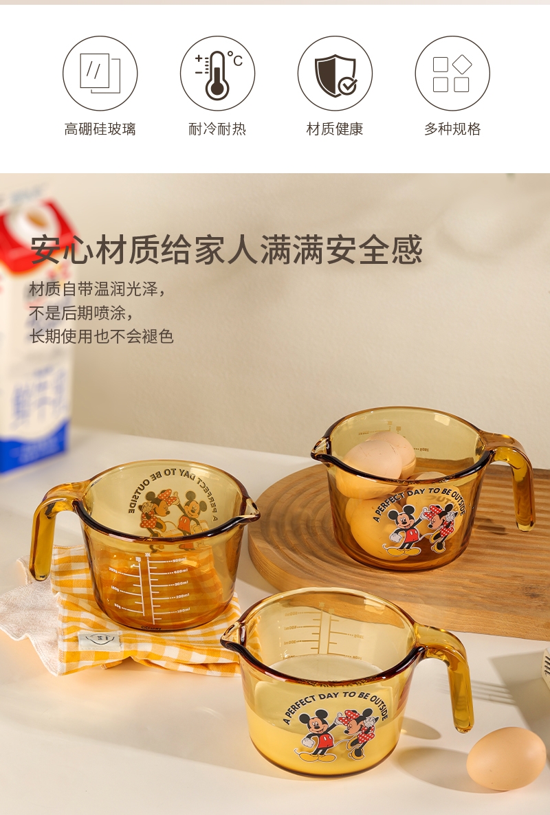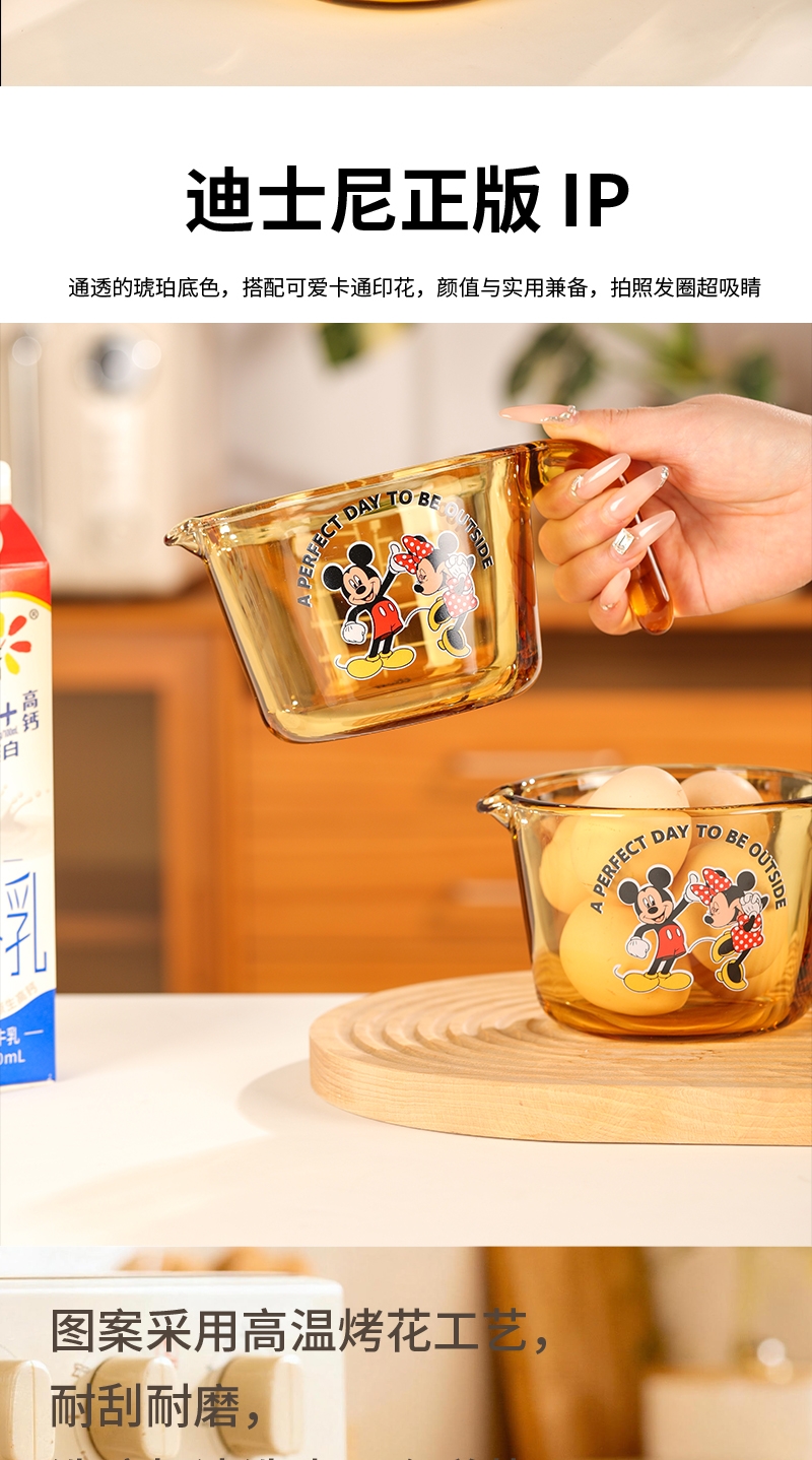 迪士尼正品耐高温玻璃量杯;康宁品质工艺;琥珀本色久用不掉色