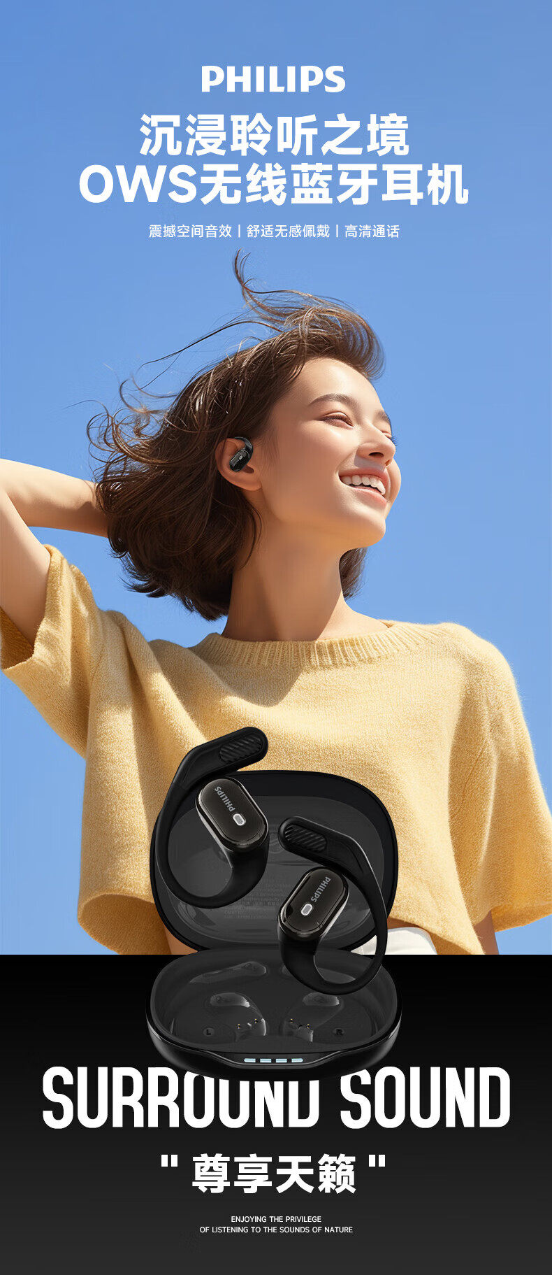 飞利浦 真无线挂耳式蓝牙耳机TAT3759