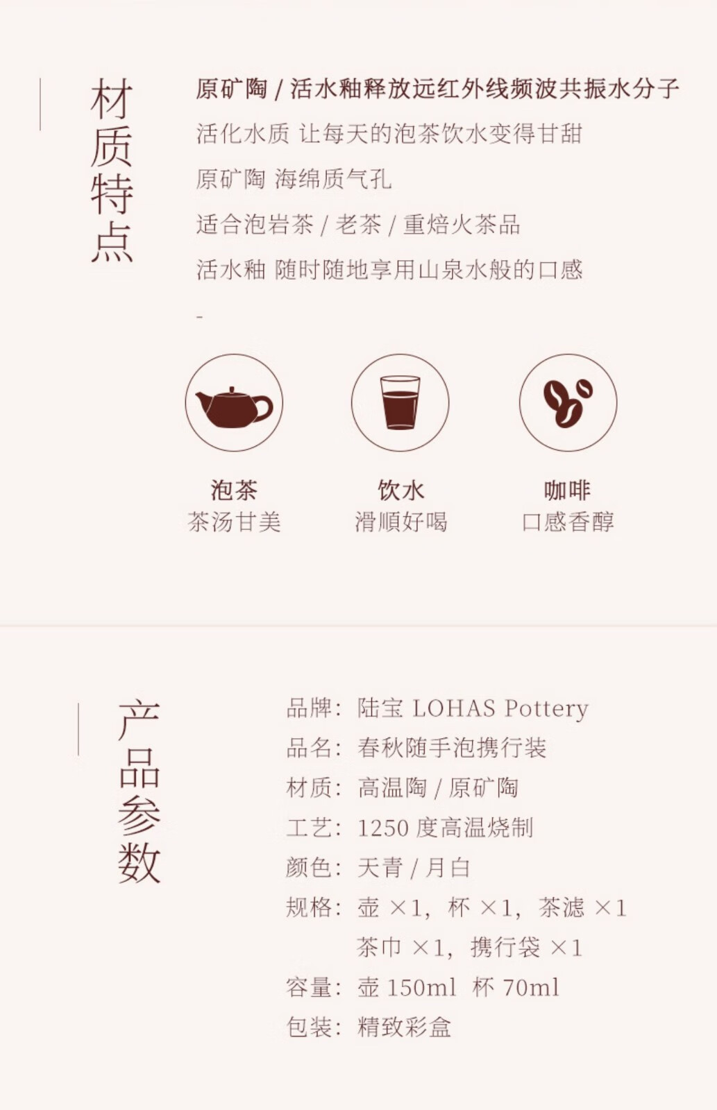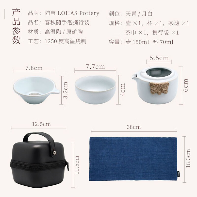 配 置:壶×1,杯×1,茶滤×1,茶巾×1,携行包×1