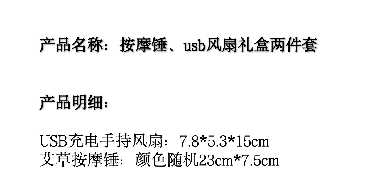 配置清单:按摩锤*1、usb风扇*1、手提袋*1
