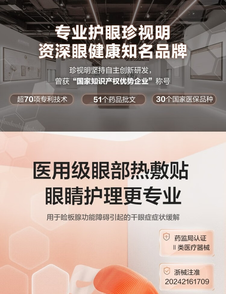 缓解眼部干涩;透气外膜由聚对苯二甲酸乙二醇酯制成;用于睑板腺功能障碍引起的干眼症症状缓解