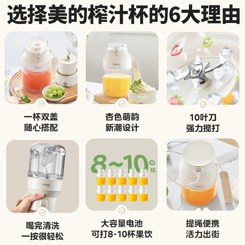 10叶刀强劲搅打;一杯双盖,随心搭配;杏色萌韵,新潮设计