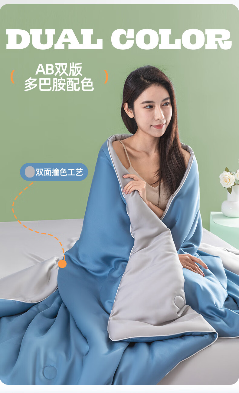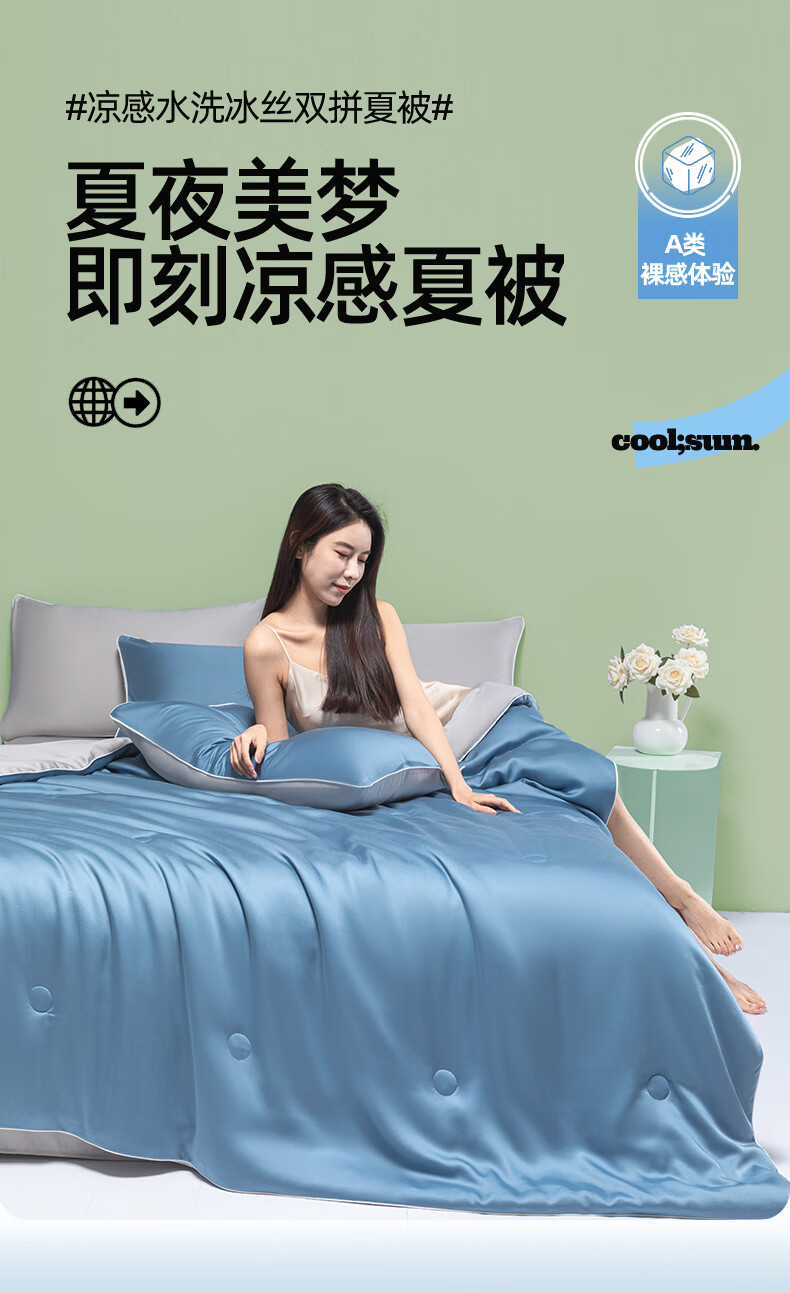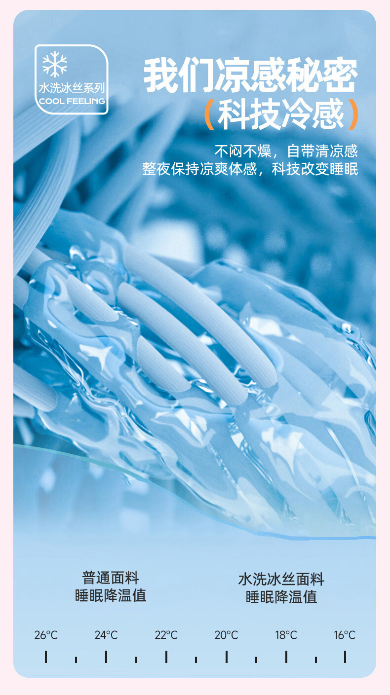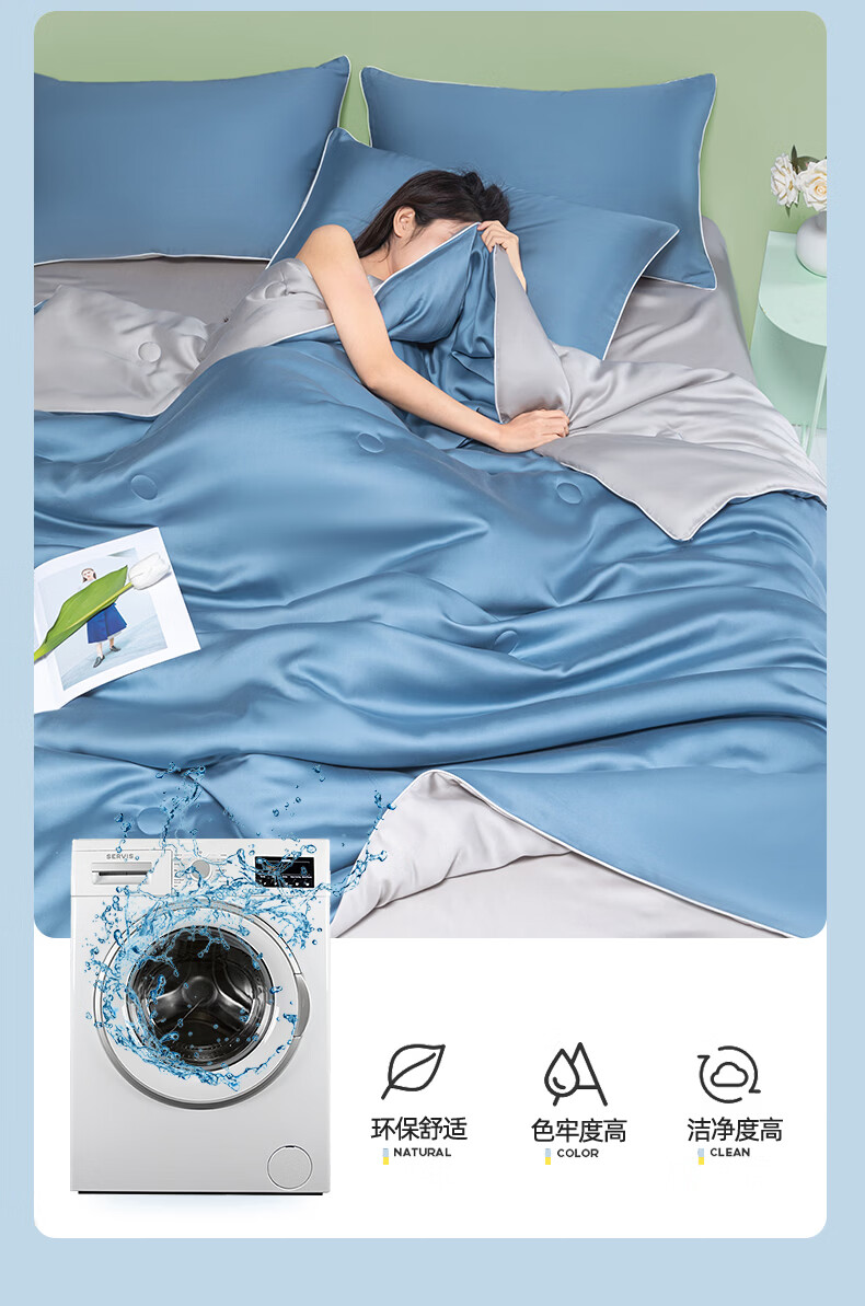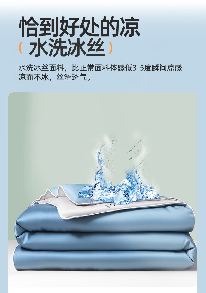 严选水洗冰丝面料,凉而不冰,丝滑透气;整张棉纤维填充,蓬松柔软;新一代活性印染工艺,颜色鲜艳靓丽,可机洗水洗